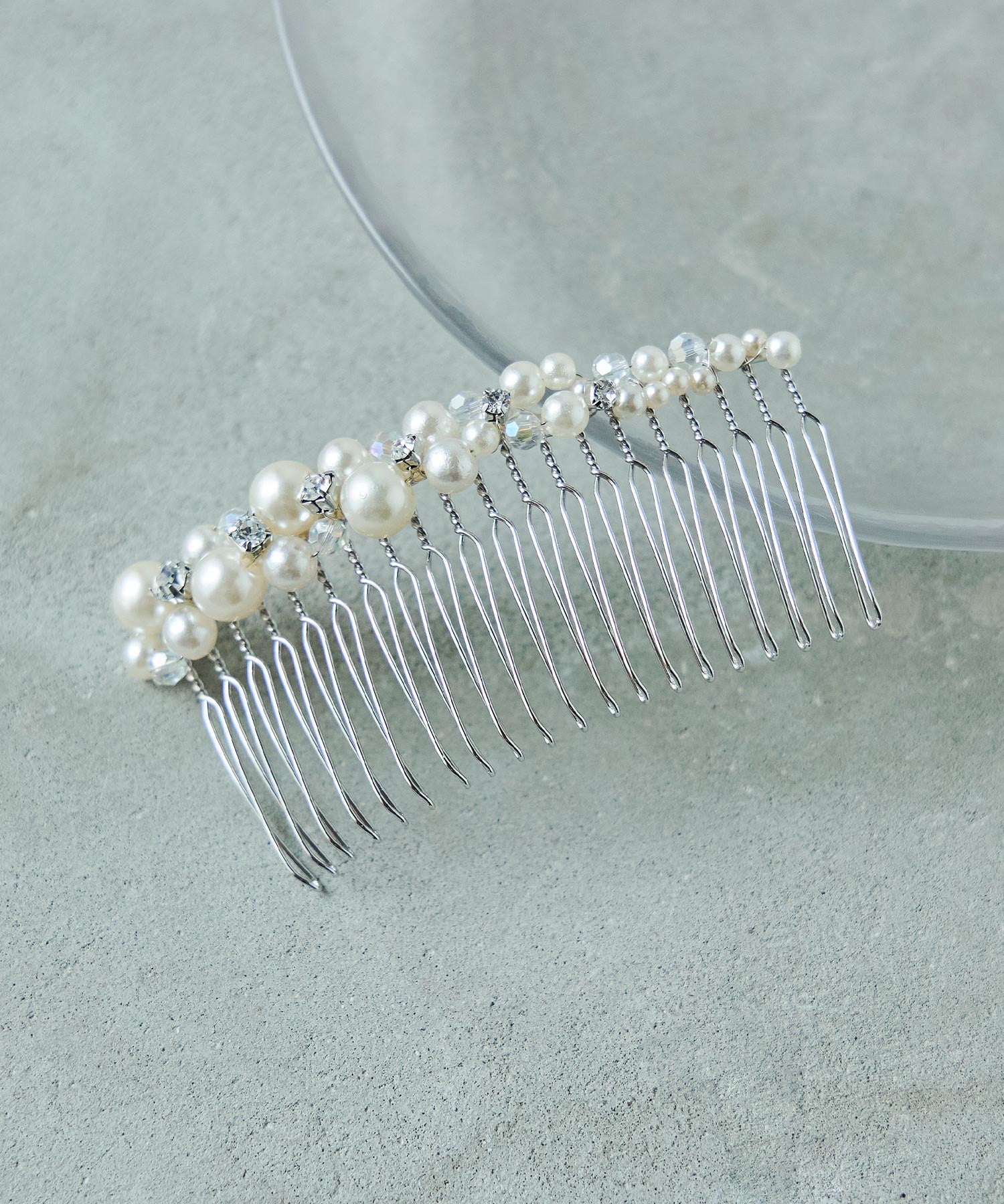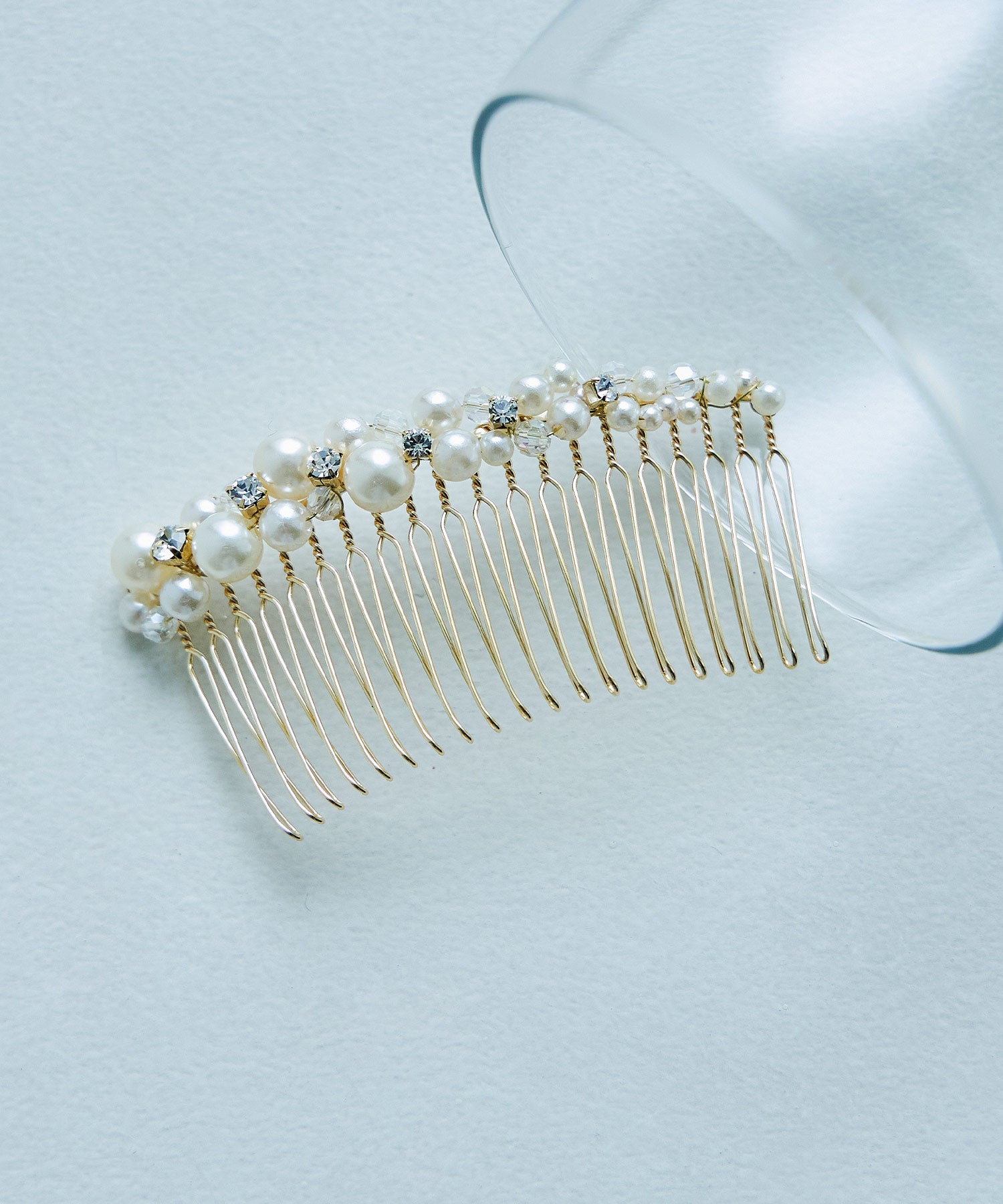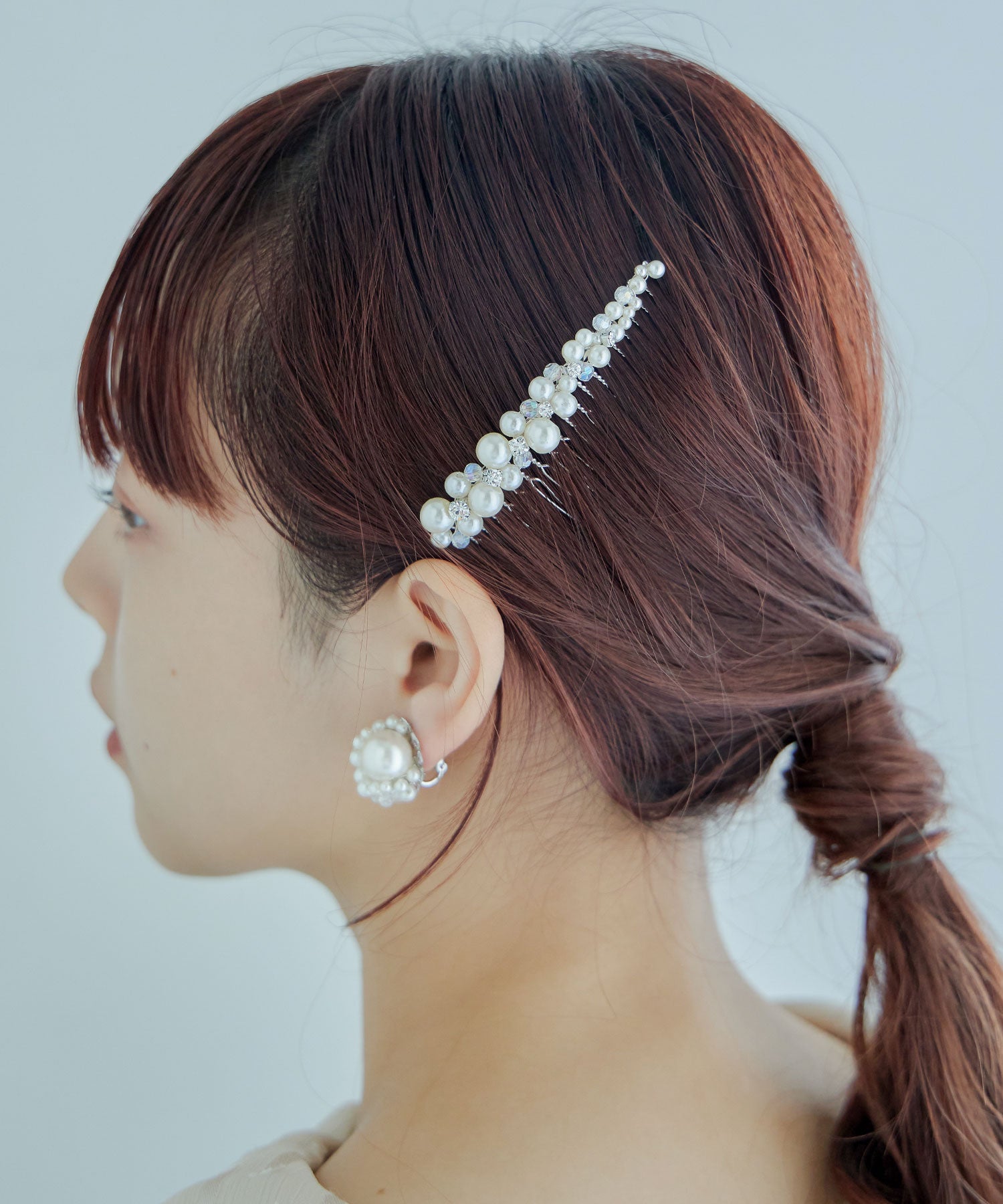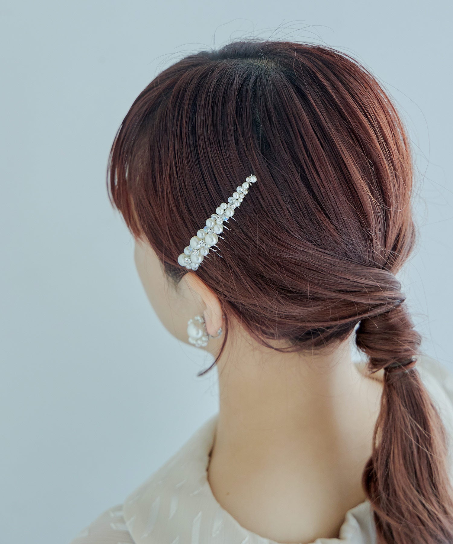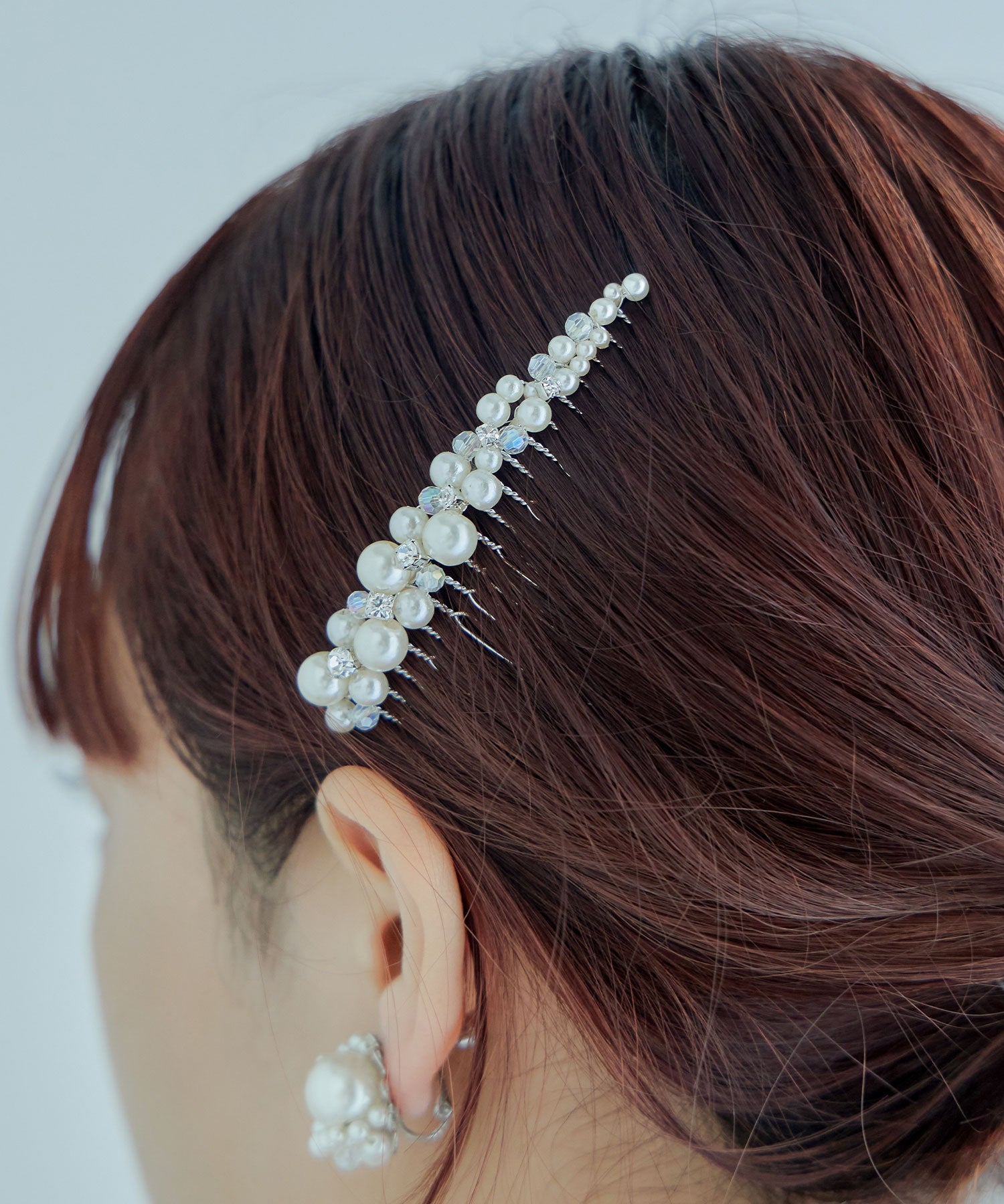 様々な大きさのパールとどの角度から見てもキラキラ輝くビジューを飾り付け。