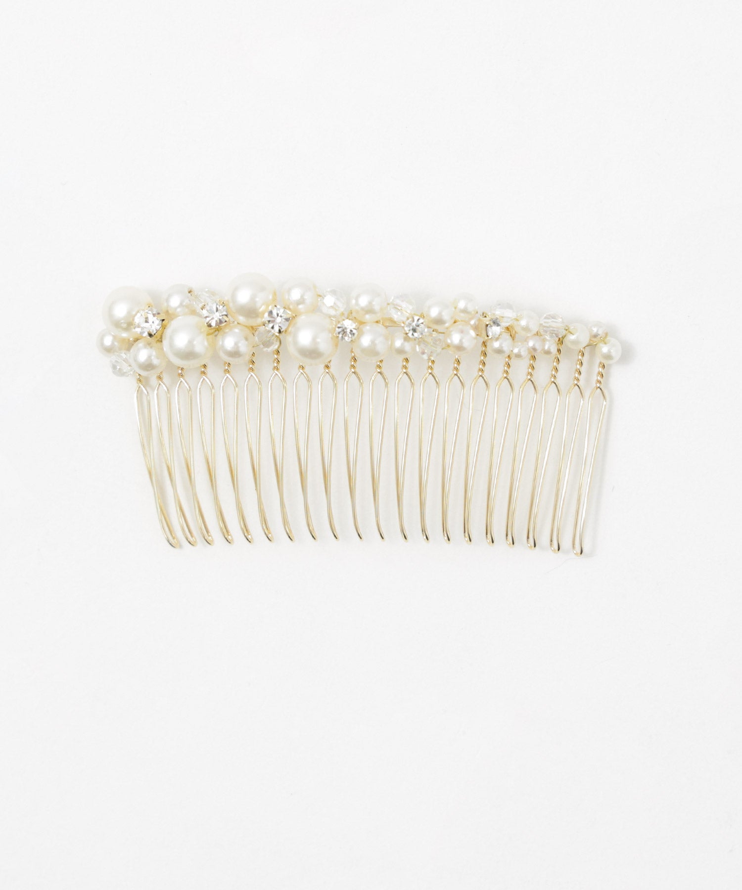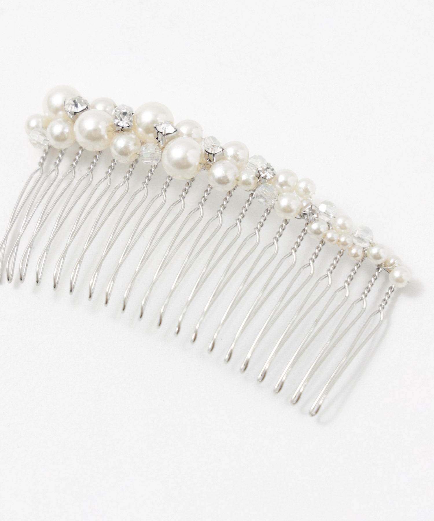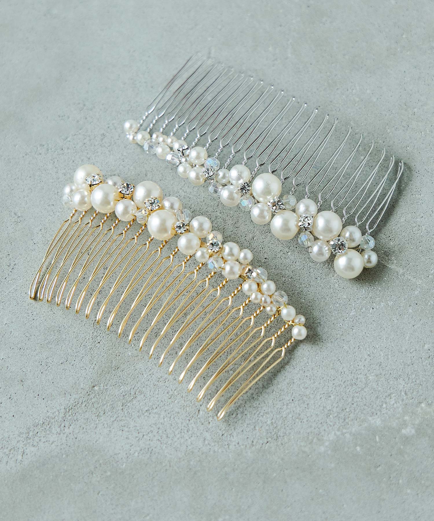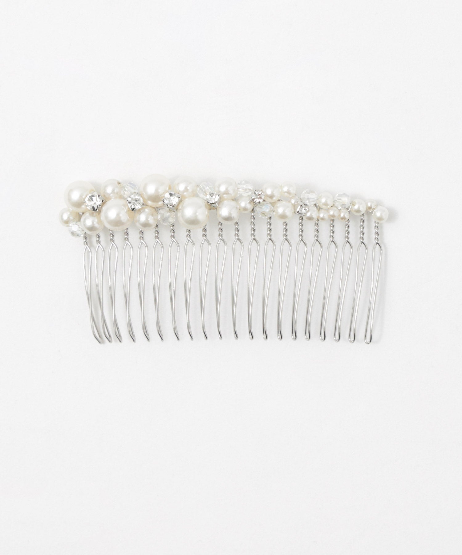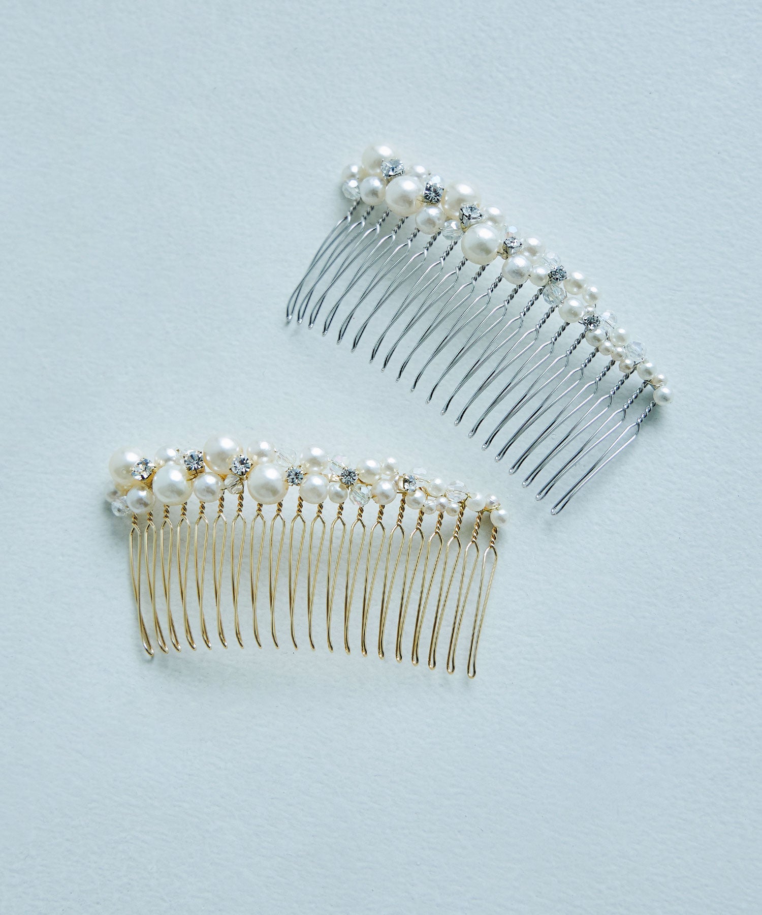 様々な大きさのパールとどの角度から見てもキラキラ輝くビジューを飾り付け。