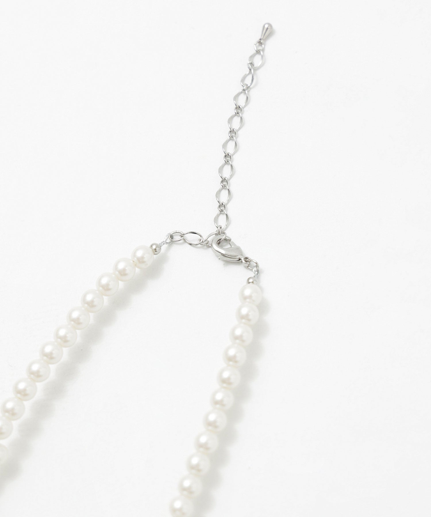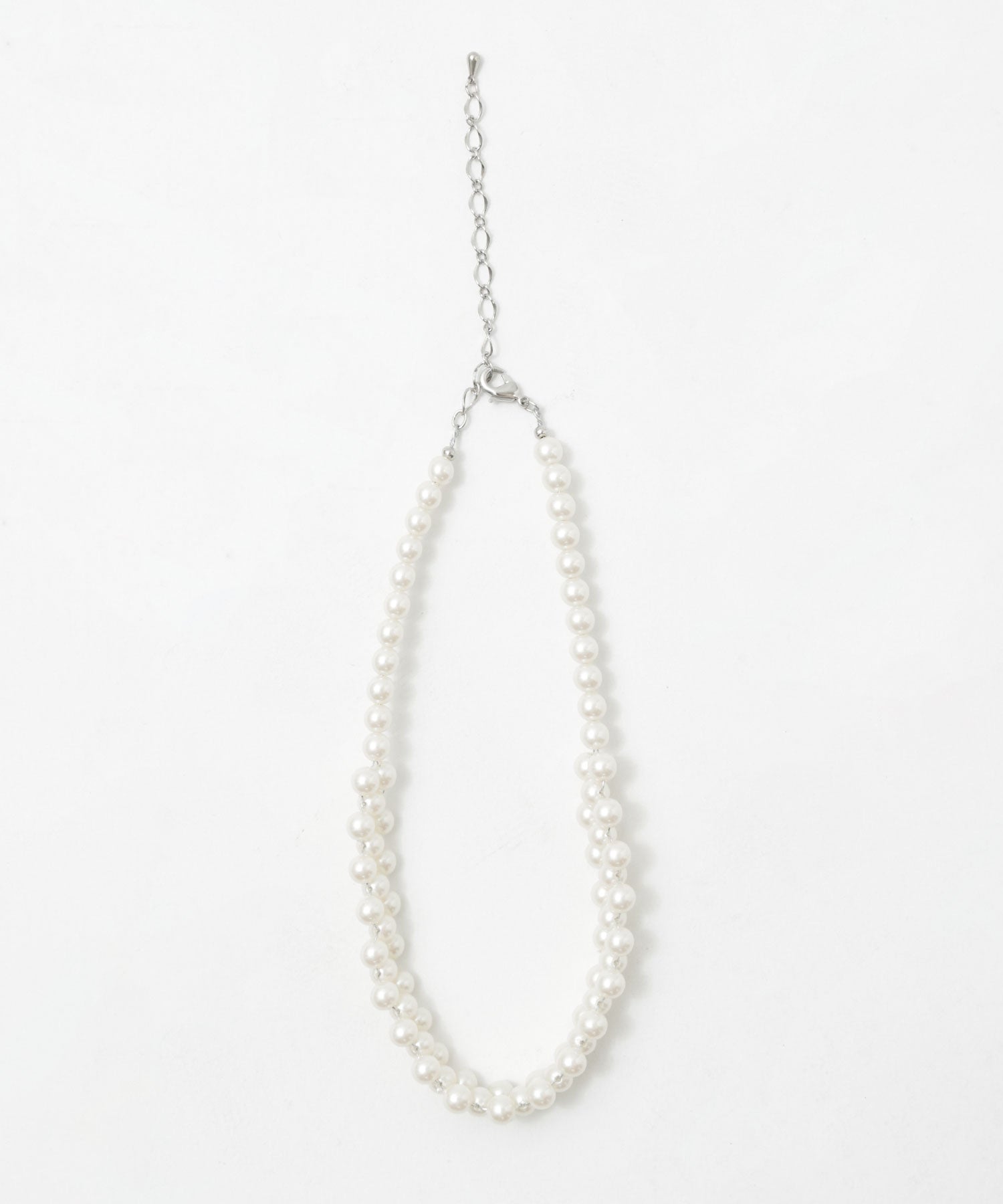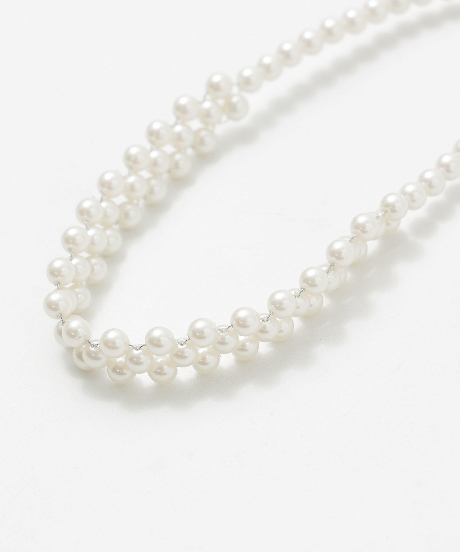 首元に綺麗に沿うパールの編み込みチョーカーネックレス。