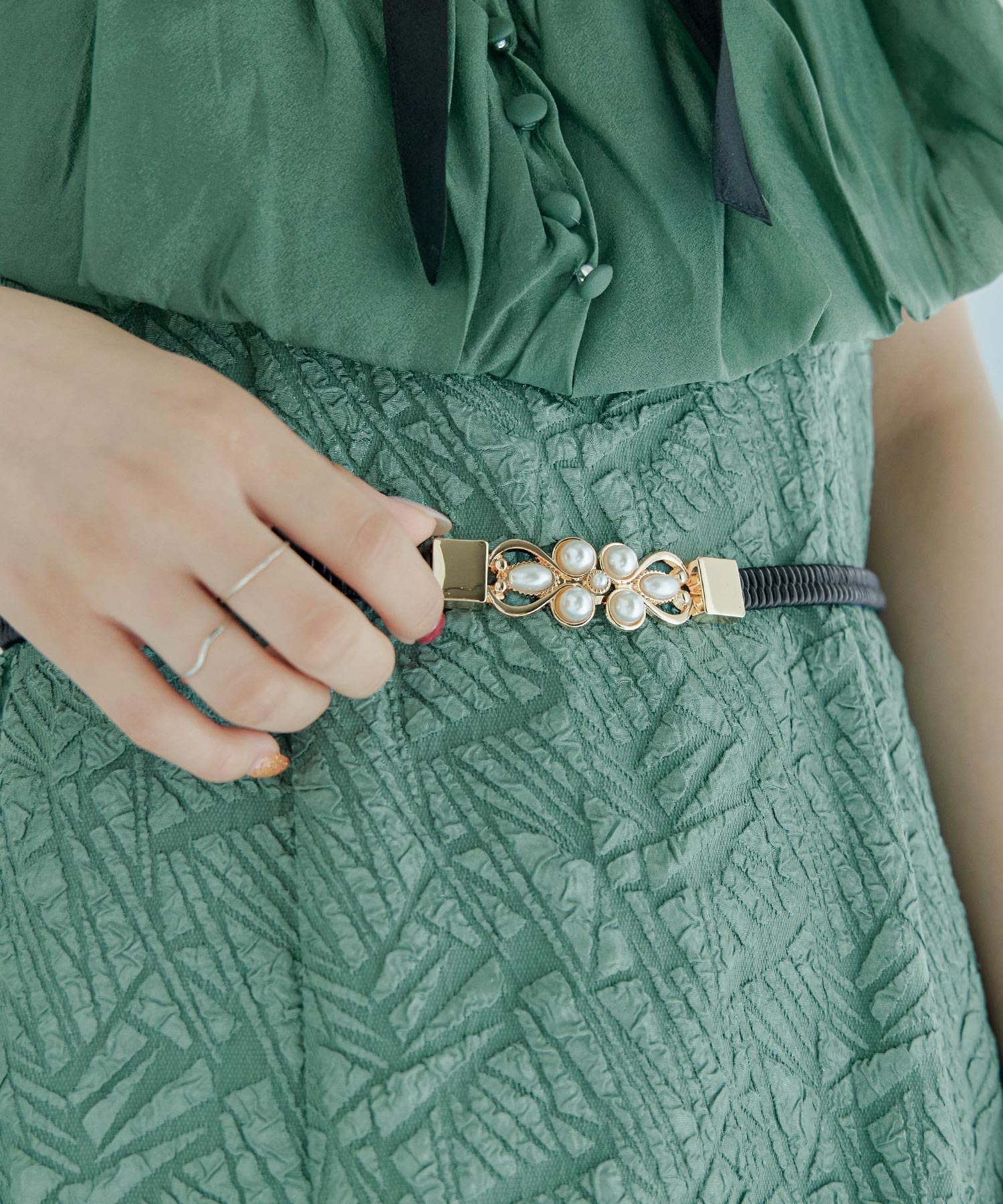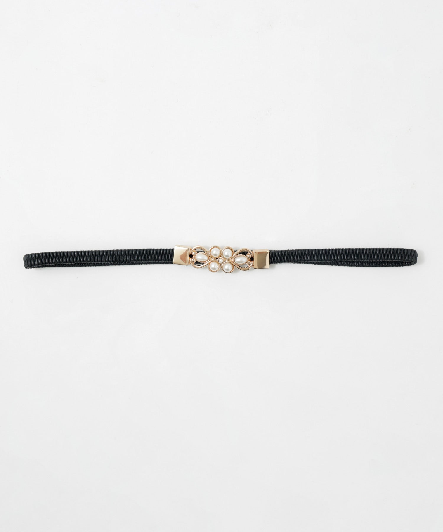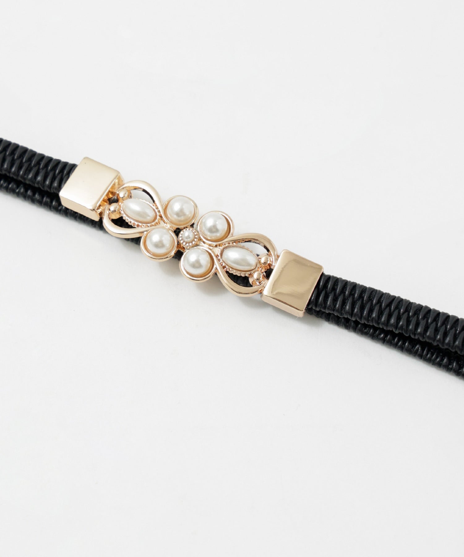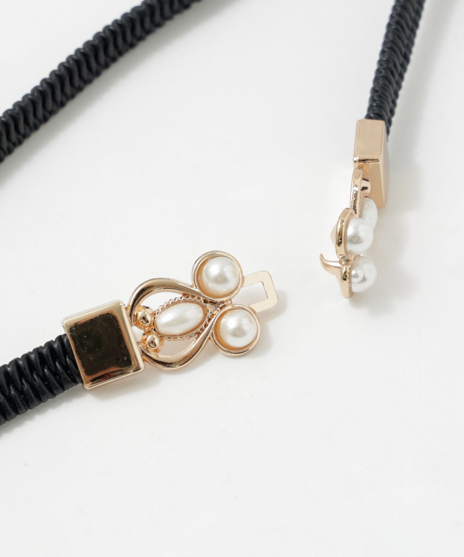 Rname パール ベルト ゴムベルト ドレス レディース ゴム ワンポイント 細ベルト ウエストマーク パーティードレス 結婚式 二次会 披露宴 謝恩会 卒業式 入学式 同窓会 セレモニー オケージョン お呼ばれ パーティー ブラック ベージュ ゴールド