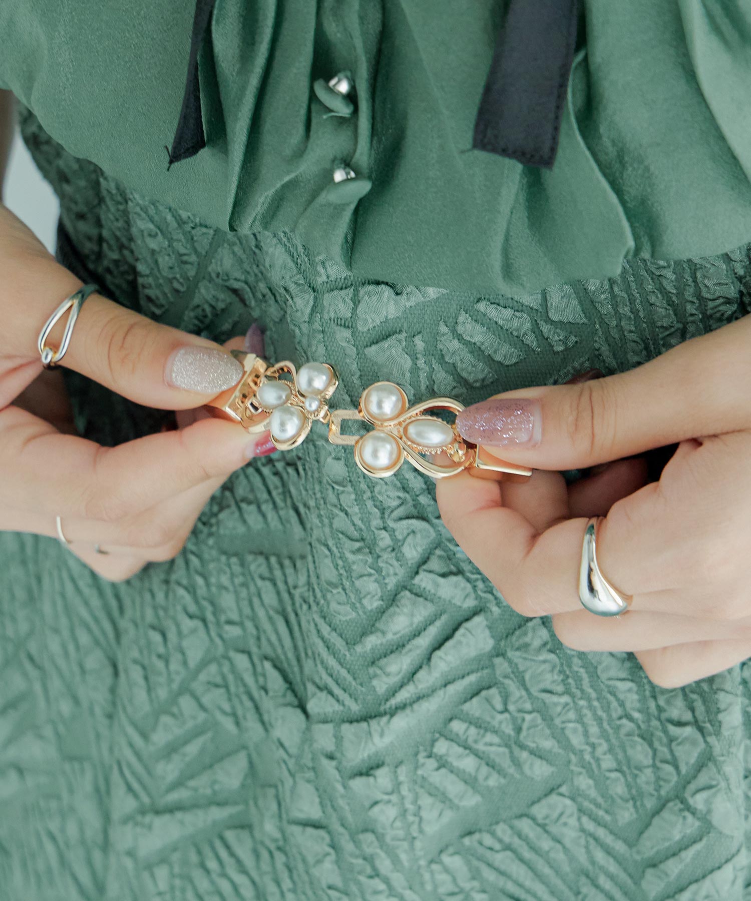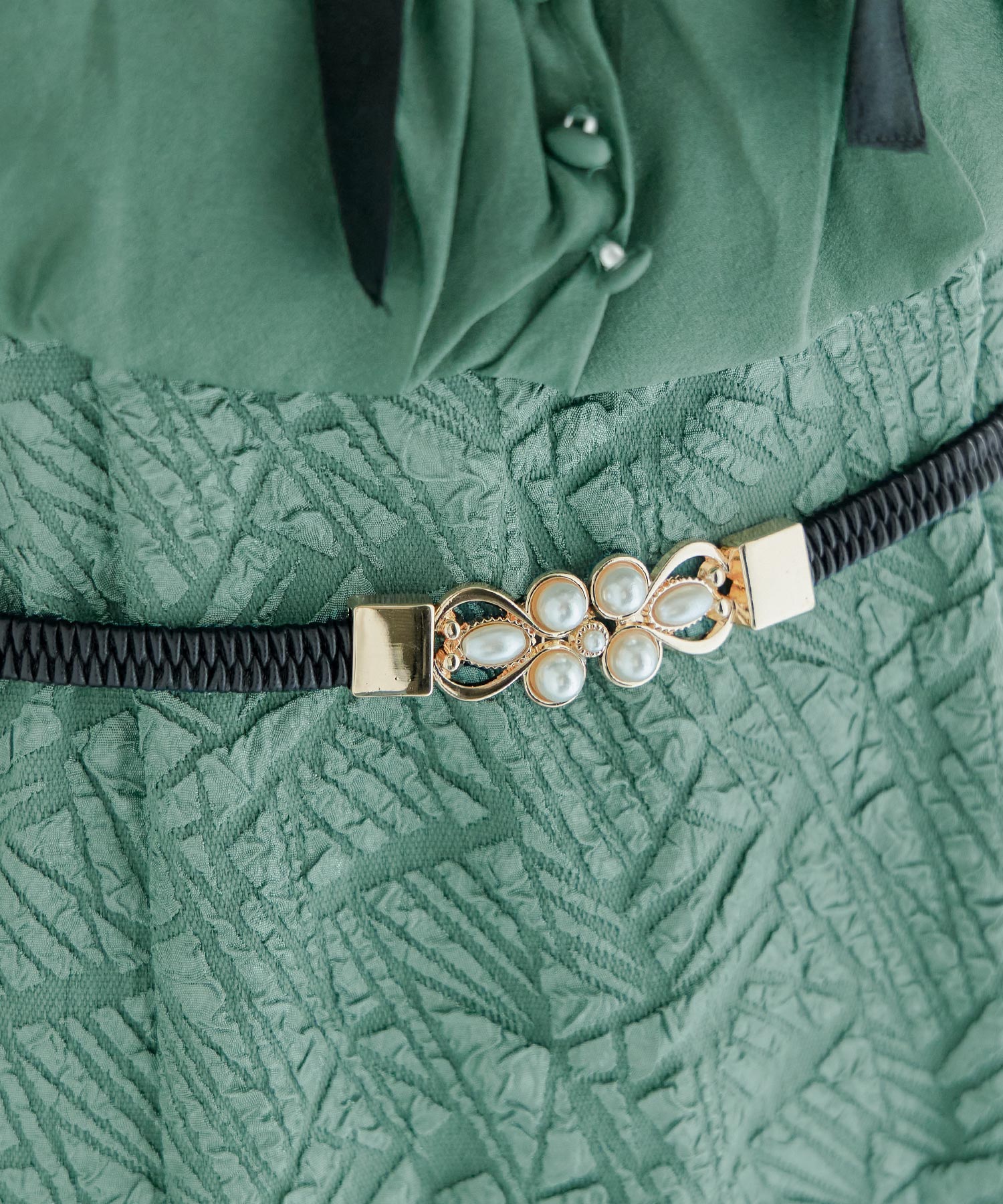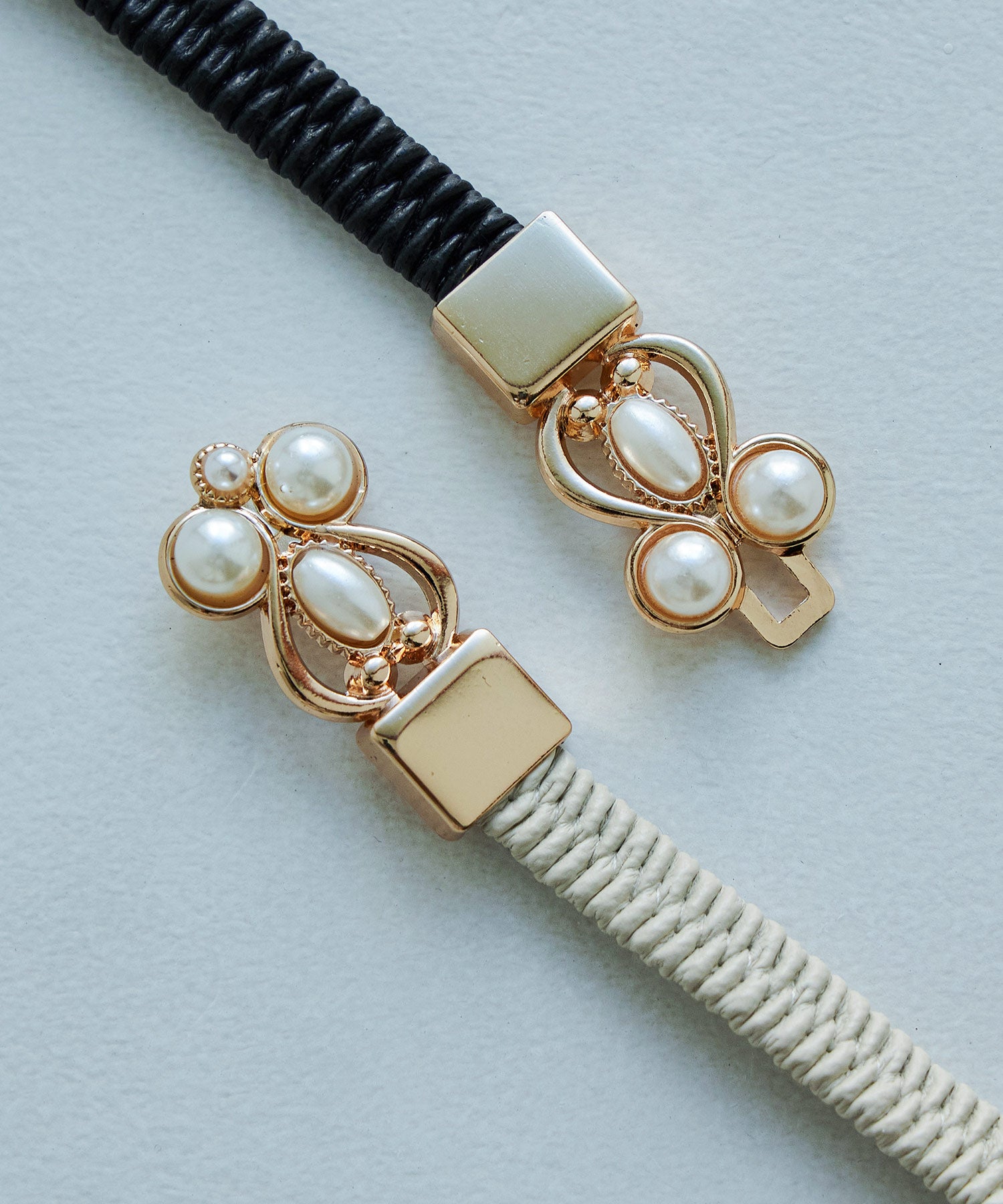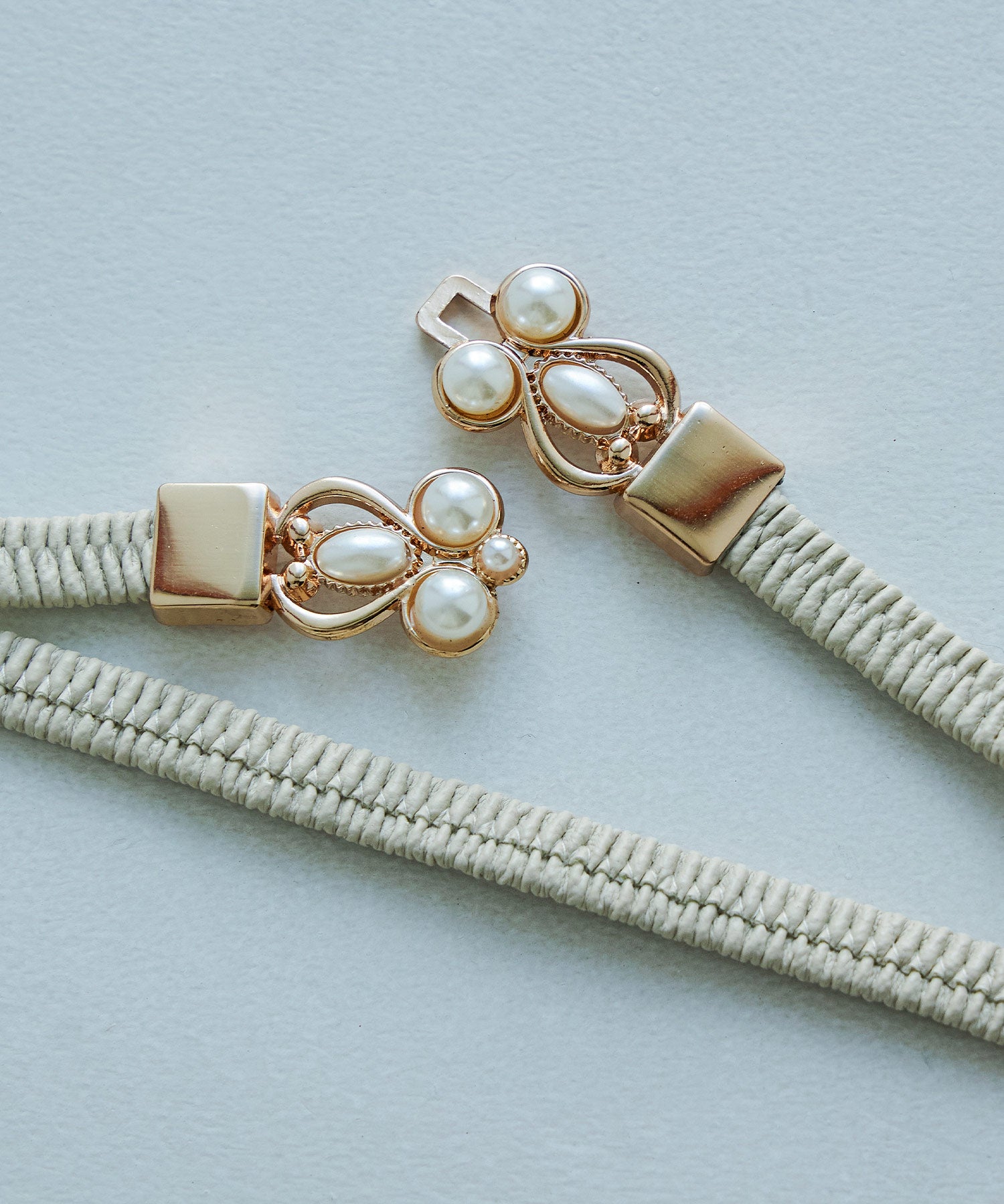 Rname パール ベルト ゴムベルト ドレス レディース ゴム ワンポイント 細ベルト ウエストマーク パーティードレス 結婚式 二次会 披露宴 謝恩会 卒業式 入学式 同窓会 セレモニー オケージョン お呼ばれ パーティー ブラック ベージュ ゴールド