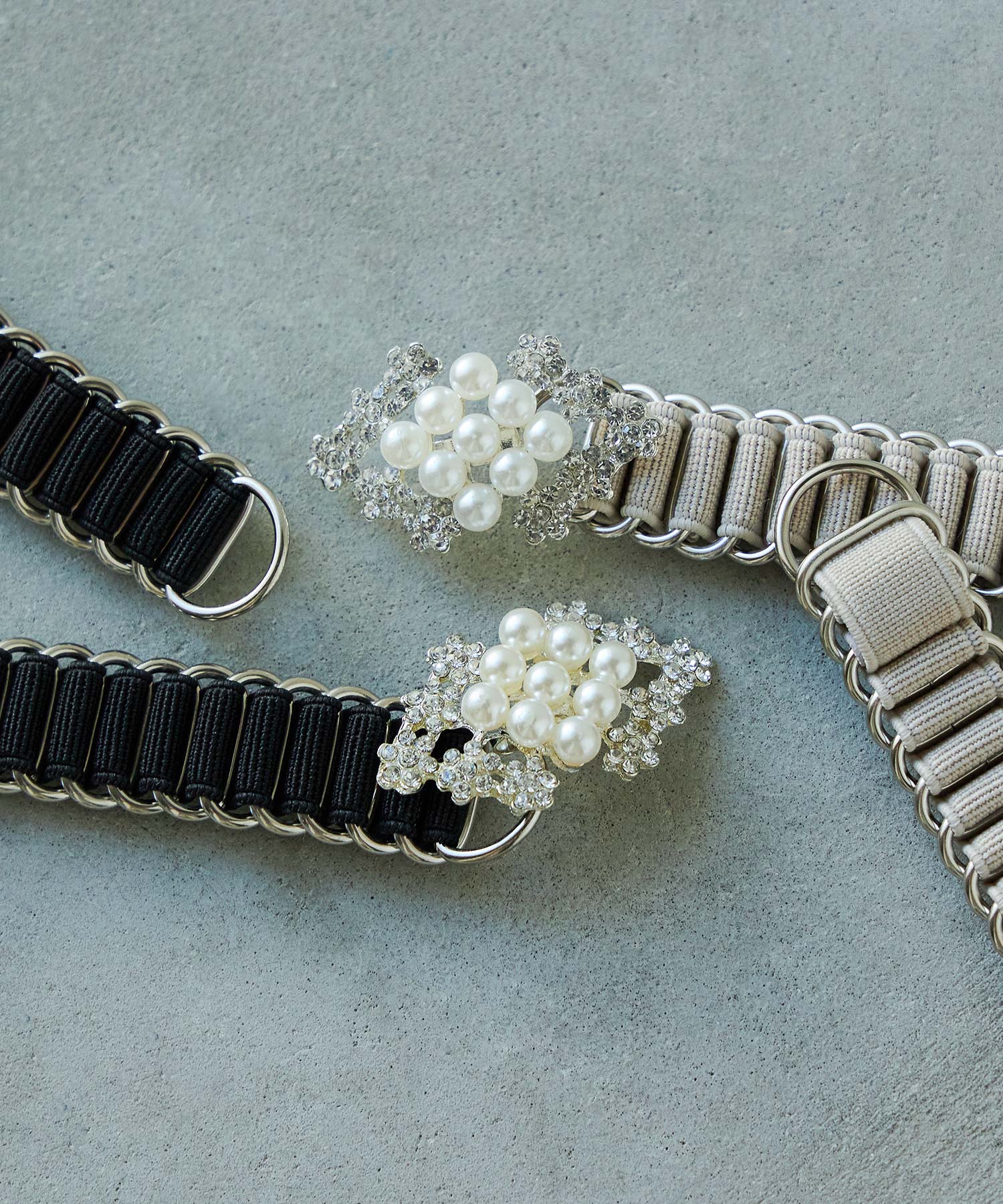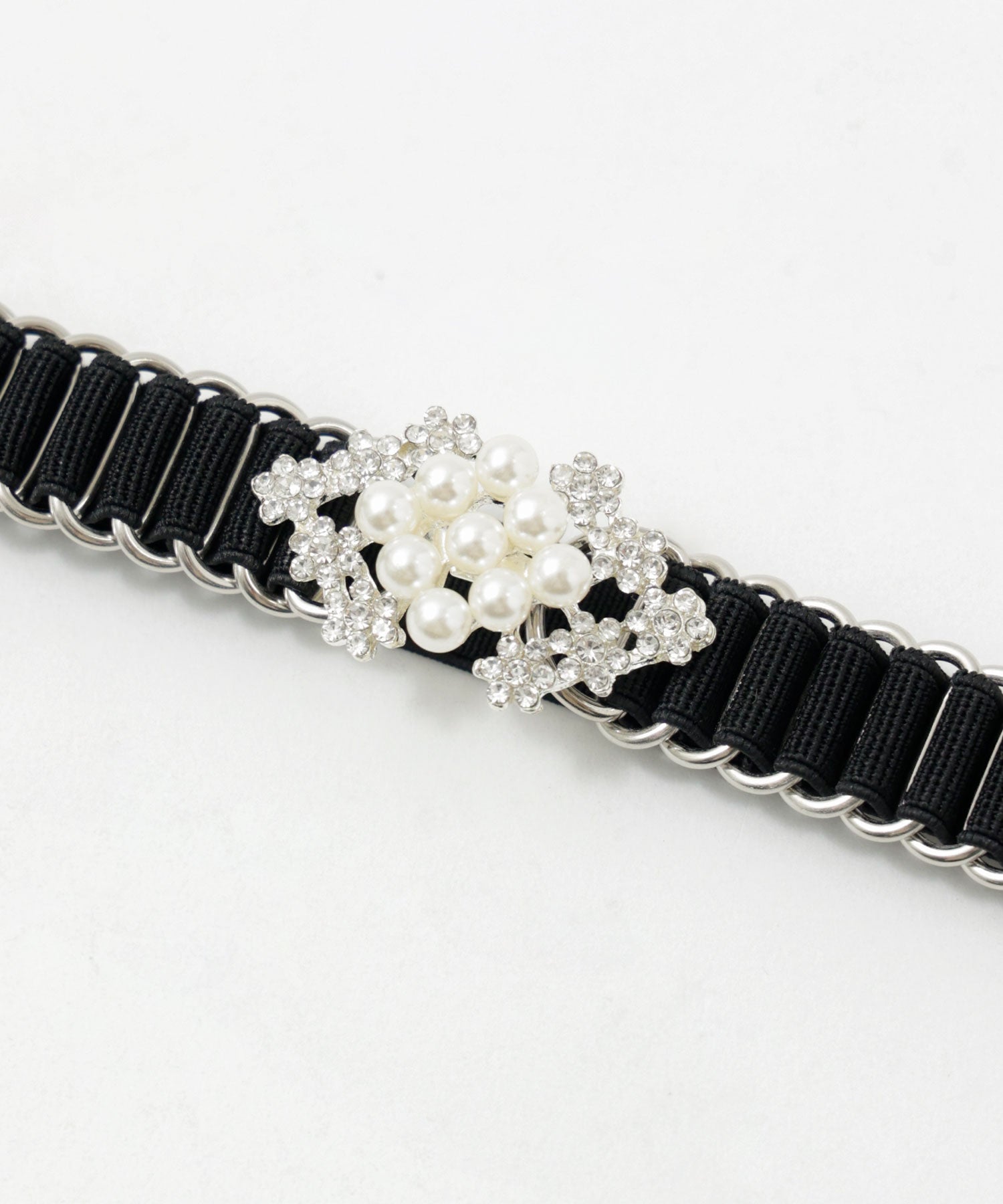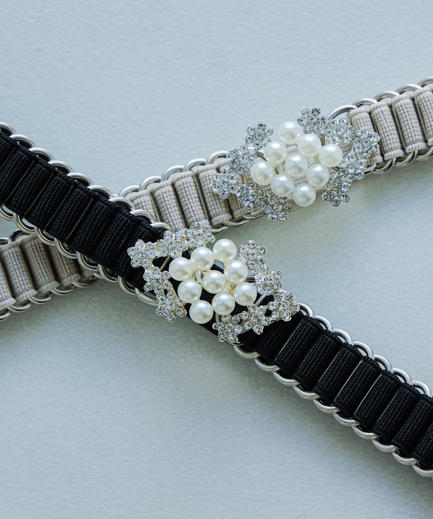 ひし形にパールとビジューを並べたエレガントなパーティーベルト。