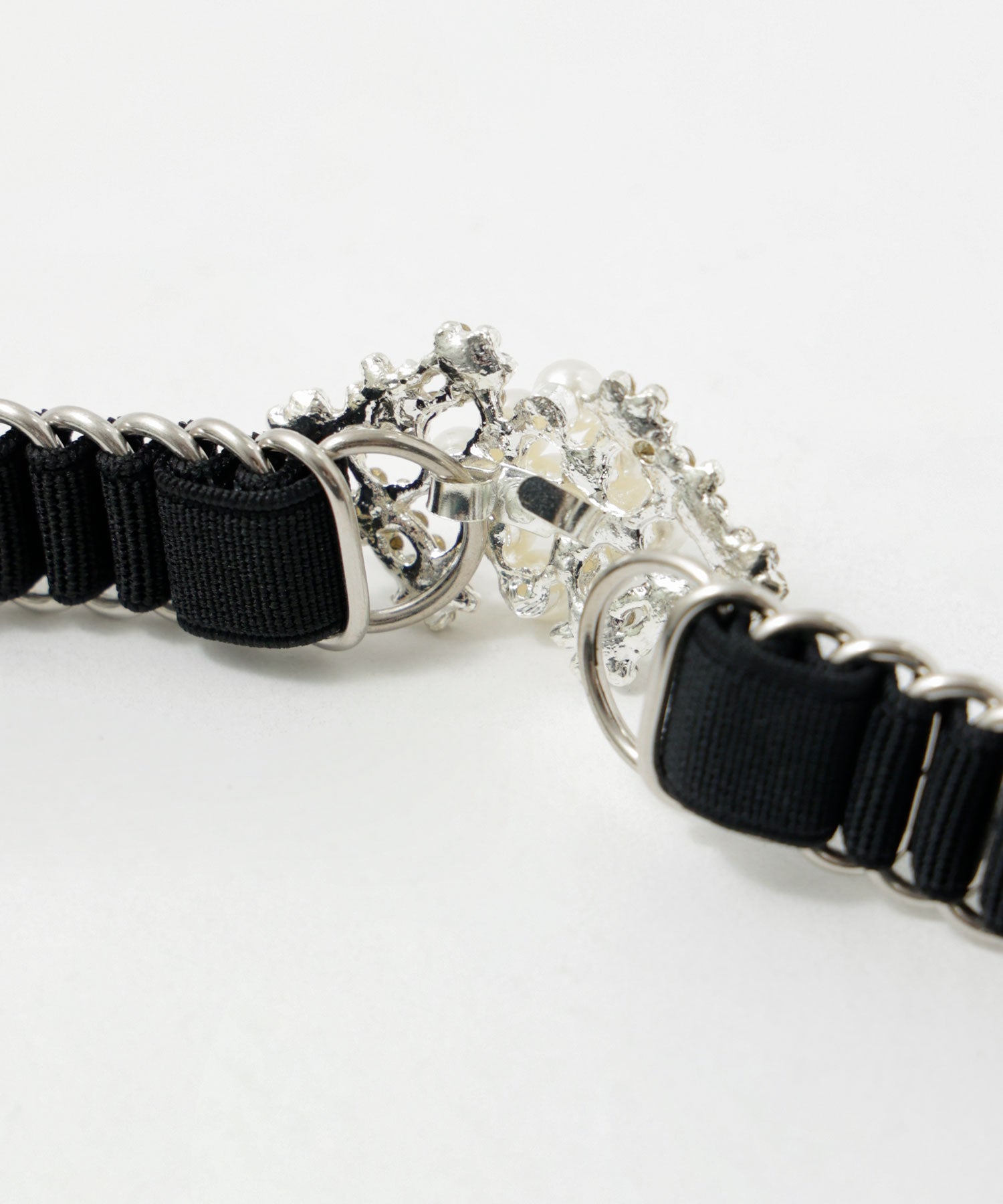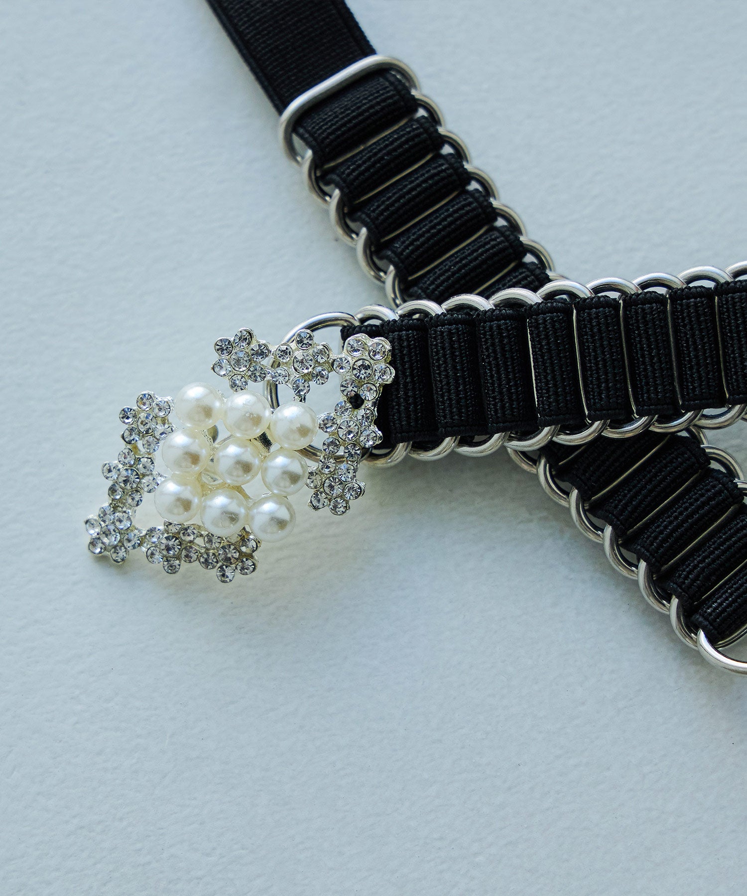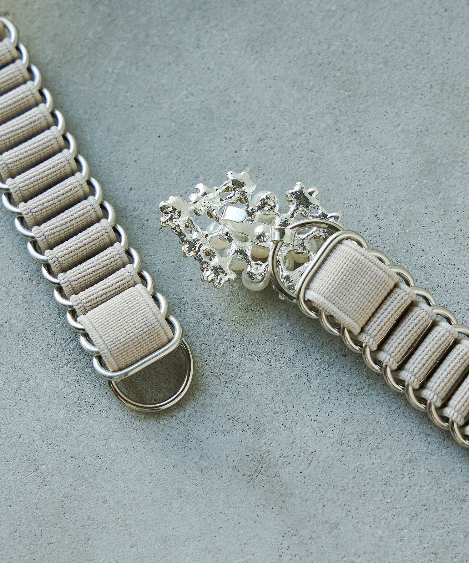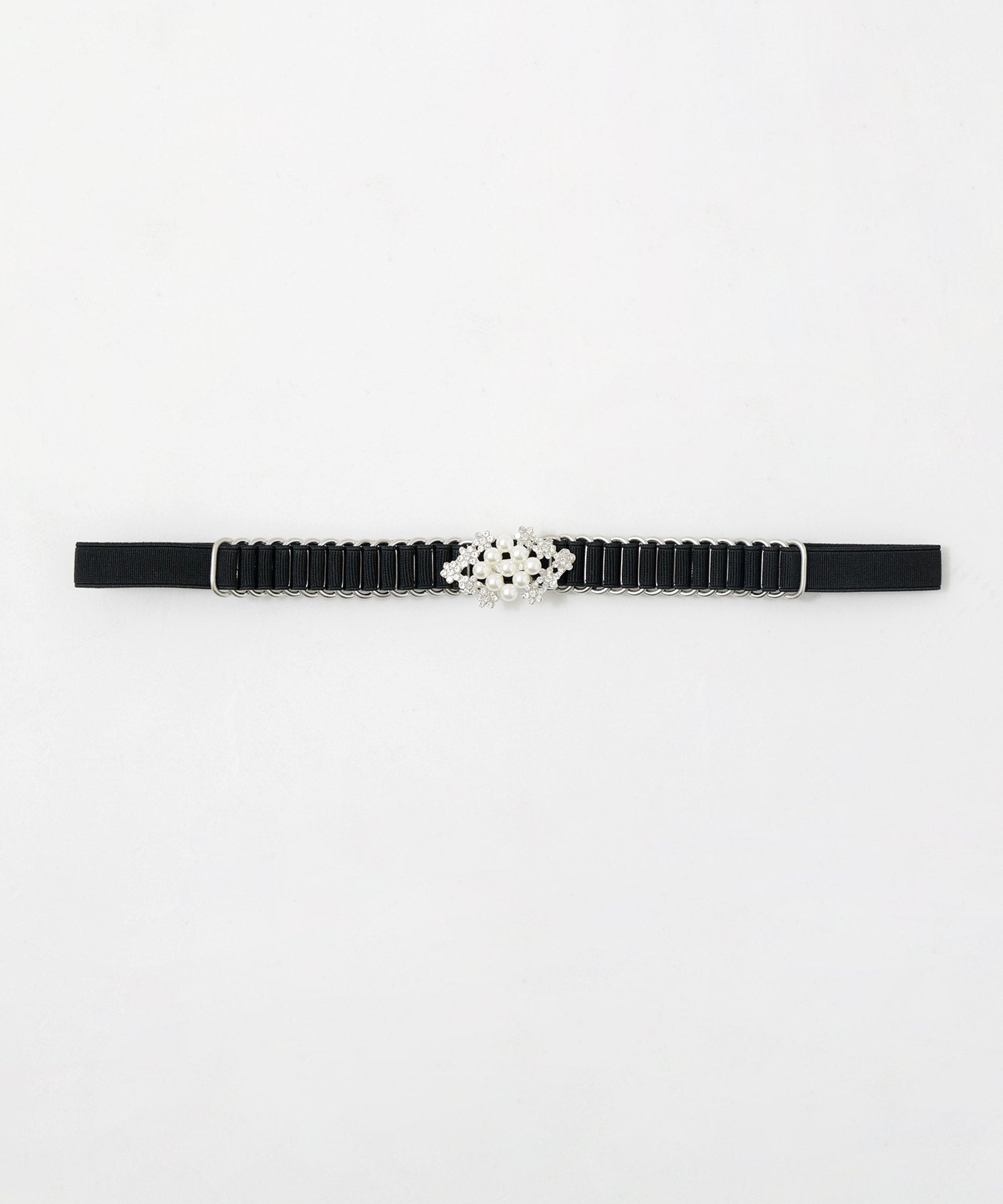 ひし形にパールとビジューを並べたエレガントなパーティーベルト。