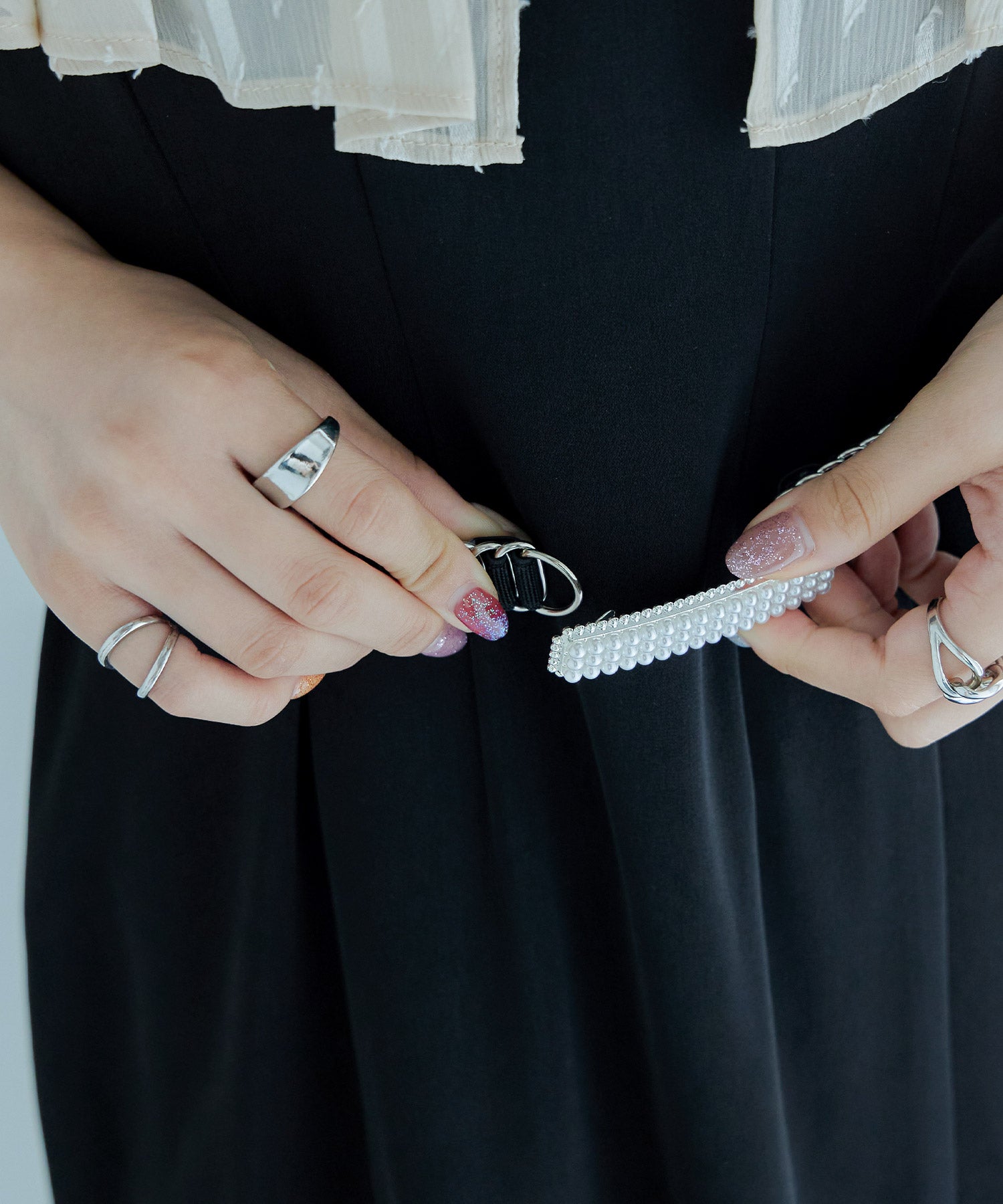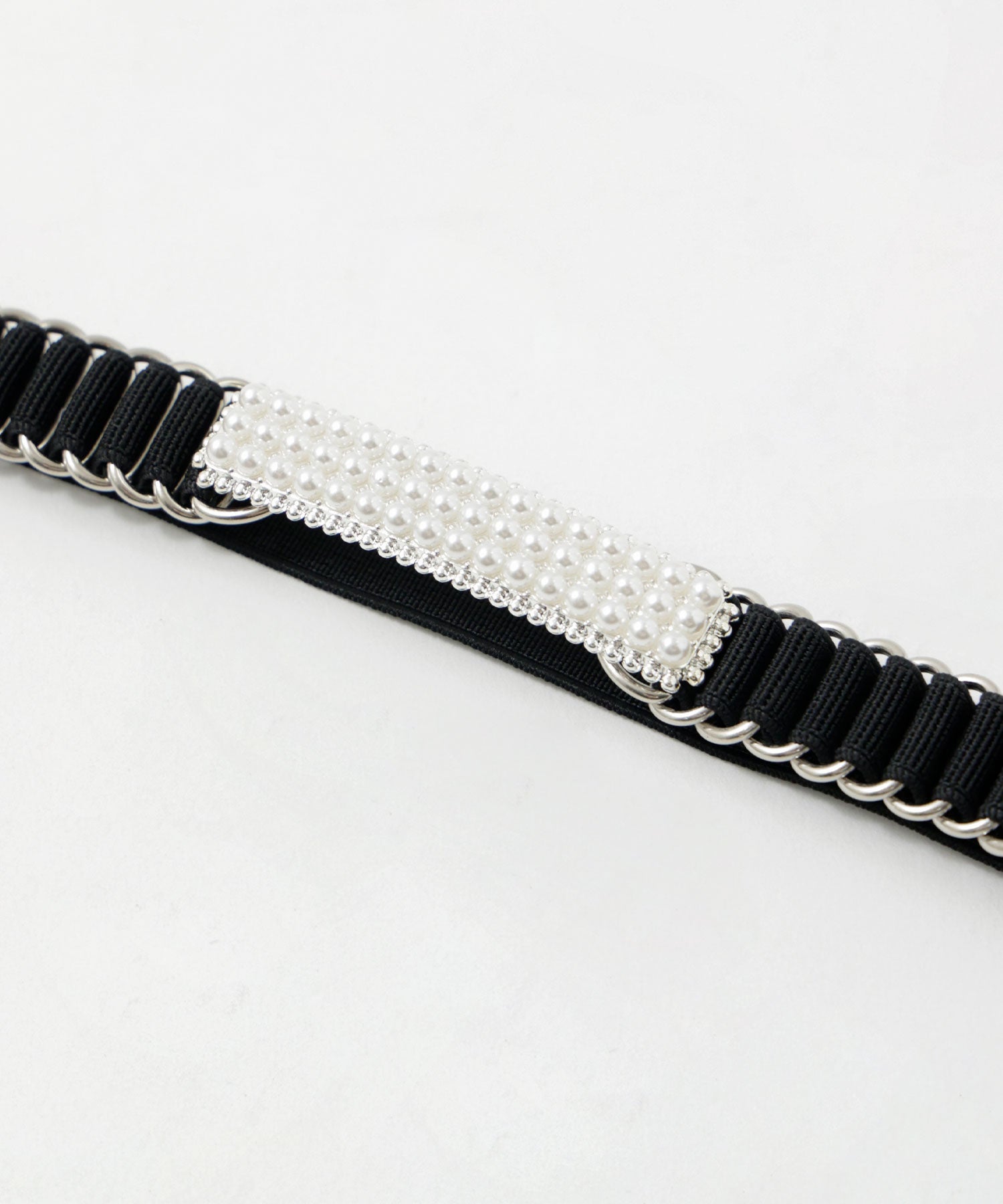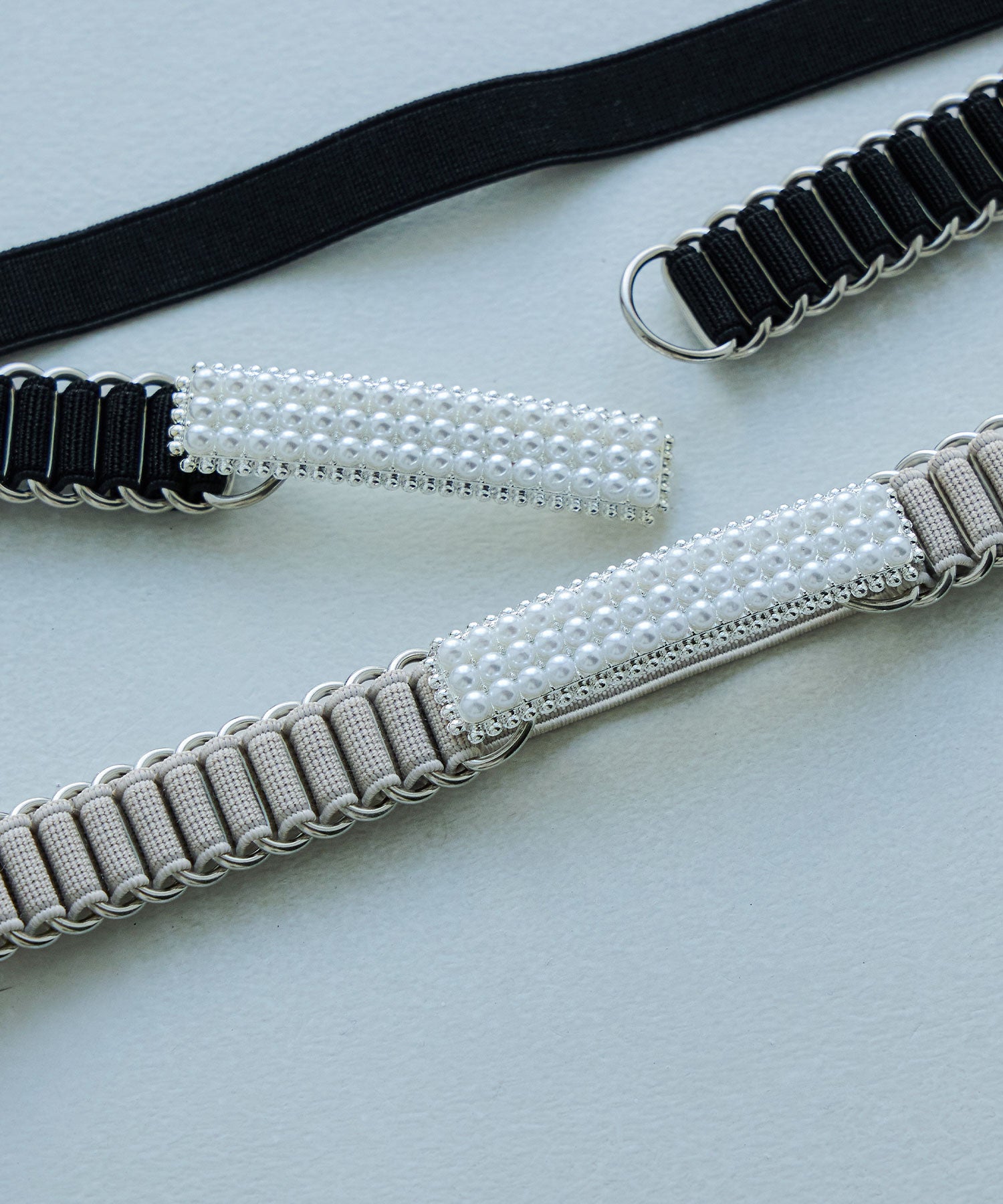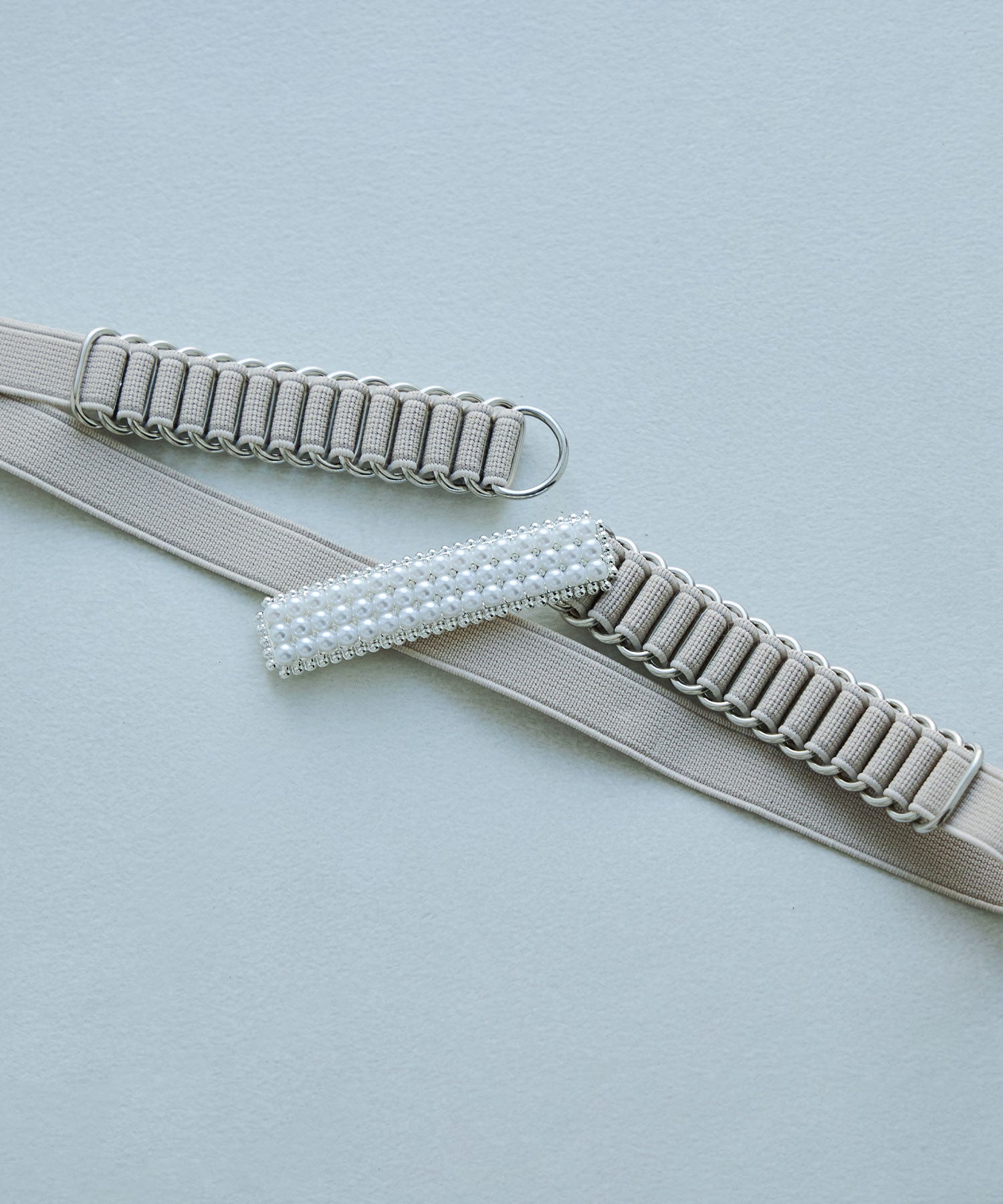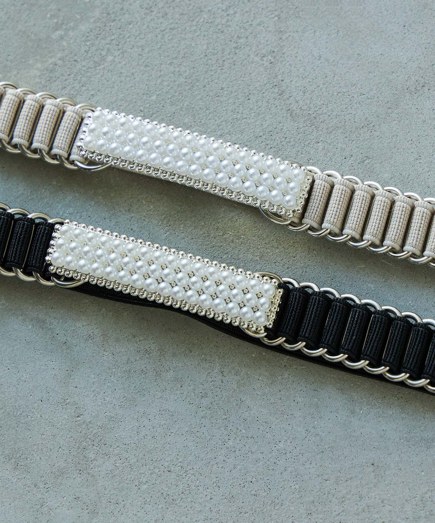 パールを印象的に配置したスクエアデザインのパーティーベルト。