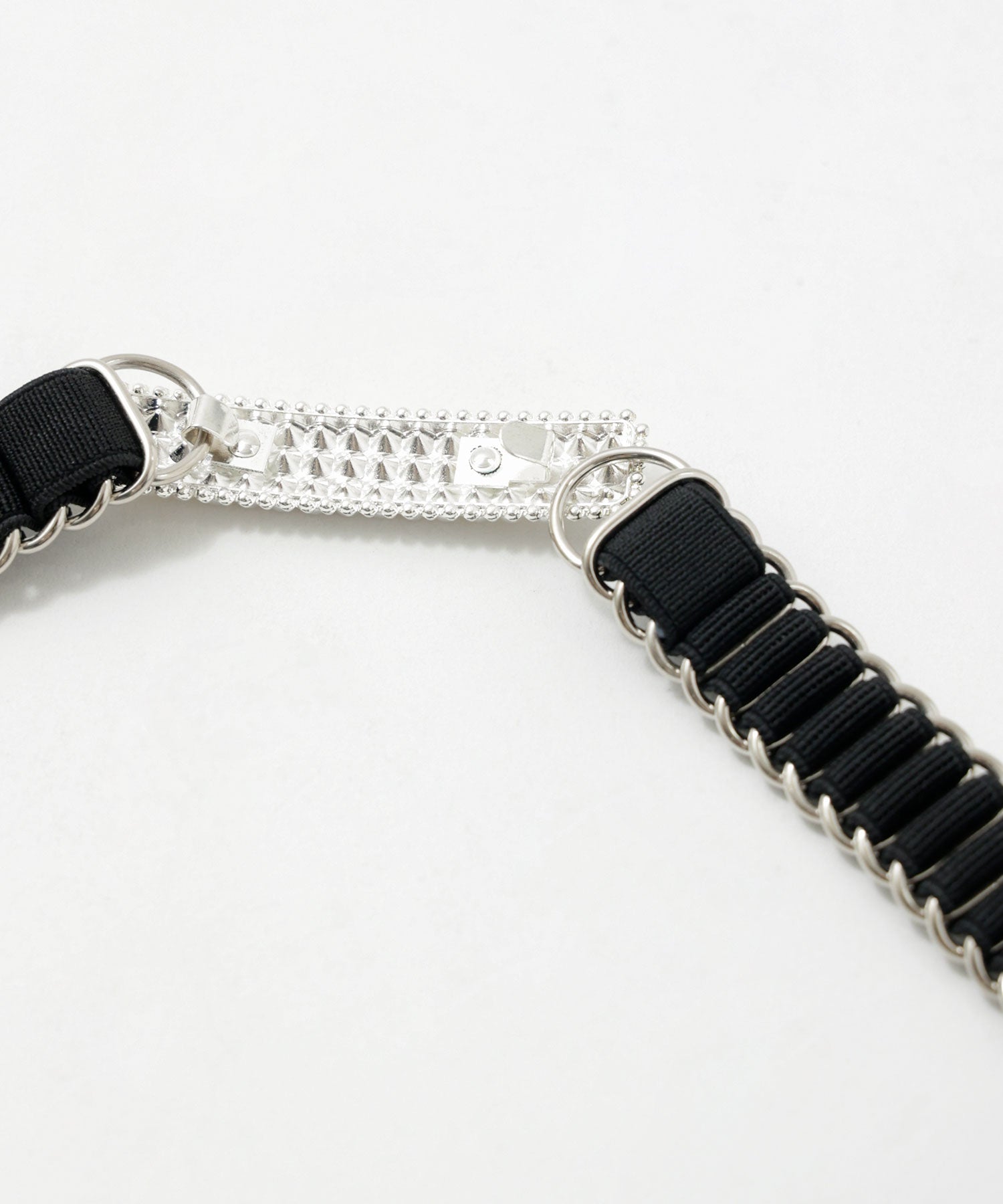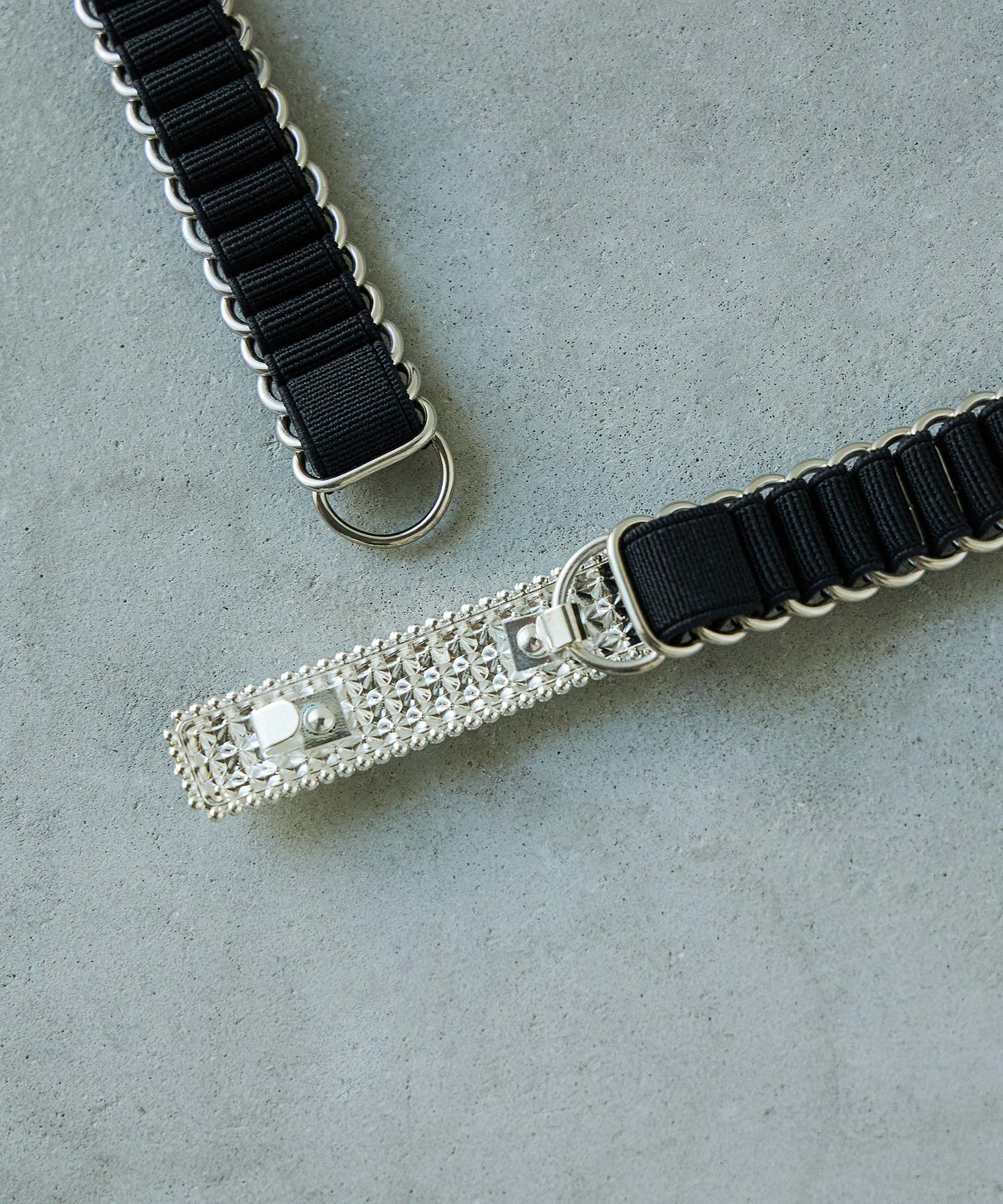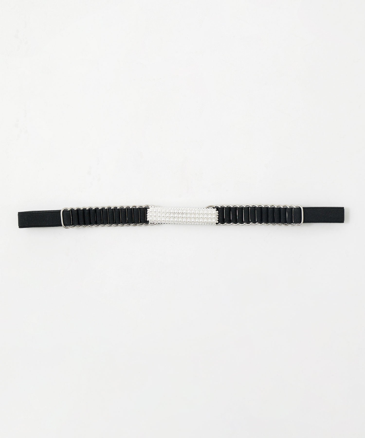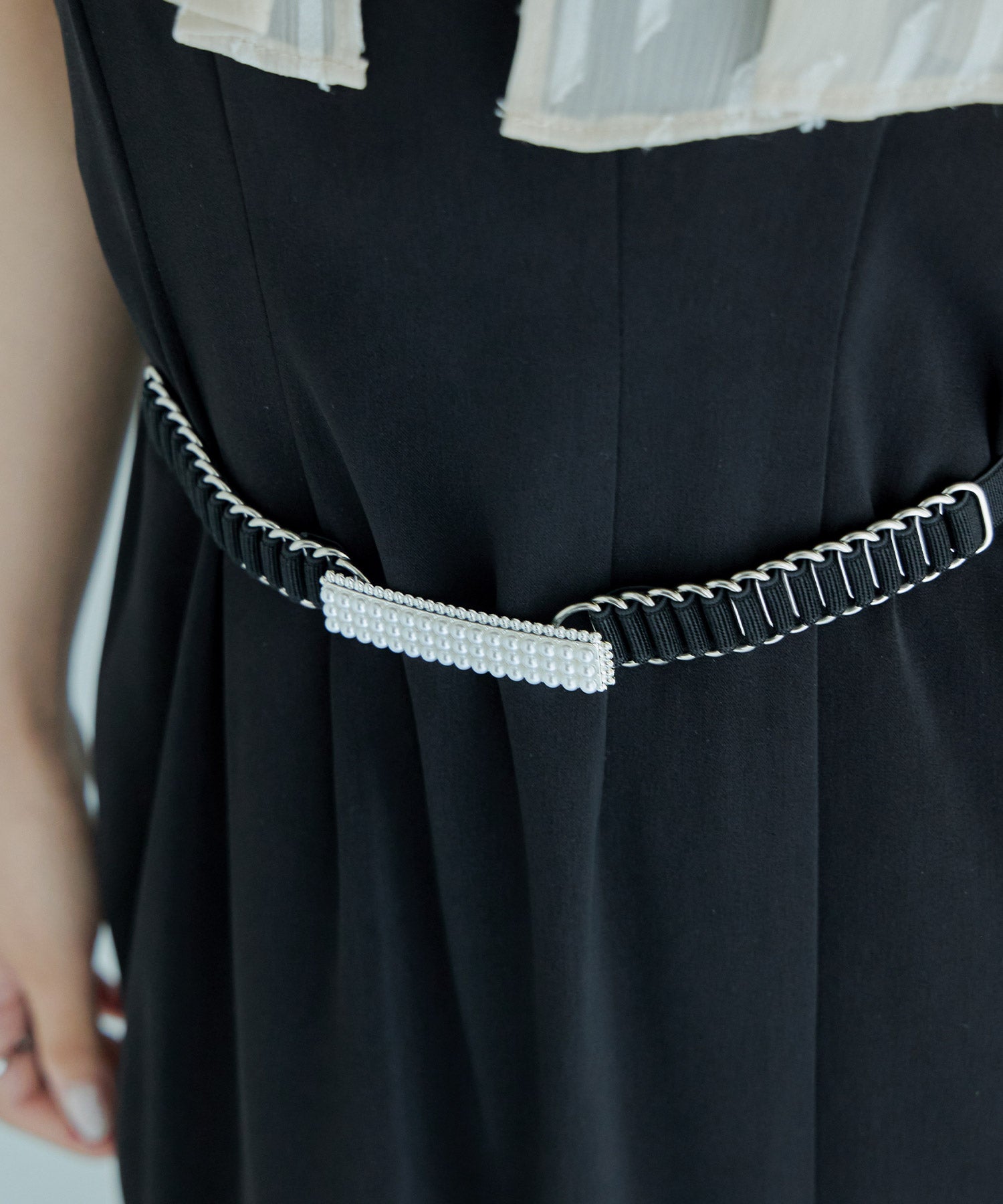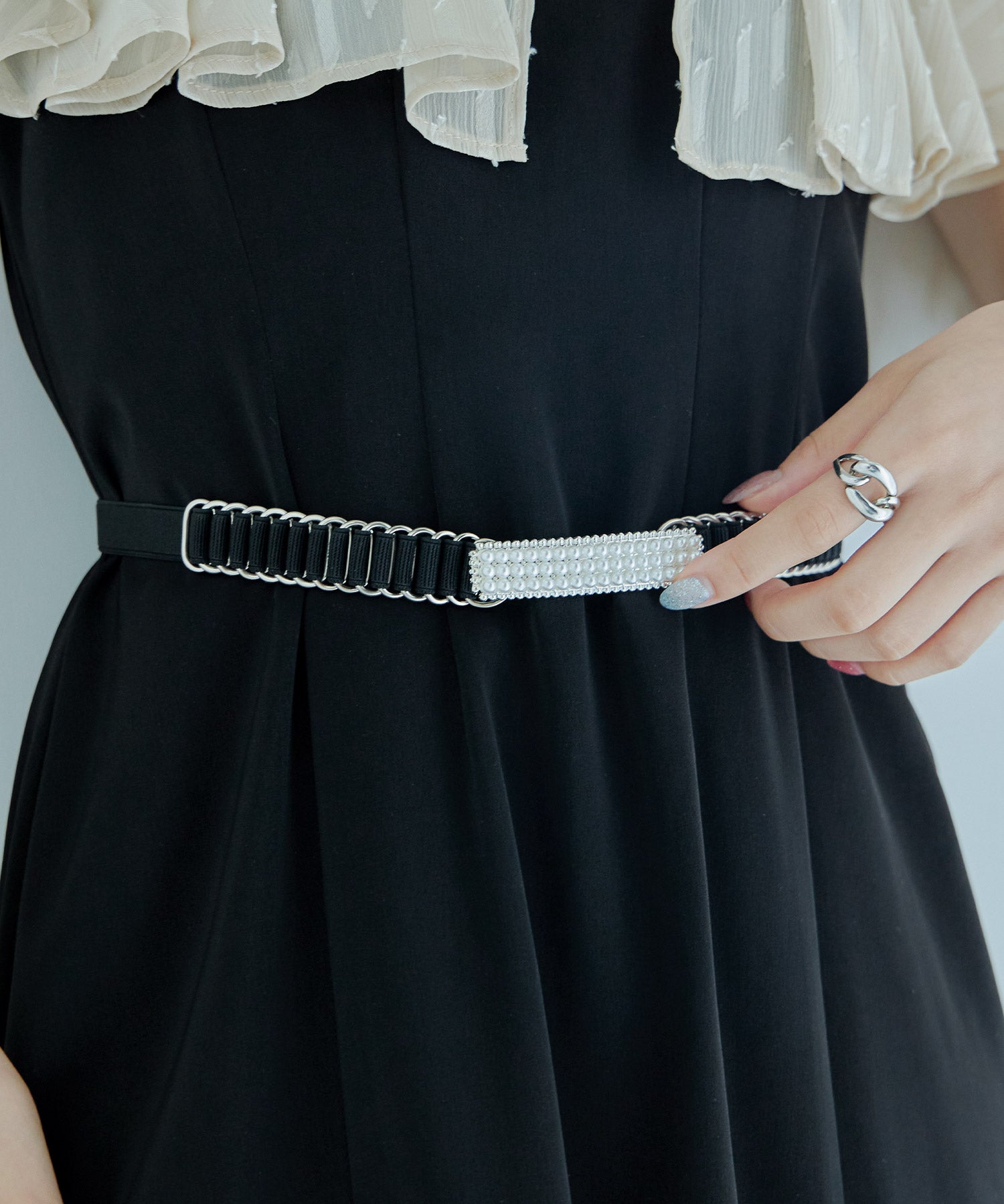 パールを印象的に配置したスクエアデザインのパーティーベルト。