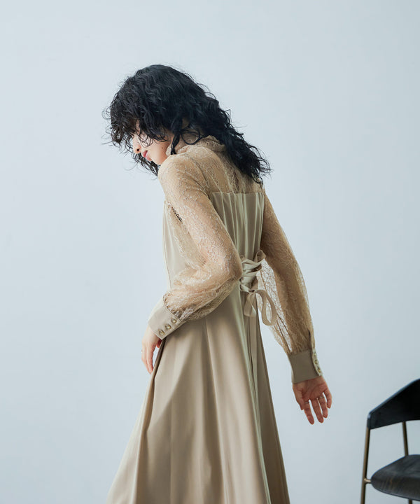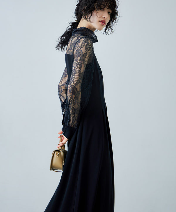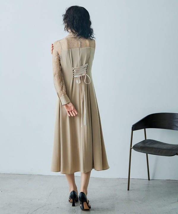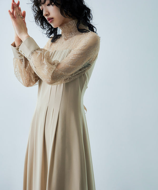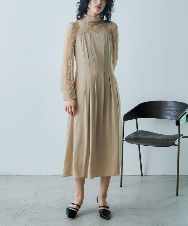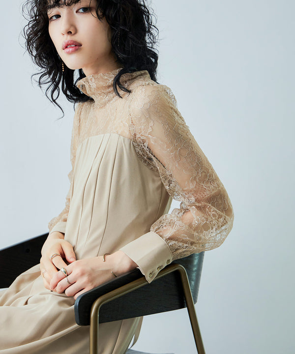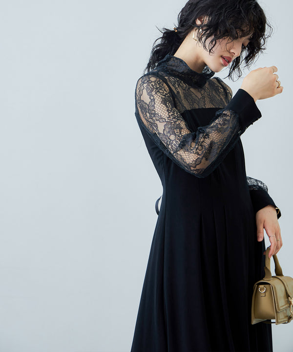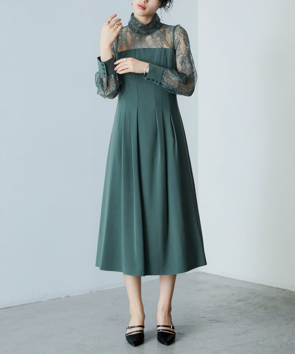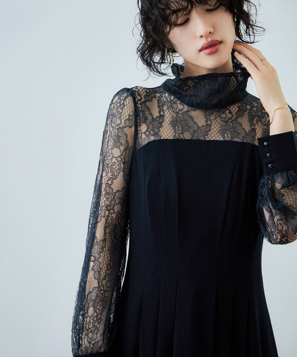 Zname ハイネック切替レースドレス