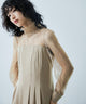 お腹周りにはタックを入れたことでシルエットを引き締めます。