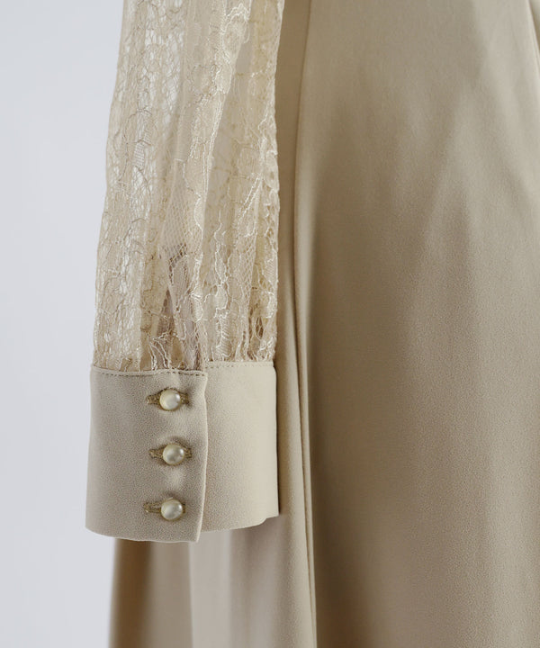 繊細な花柄レースと無地の生地を切り替えた上品なドレス。