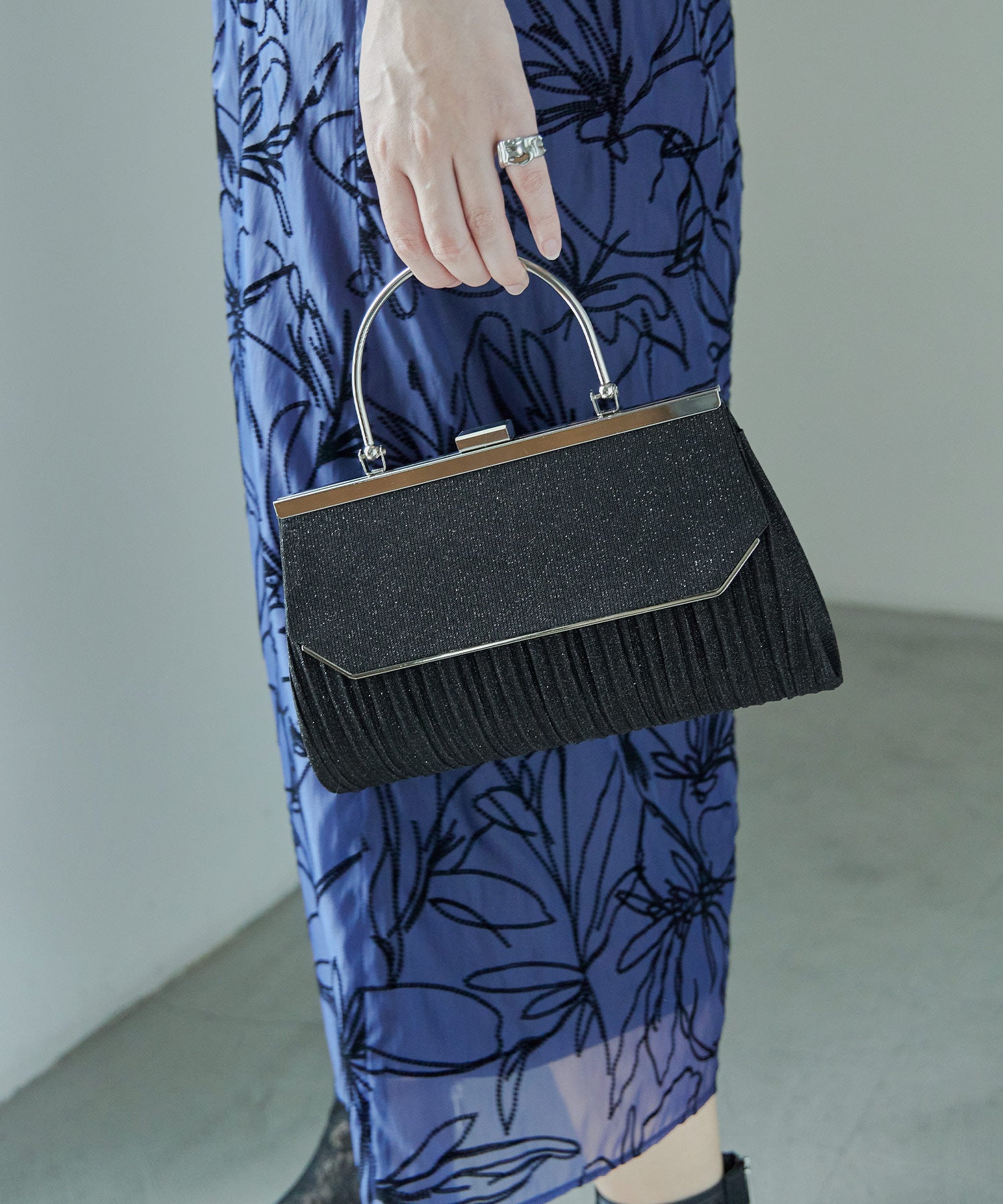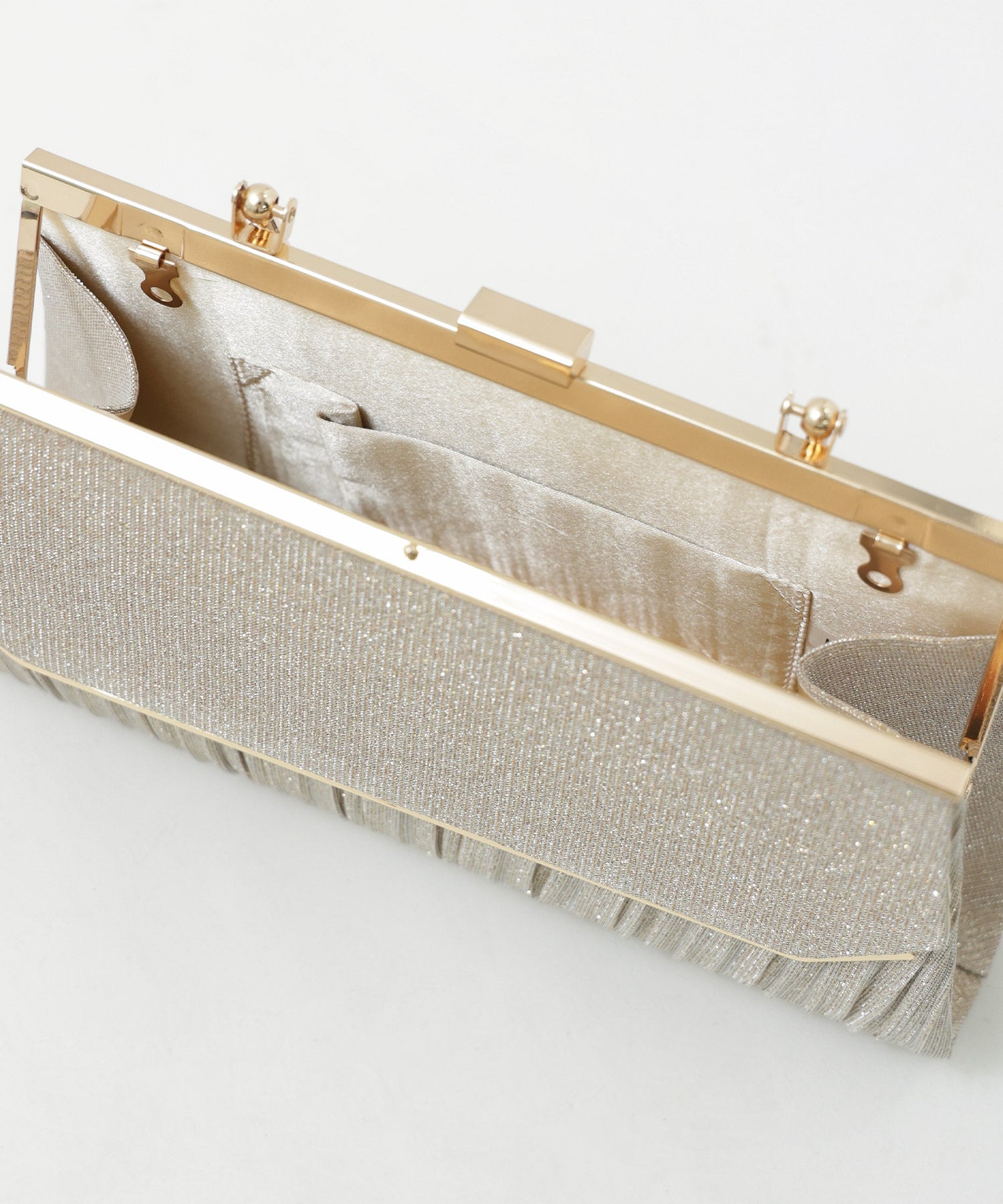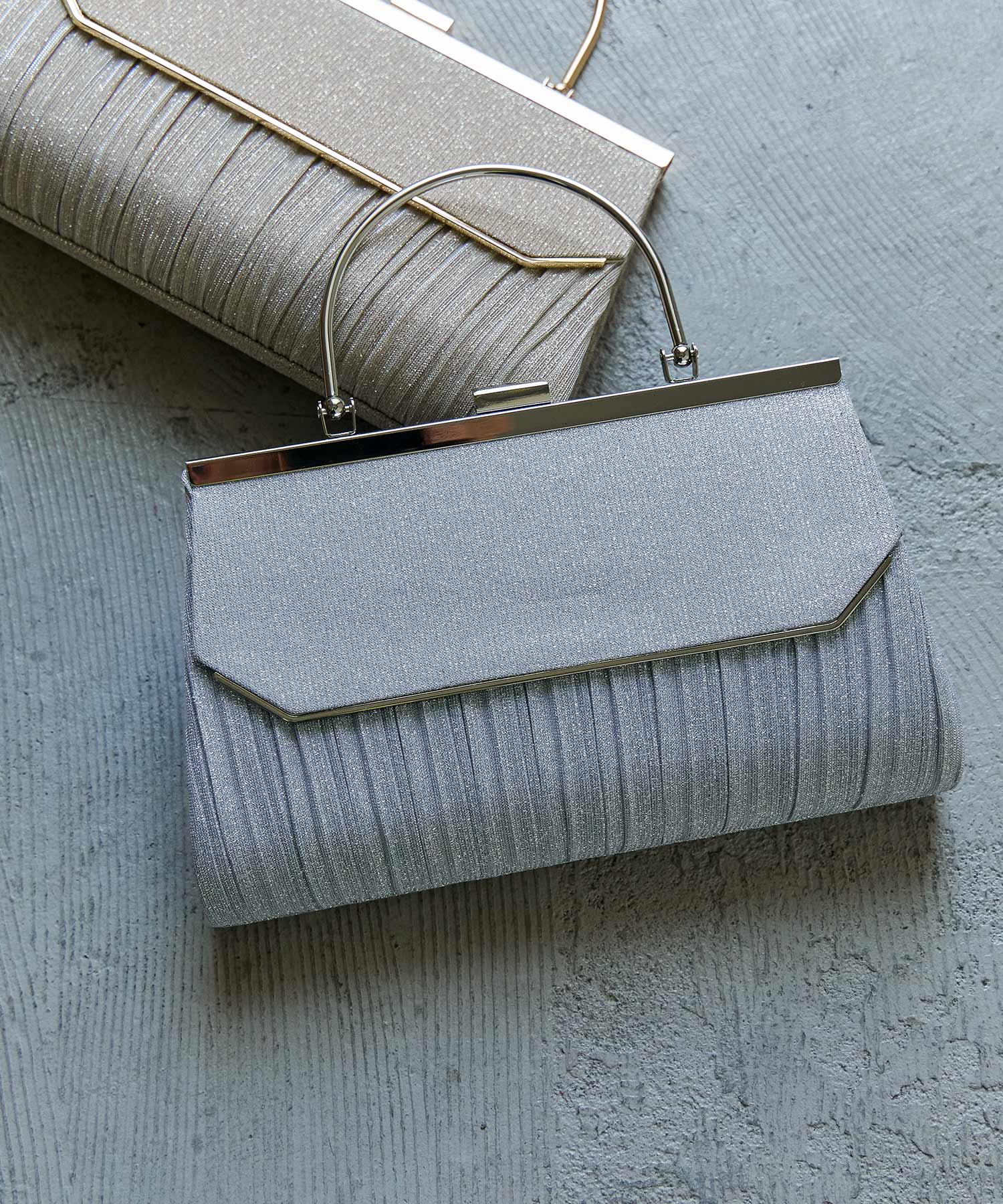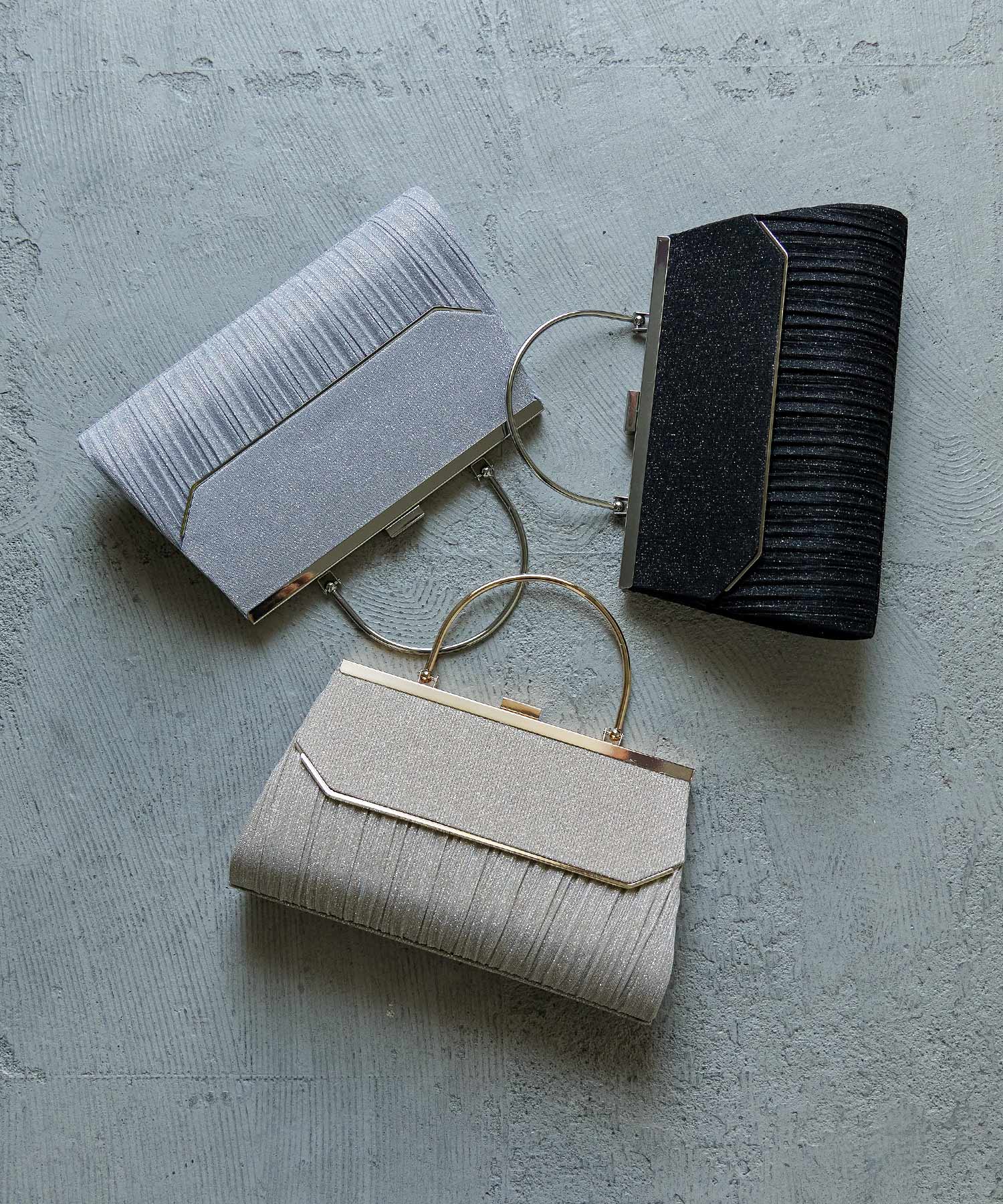 Zname レター型ラメプリーツがま口ハンドバッグ