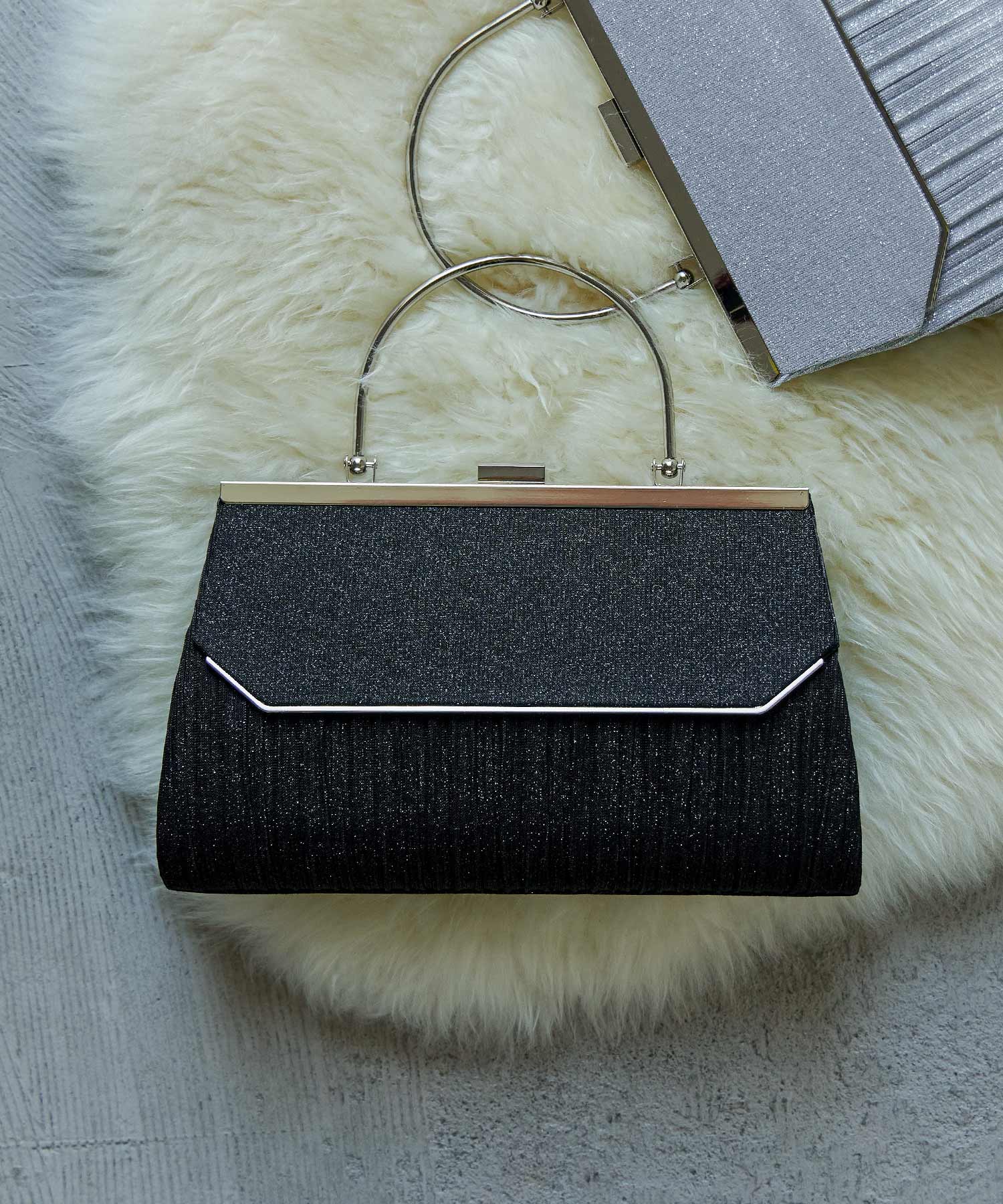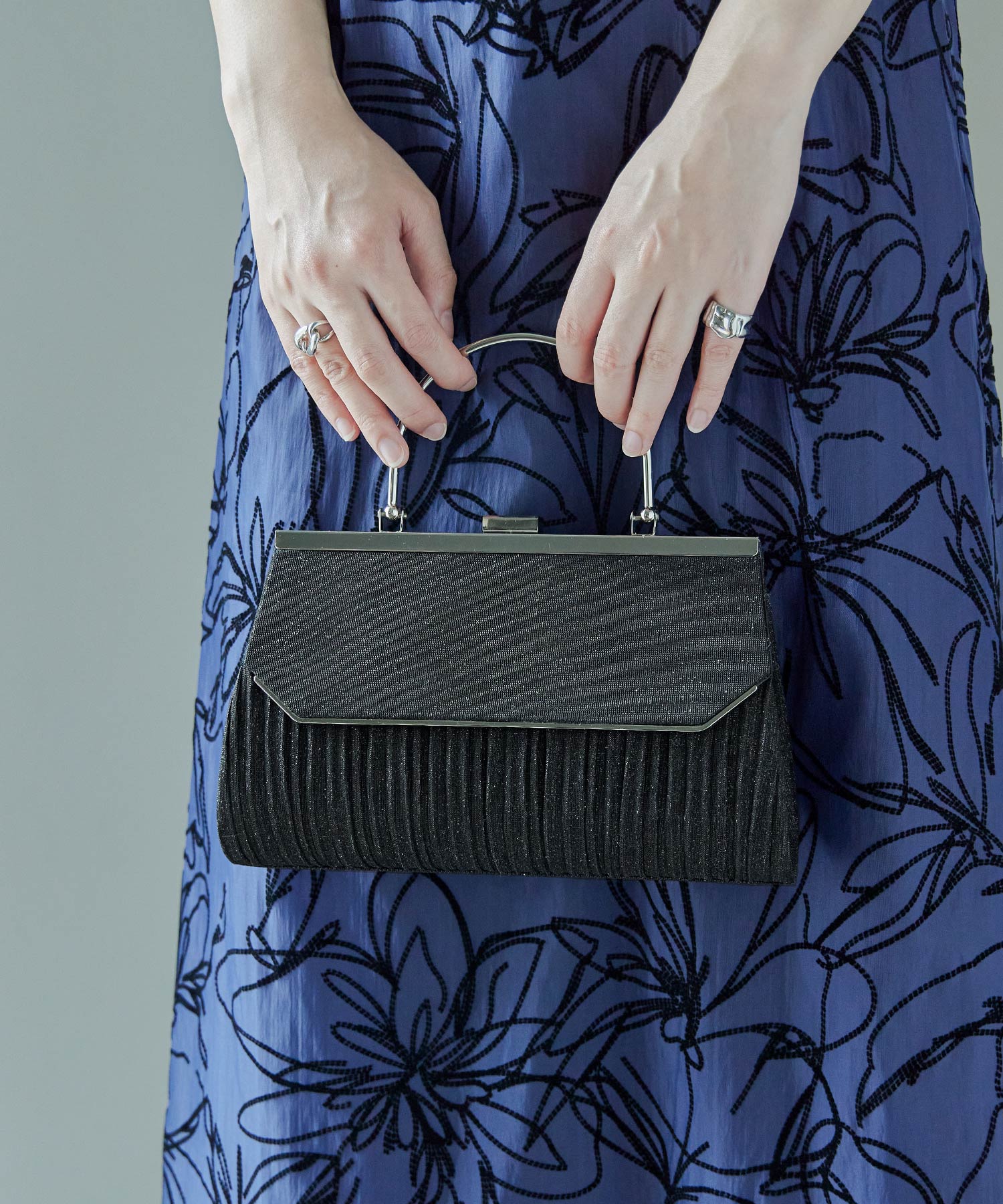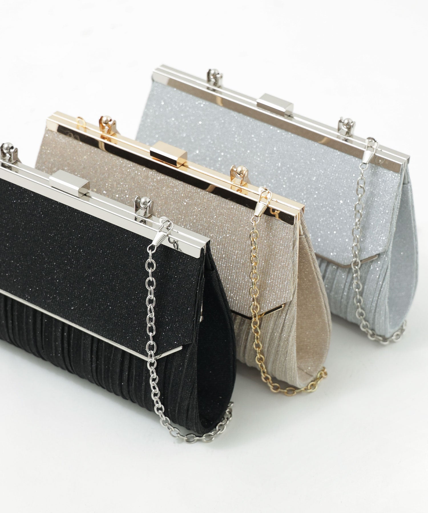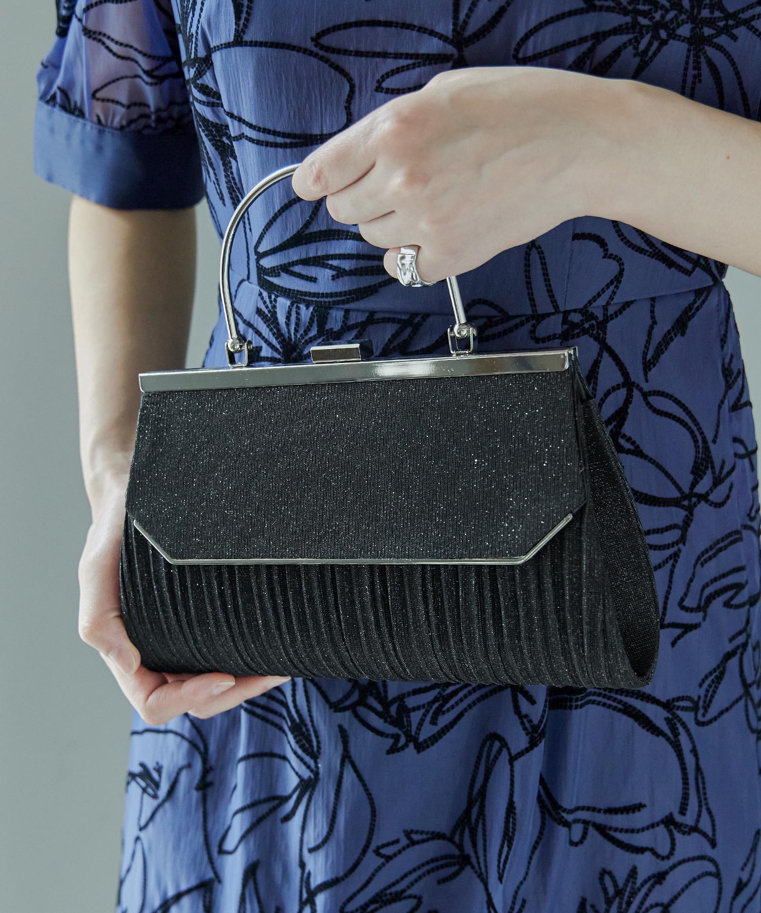 Zname レター型ラメプリーツがま口ハンドバッグ
