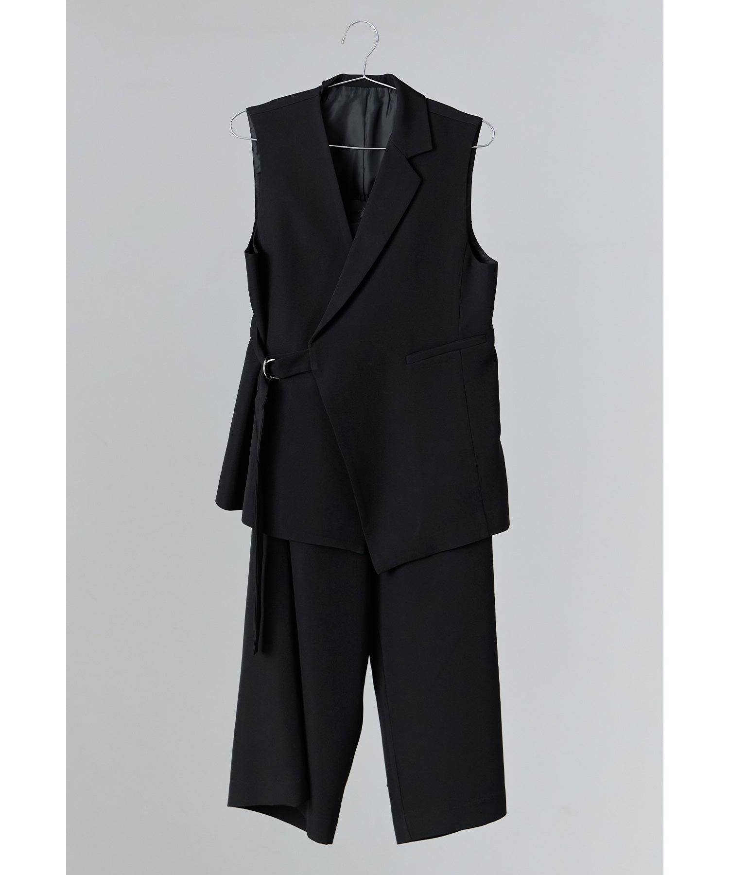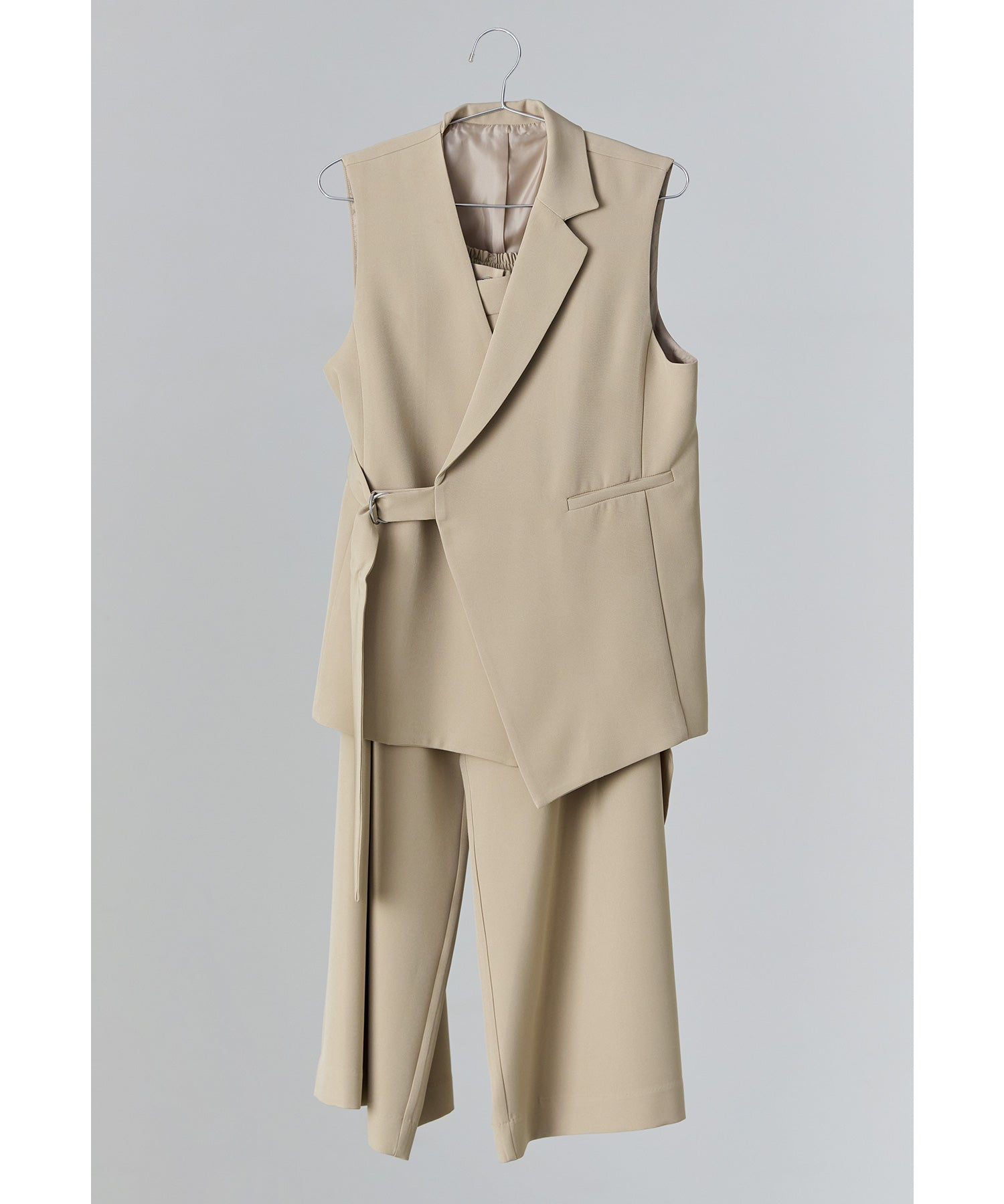 Rname アシンメトリーサイドベルトジレラップパンツスーツ レディース 2点セット セレモニースーツ セットアップ ノースリーブ トップス ベスト ワイドパンツ 入園式 卒園式 入学式 卒業式 成人式 同窓会 ママ 母 七五三 お宮参り 冠婚葬祭 体型カバー フォーマル 20代 30代 40代