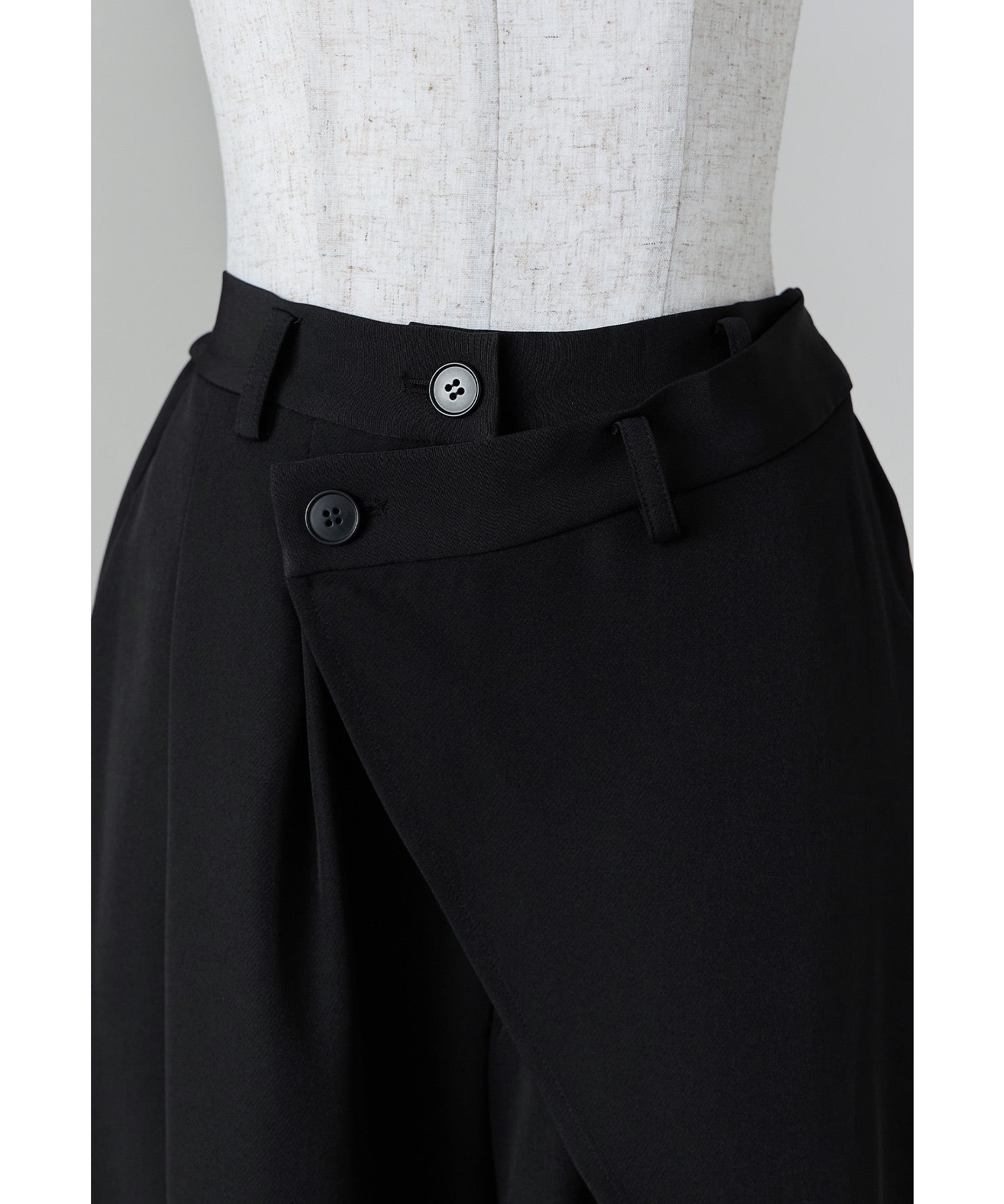 脚のラインを綺麗に隠してくれるラップデザインのワイドパンツは、