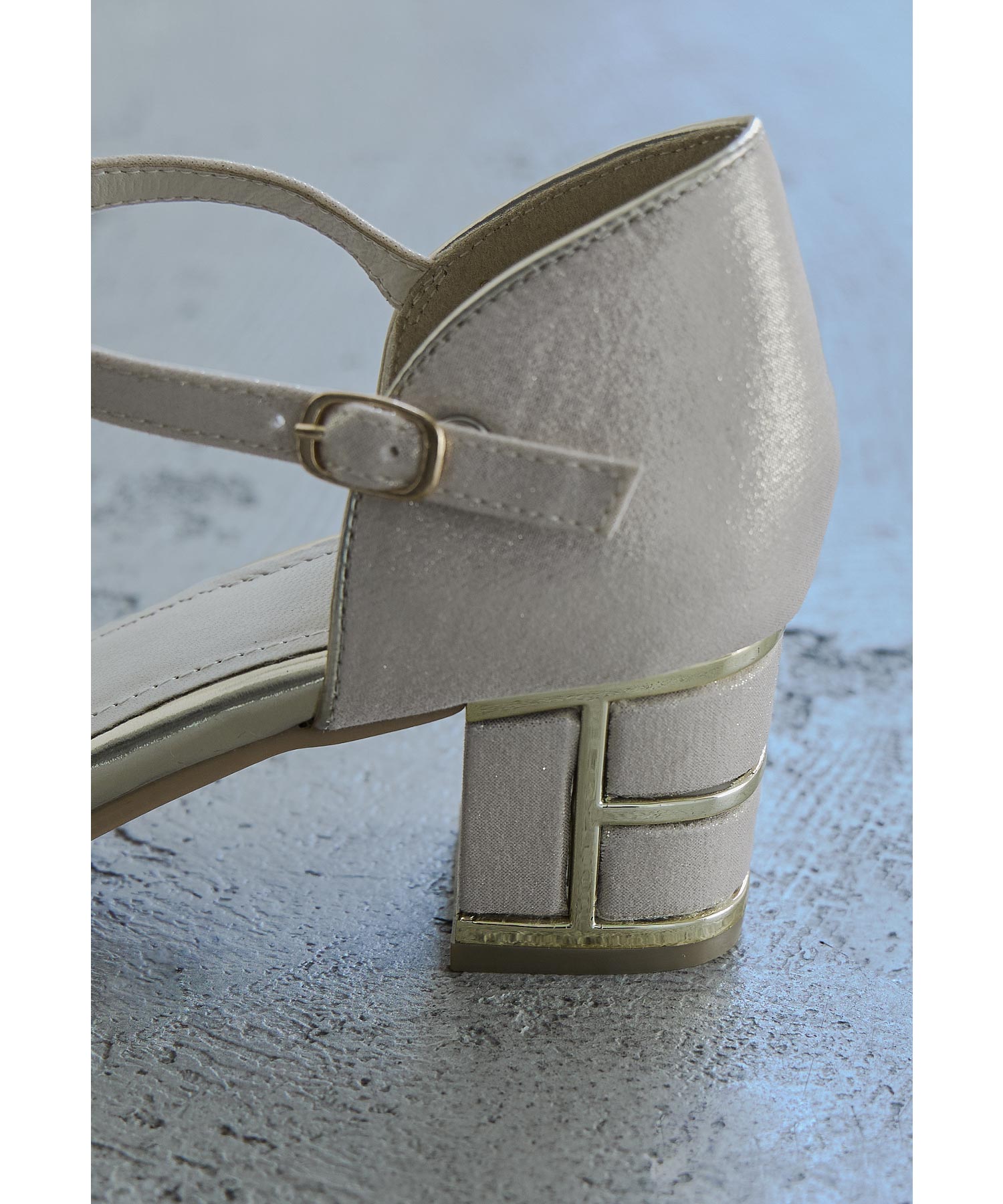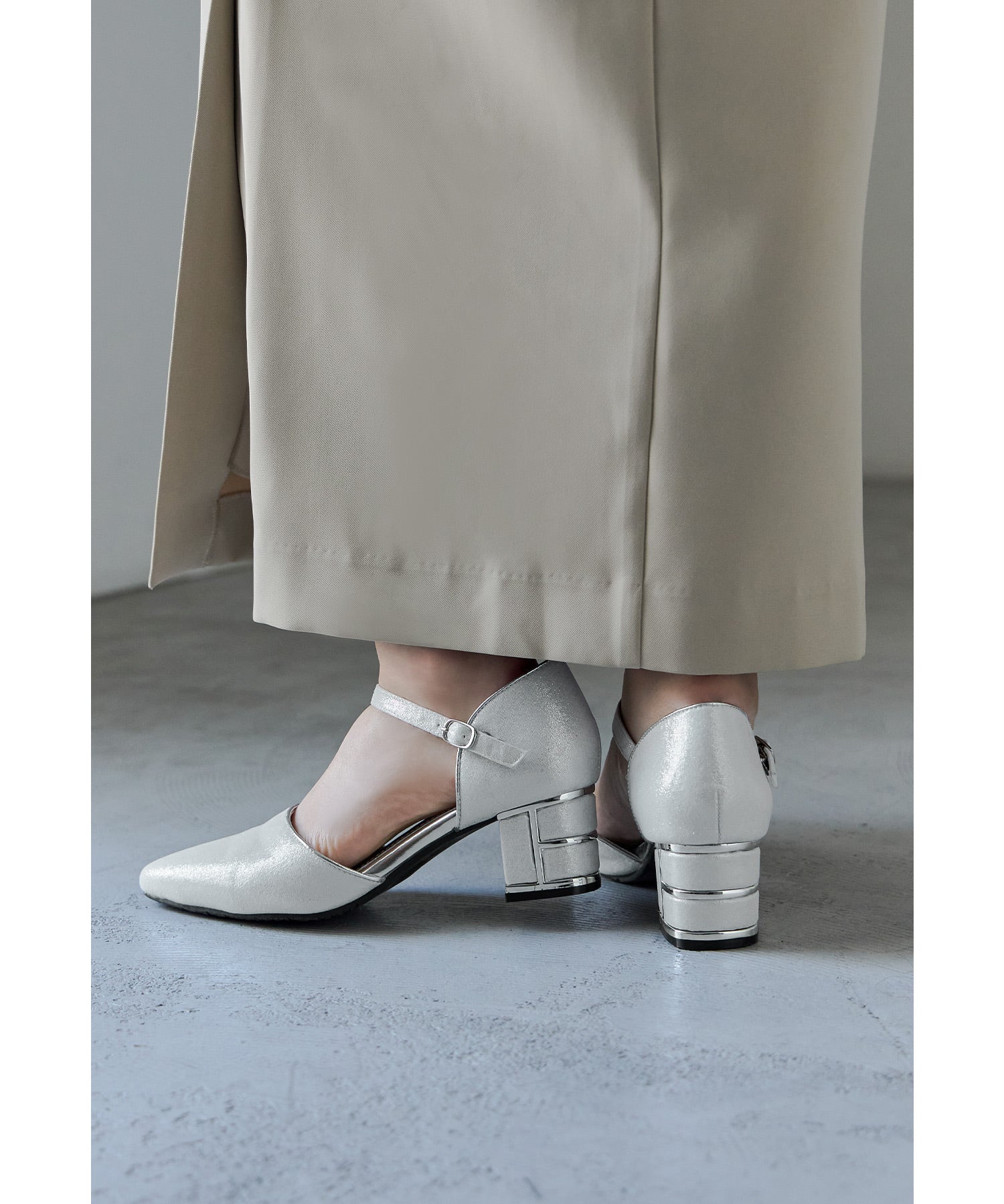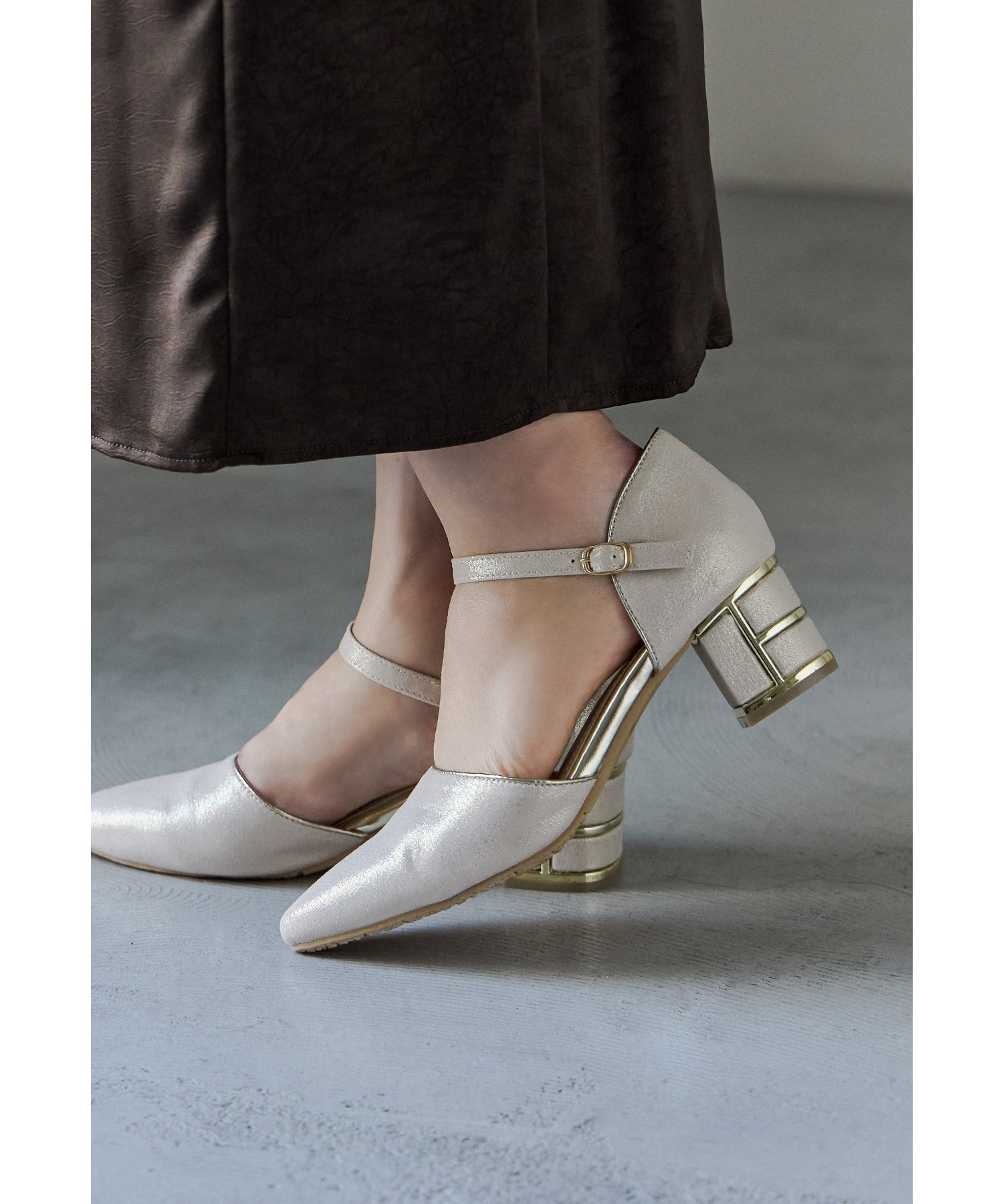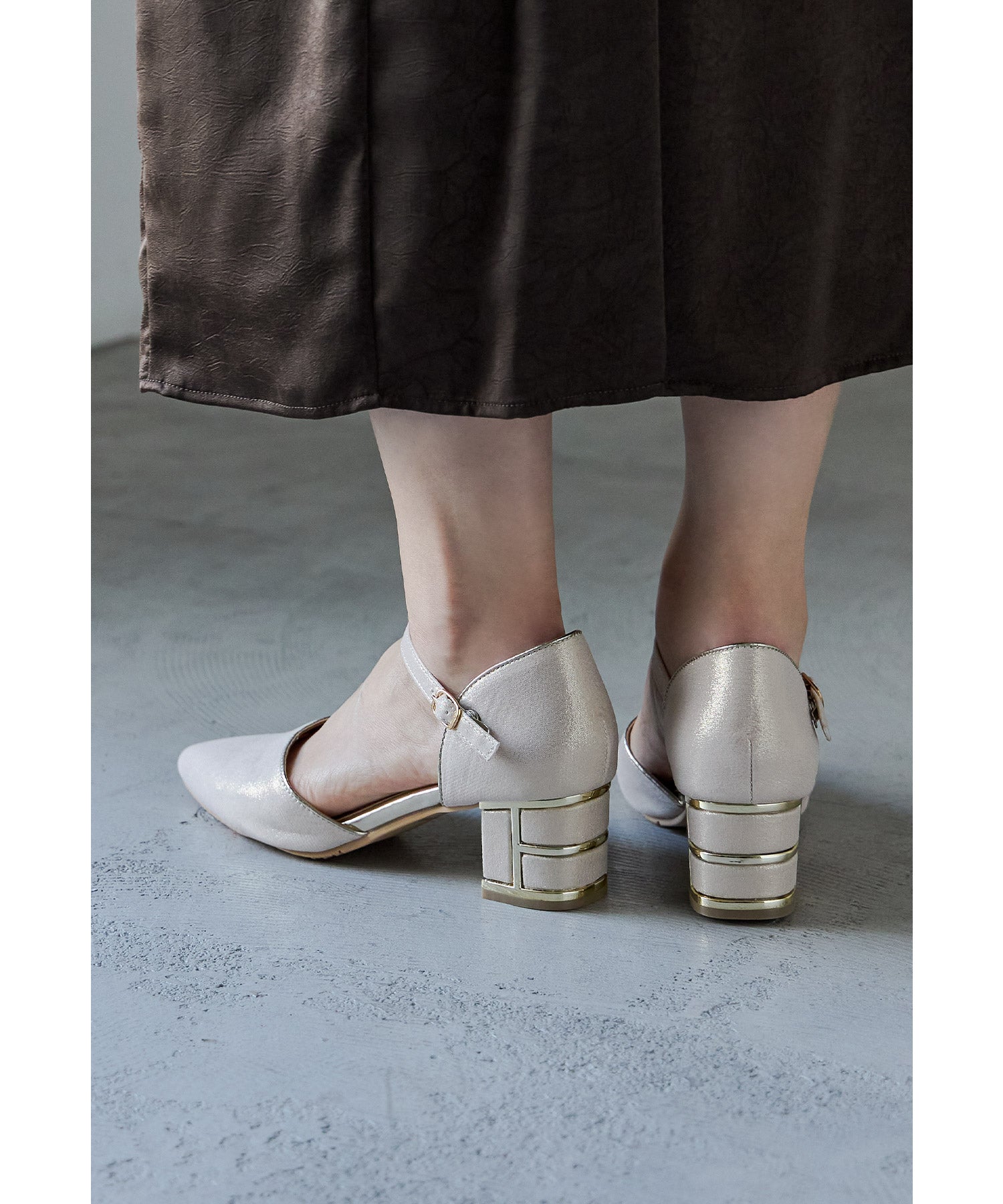 艶感のある生地に、ヒール部分にはメタリックラインを入れて高級感ある印象に。