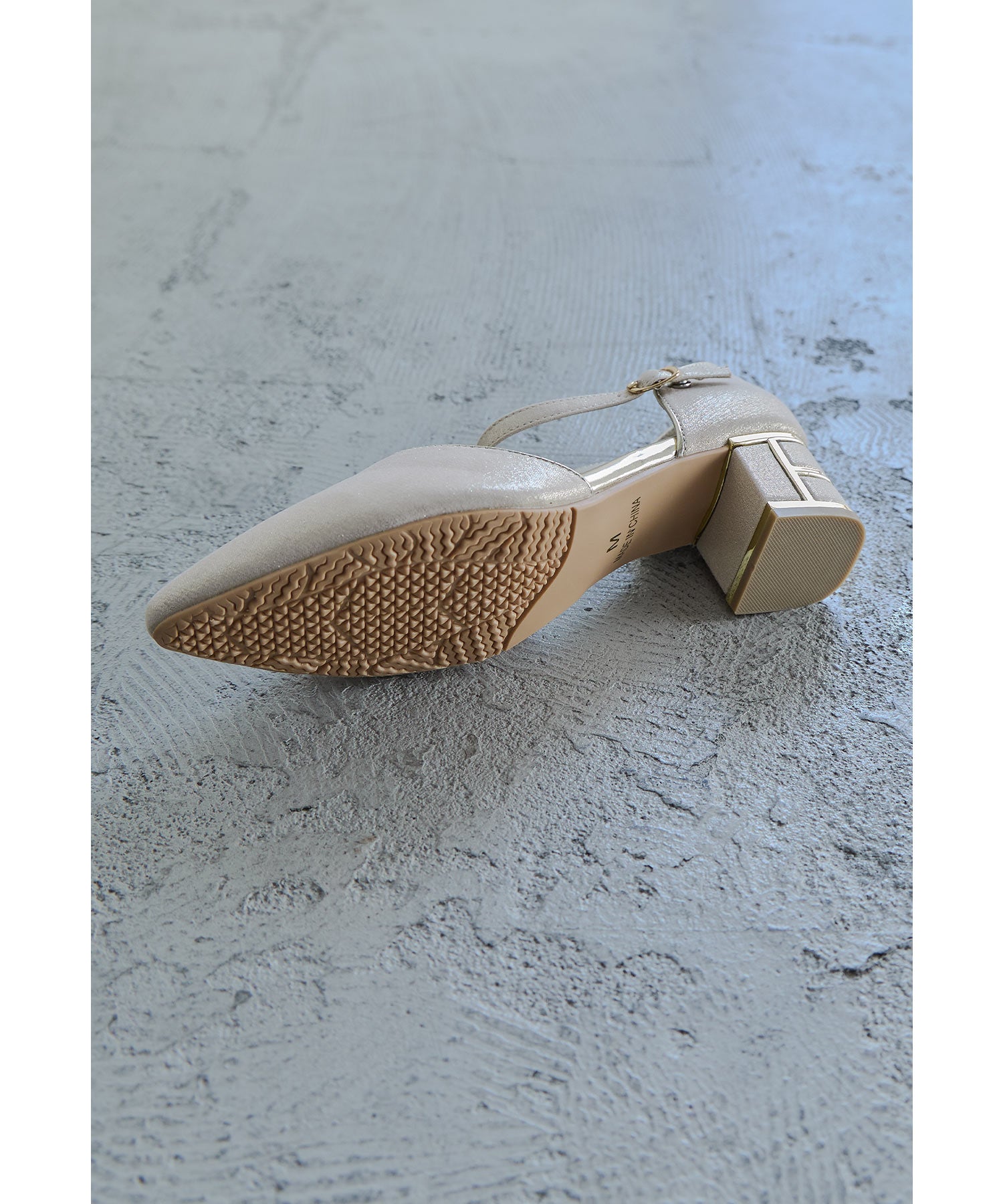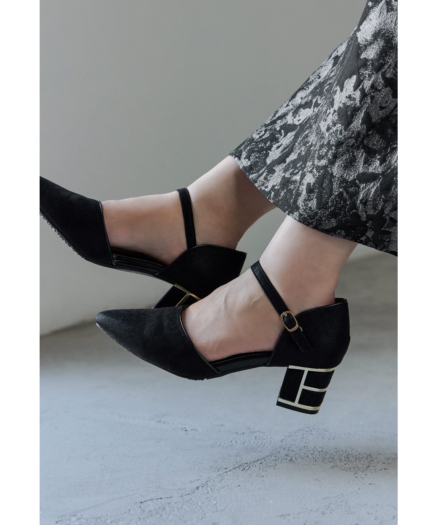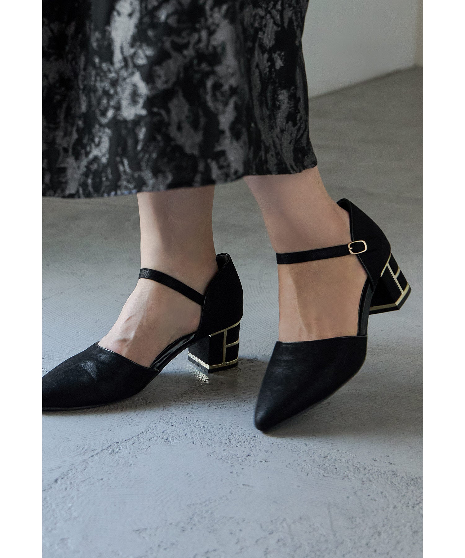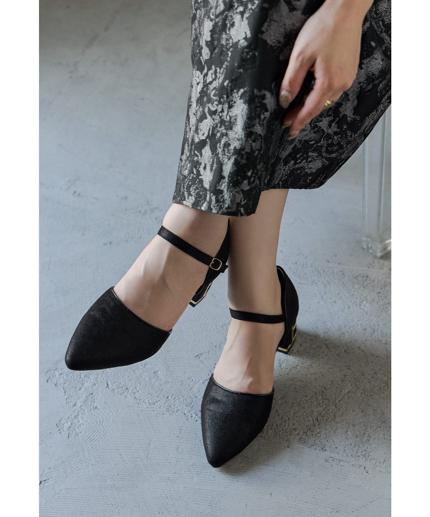 艶感のある生地に、ヒール部分にはメタリックラインを入れて高級感ある印象に。
