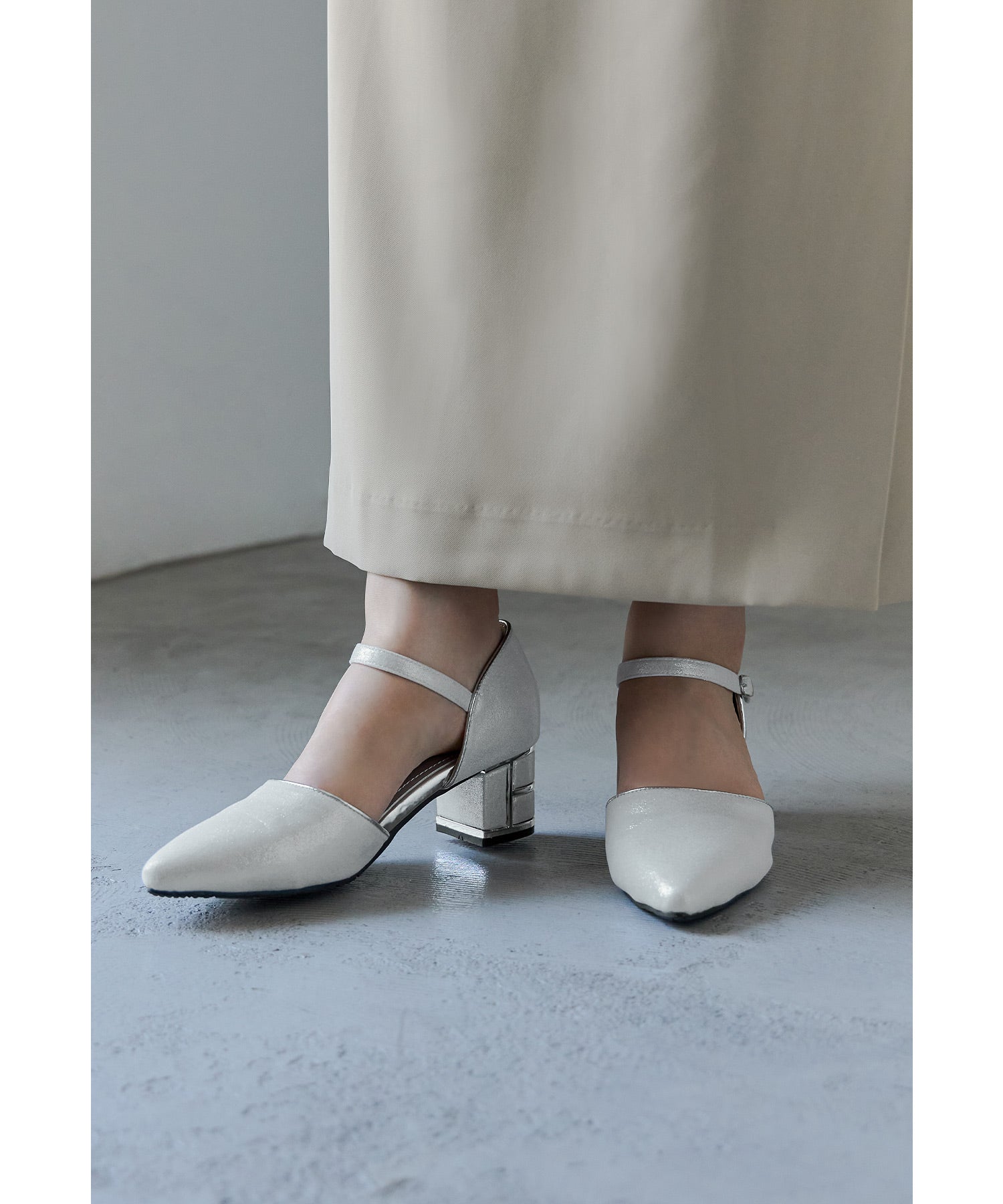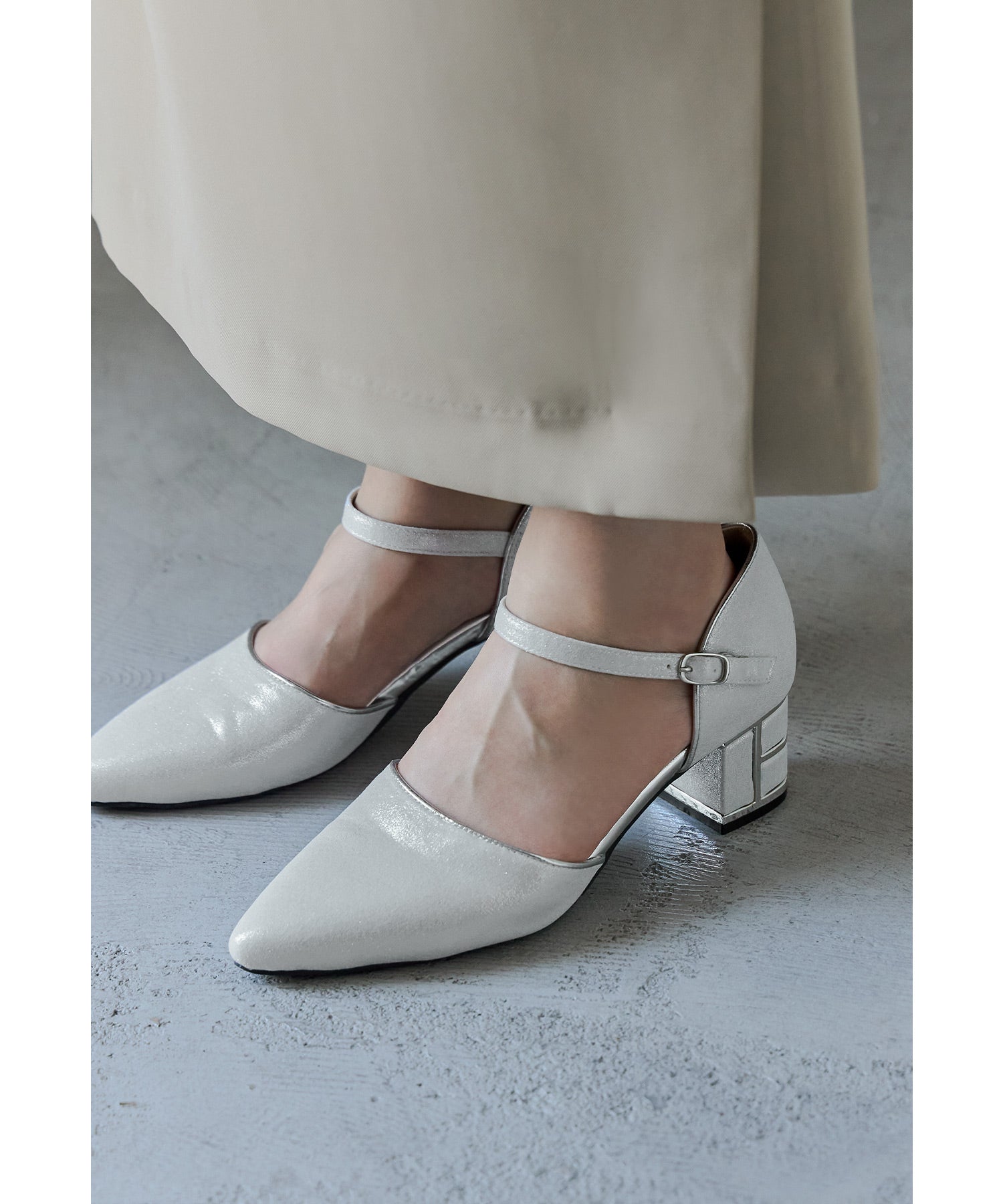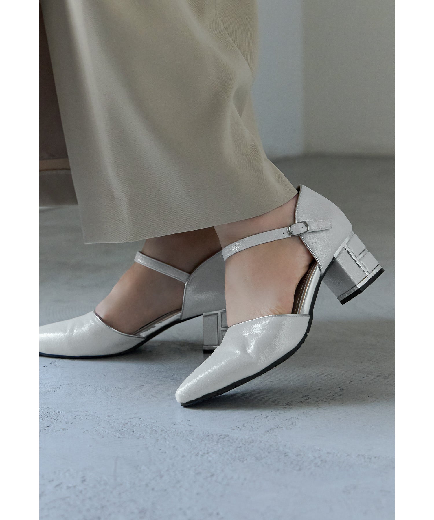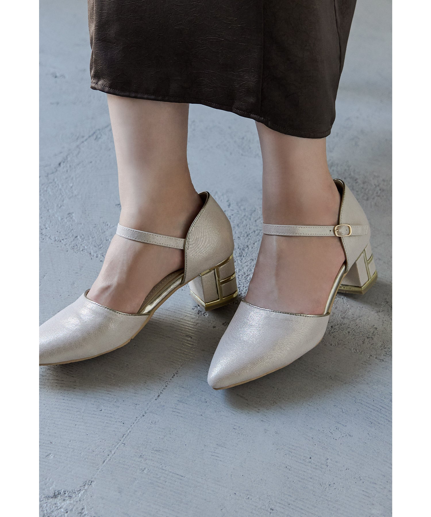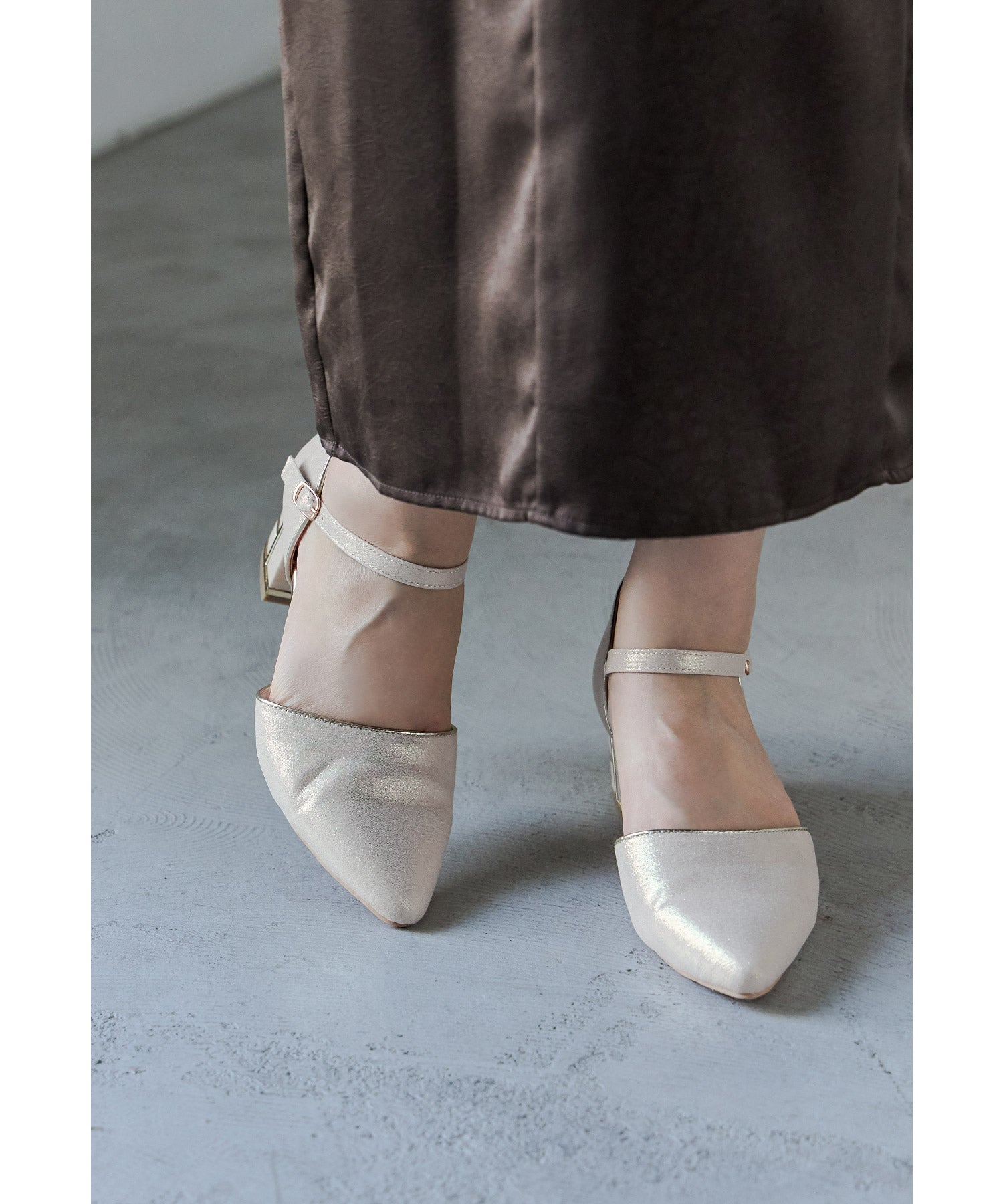 シンプルながらも上品な輝きを放つパンプス。