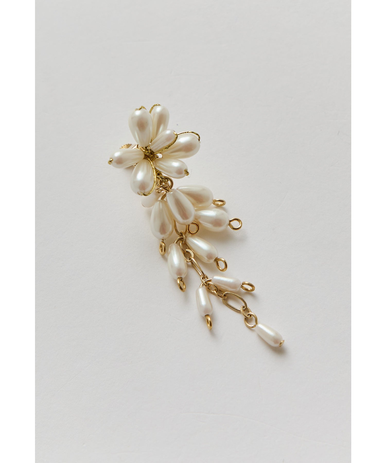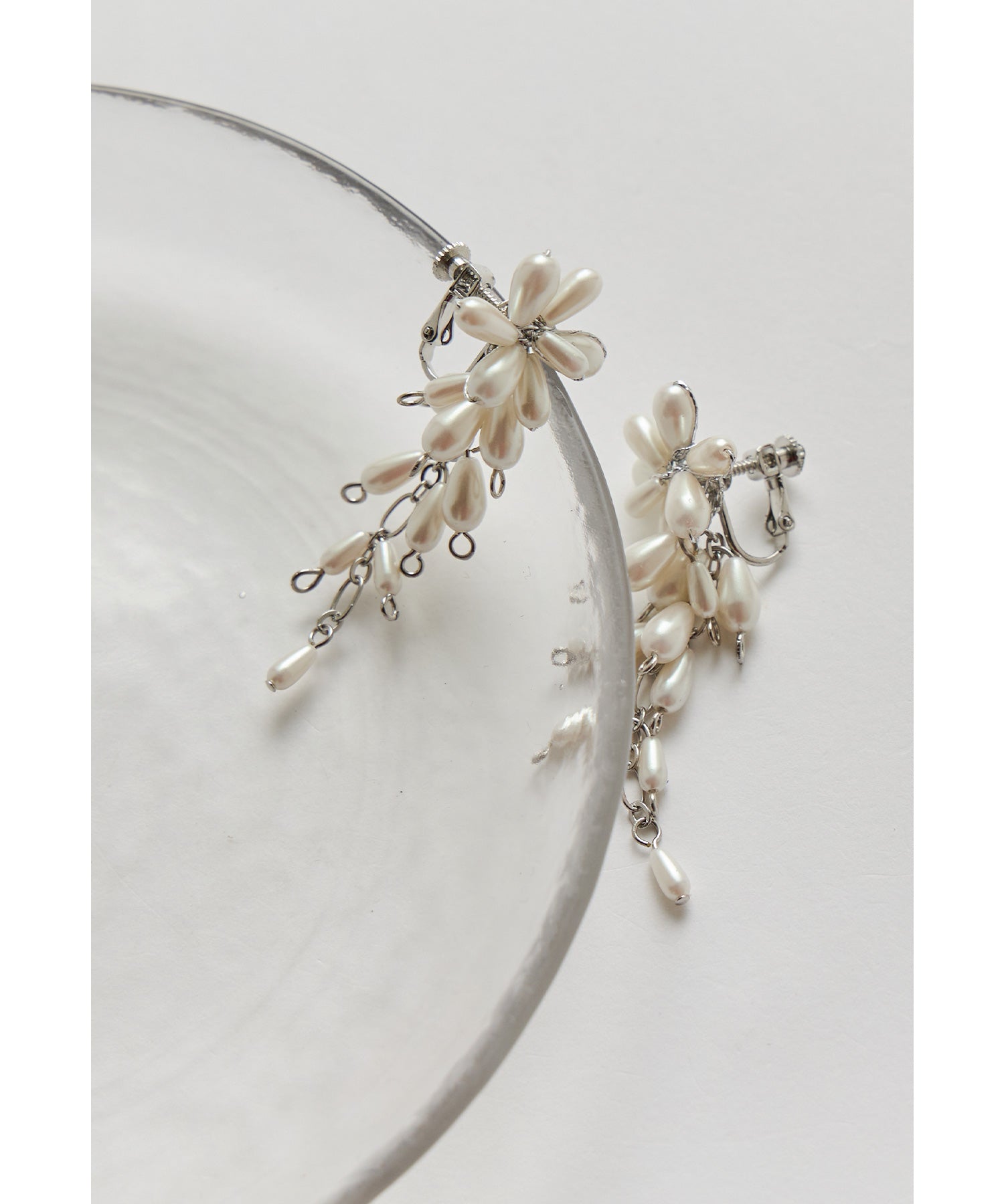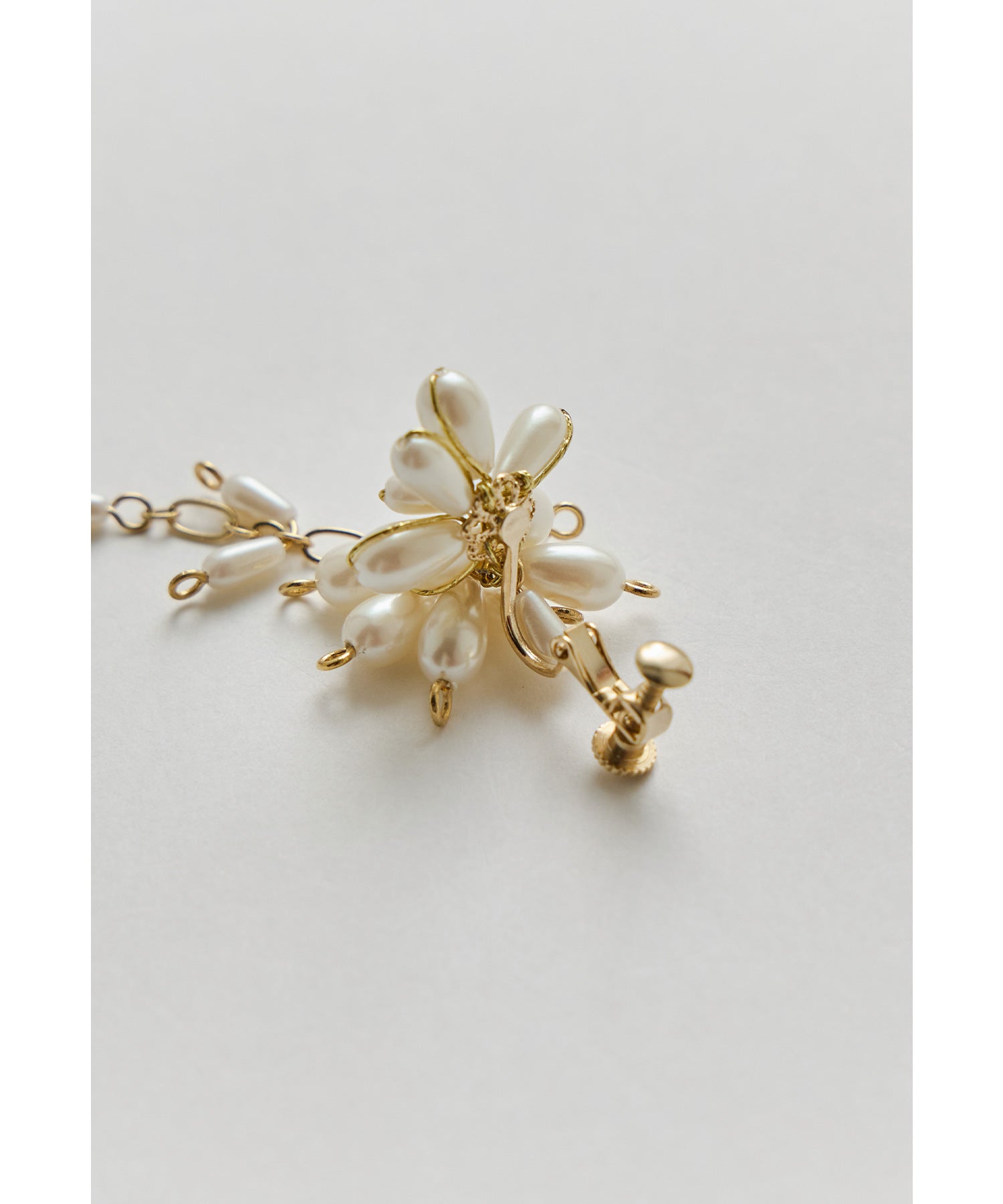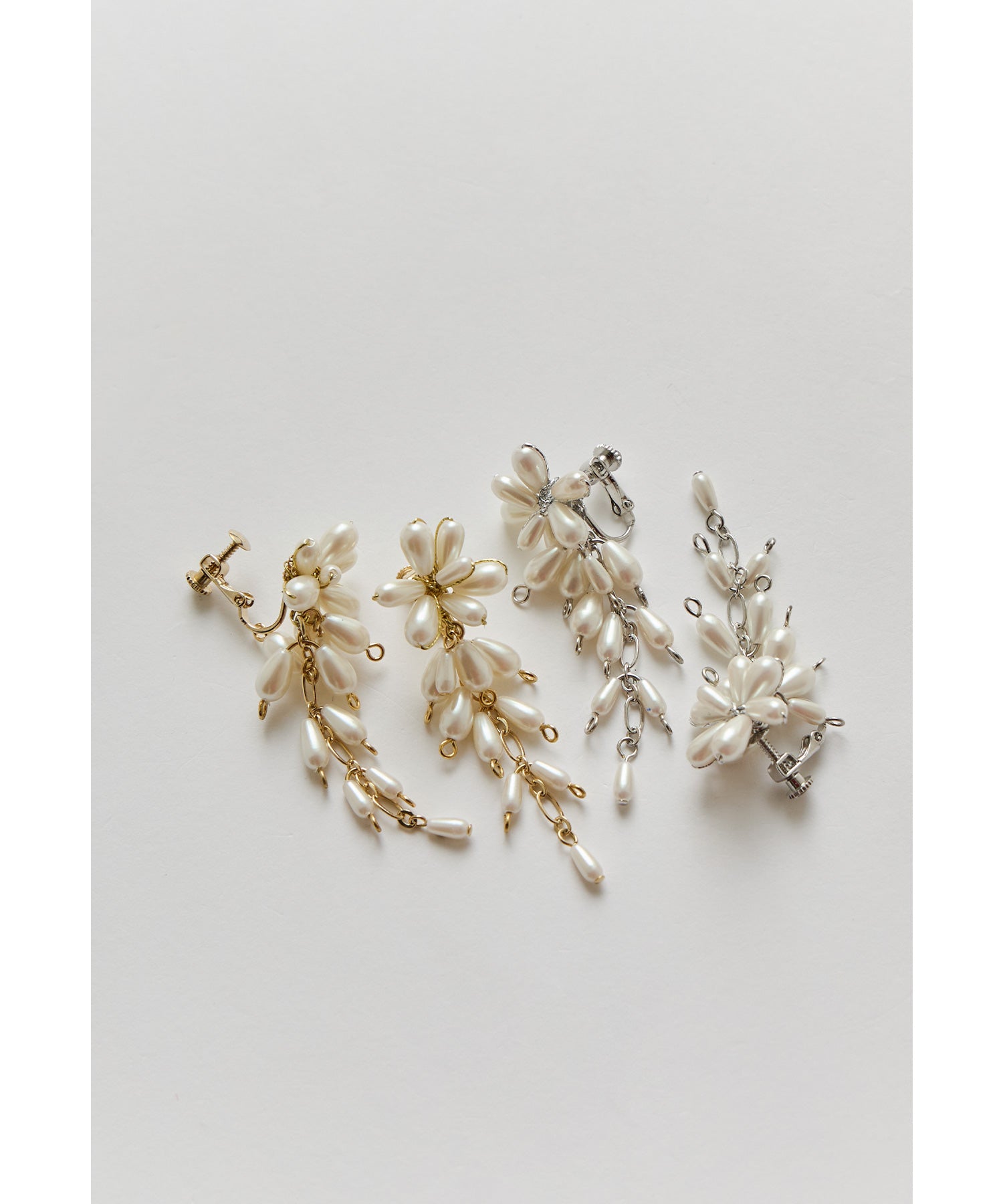 大きさの異なるドロップパールがゆらゆら揺れるロングイヤリング。