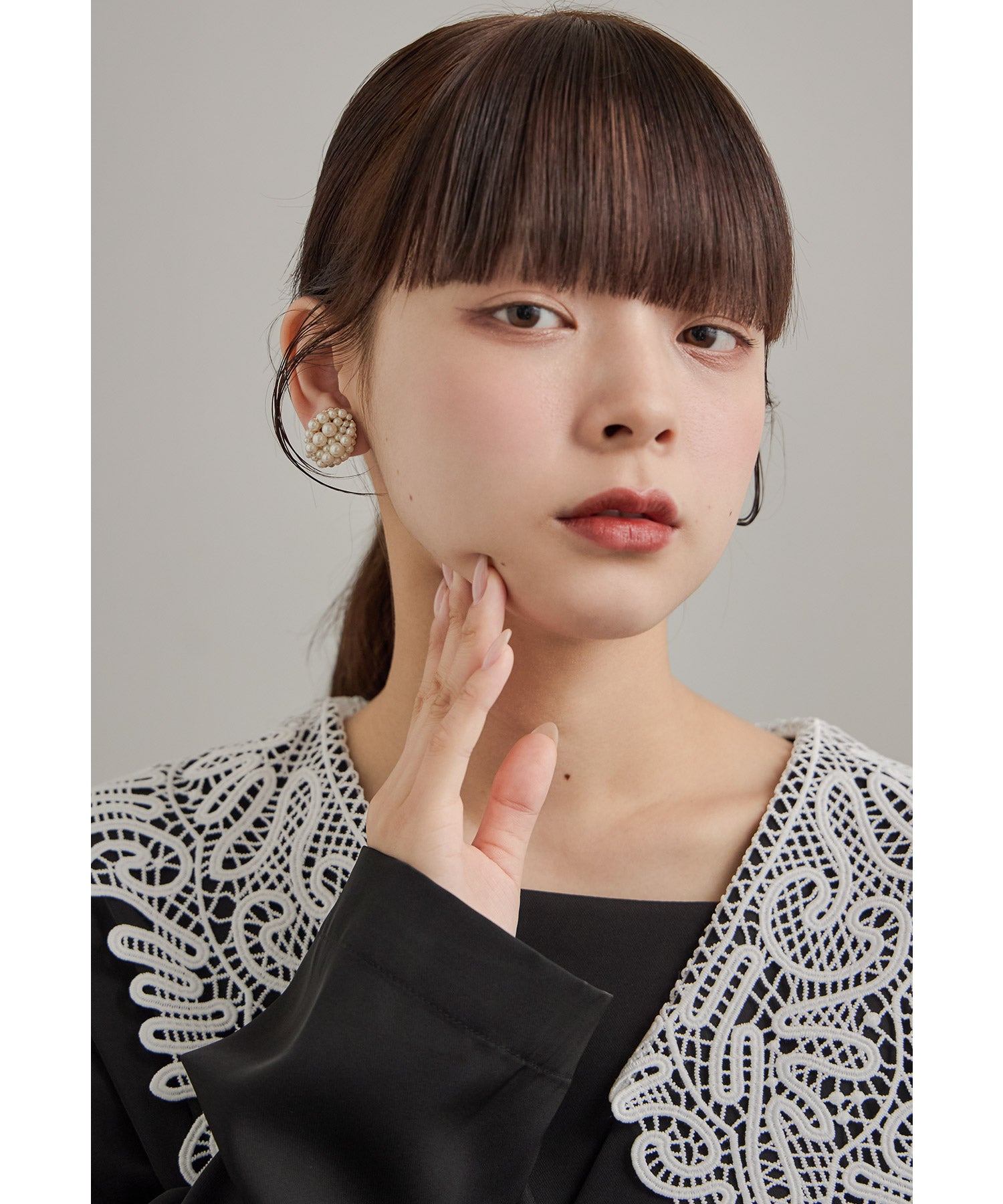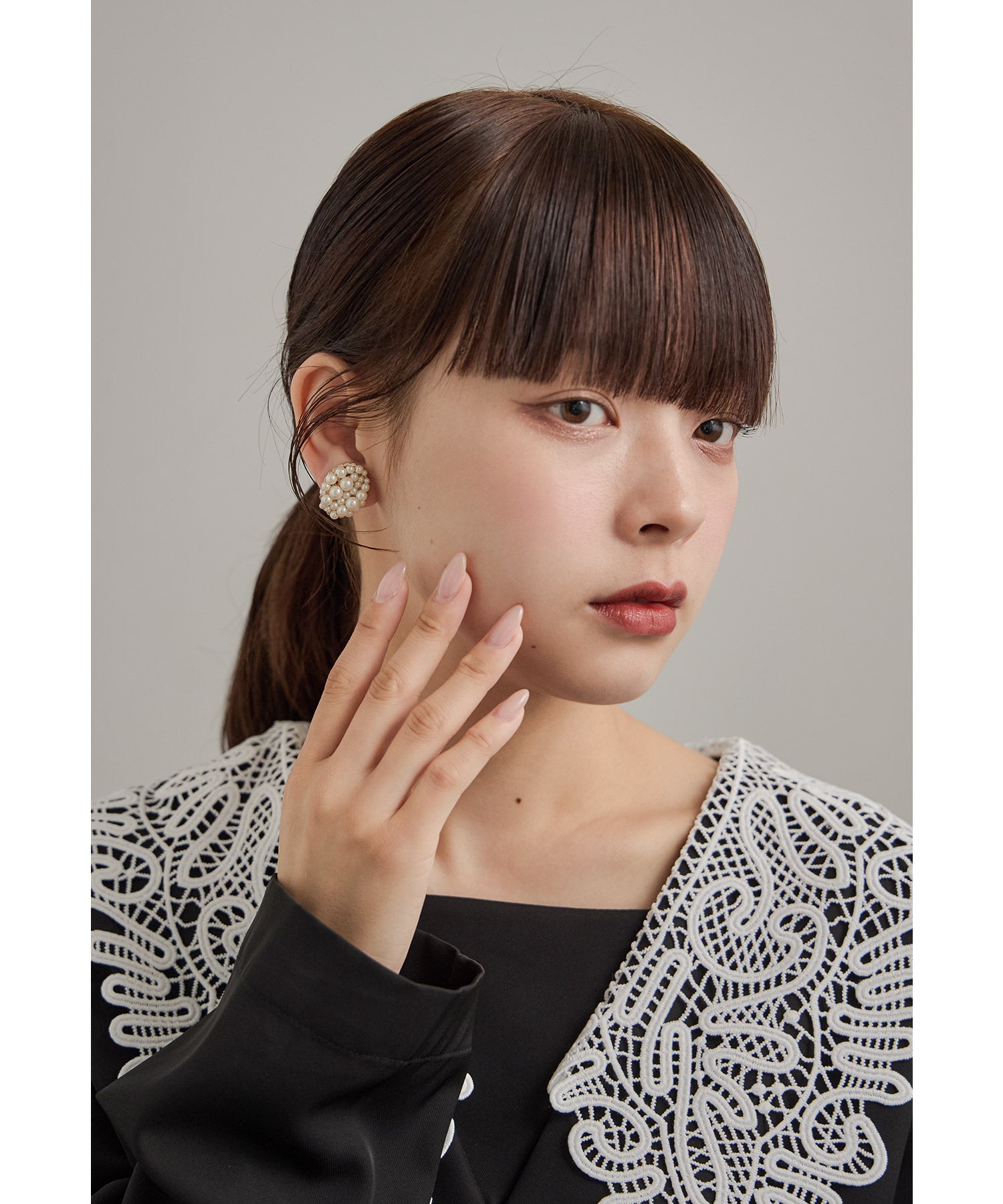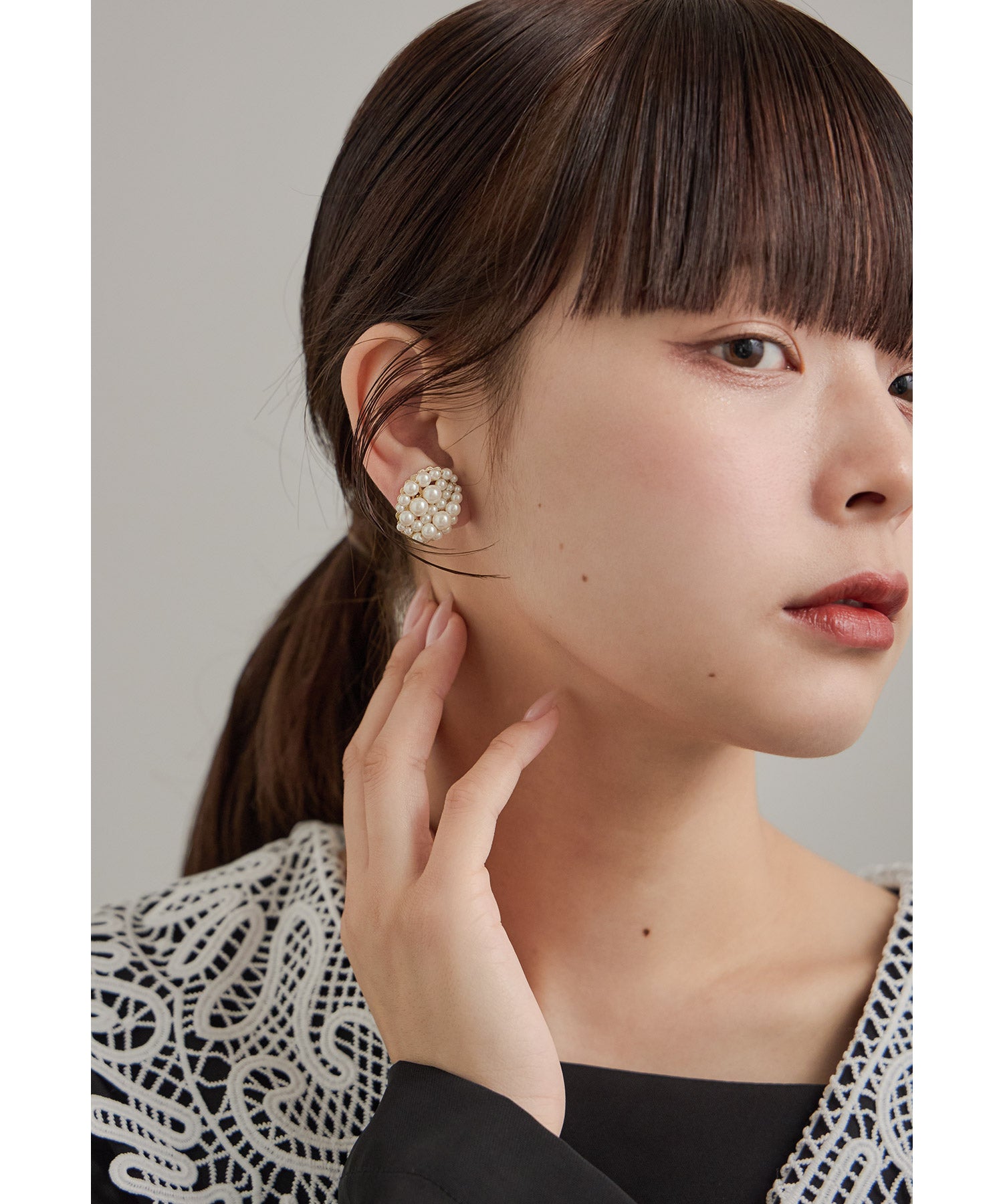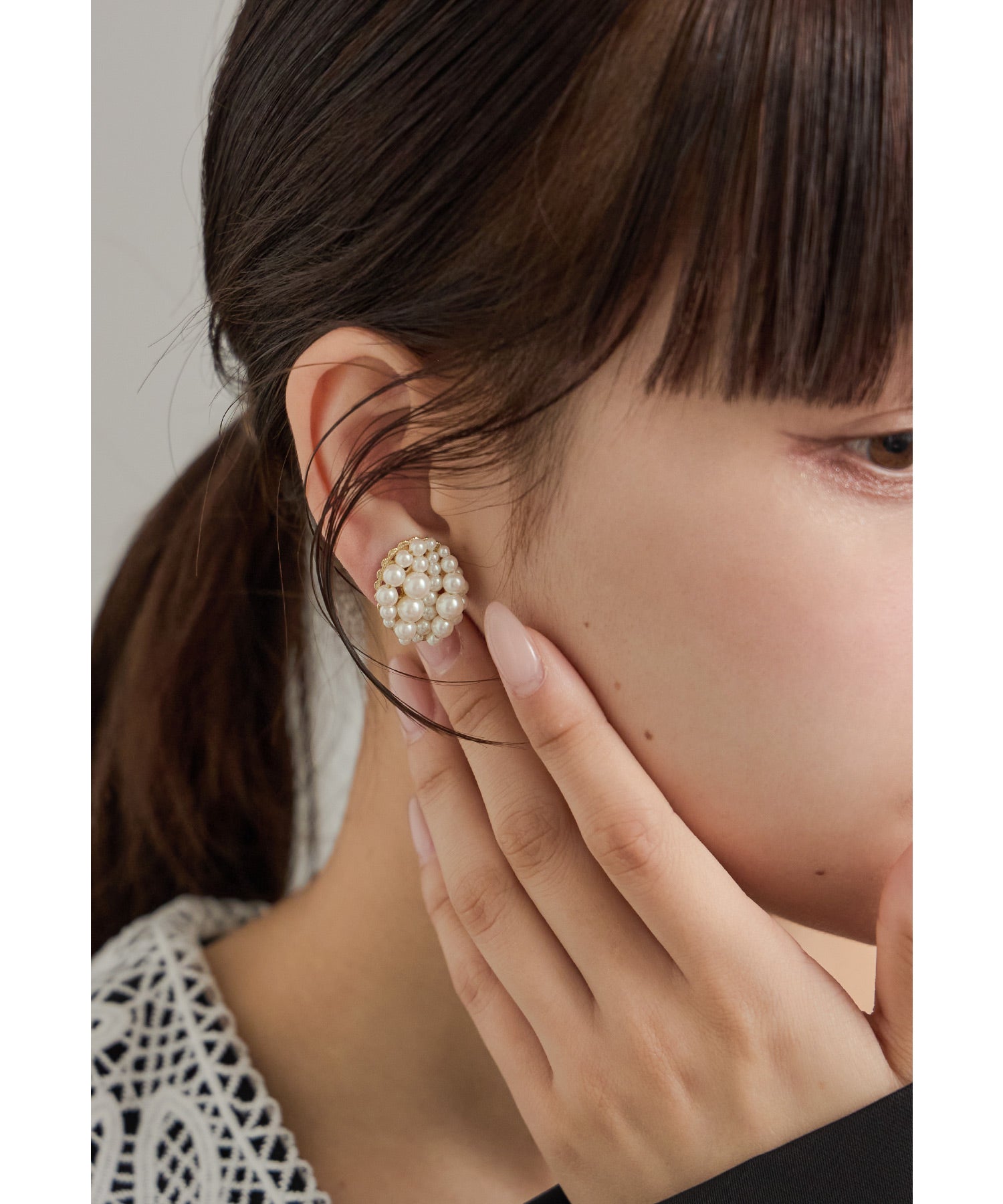 柔らかな輝きを放つオーバル型のパールイヤリング。