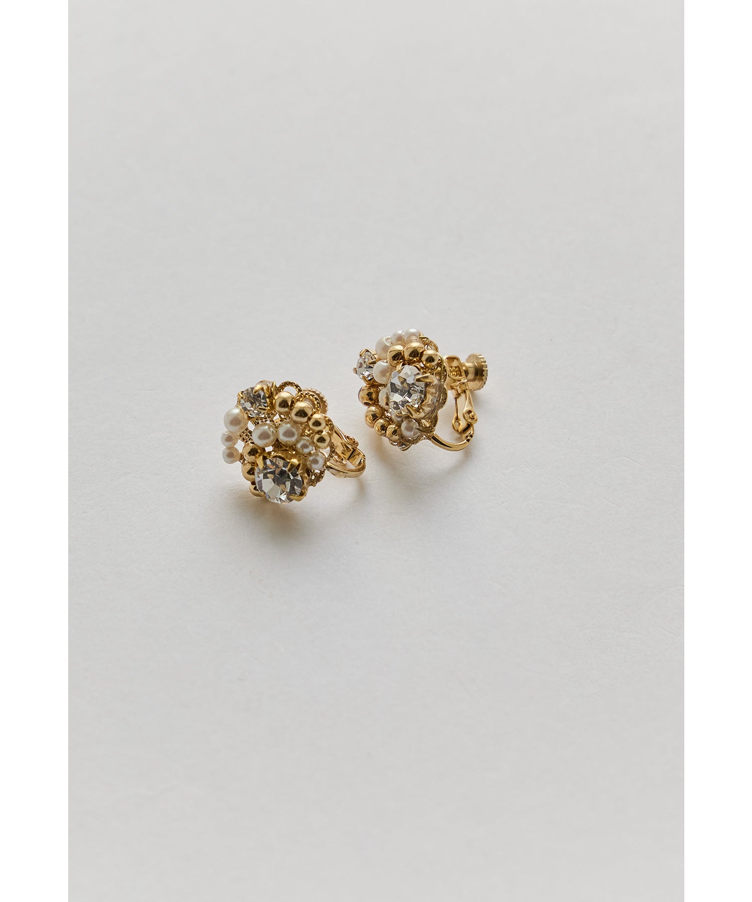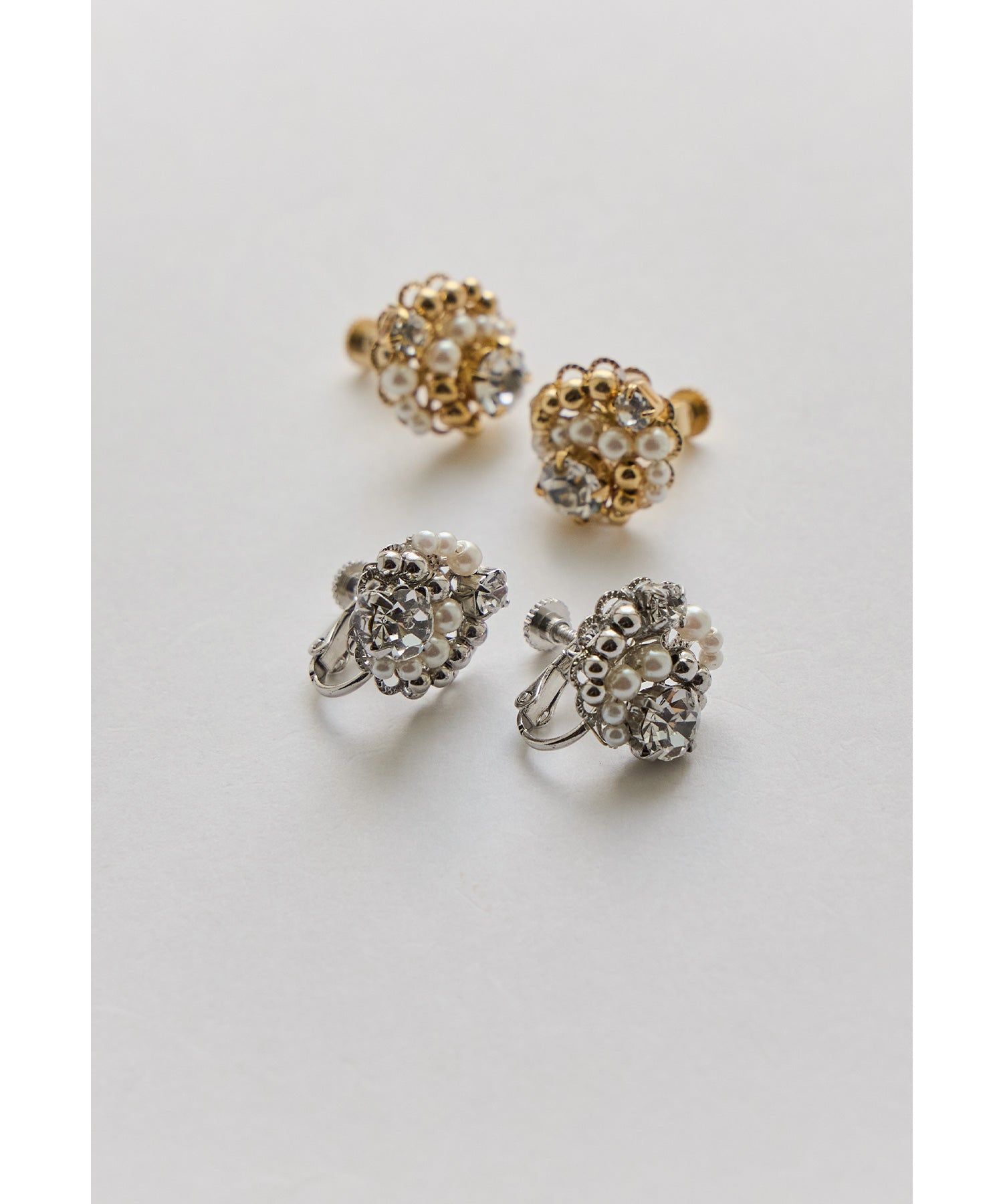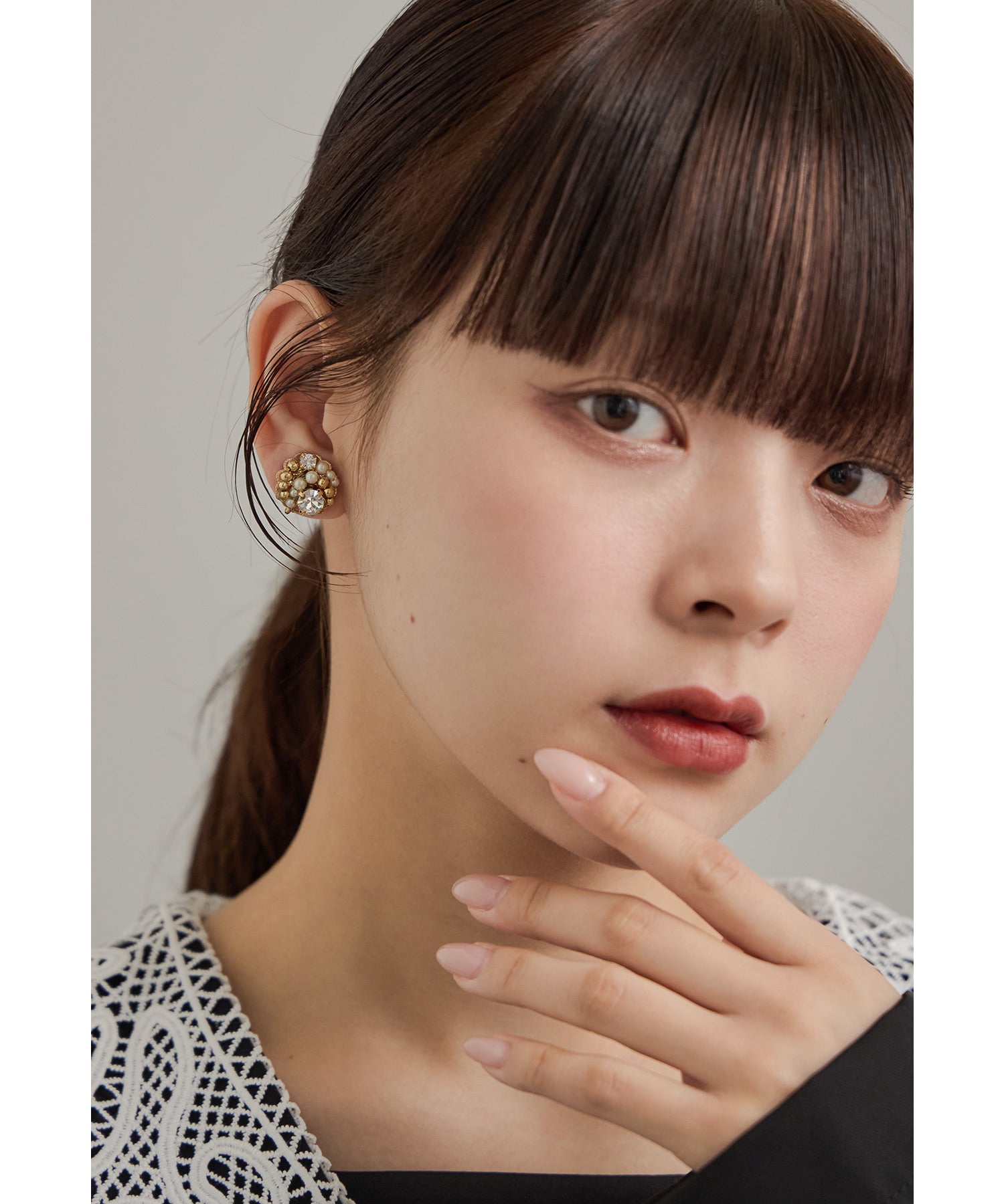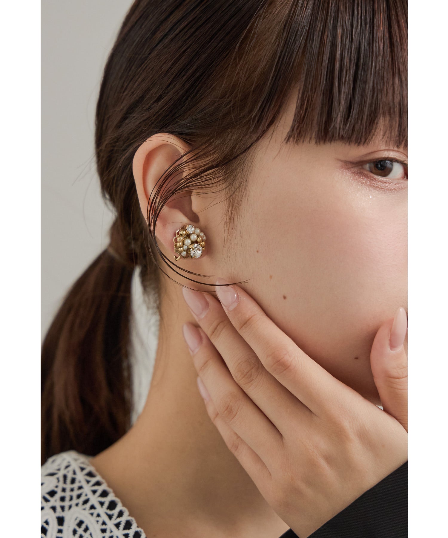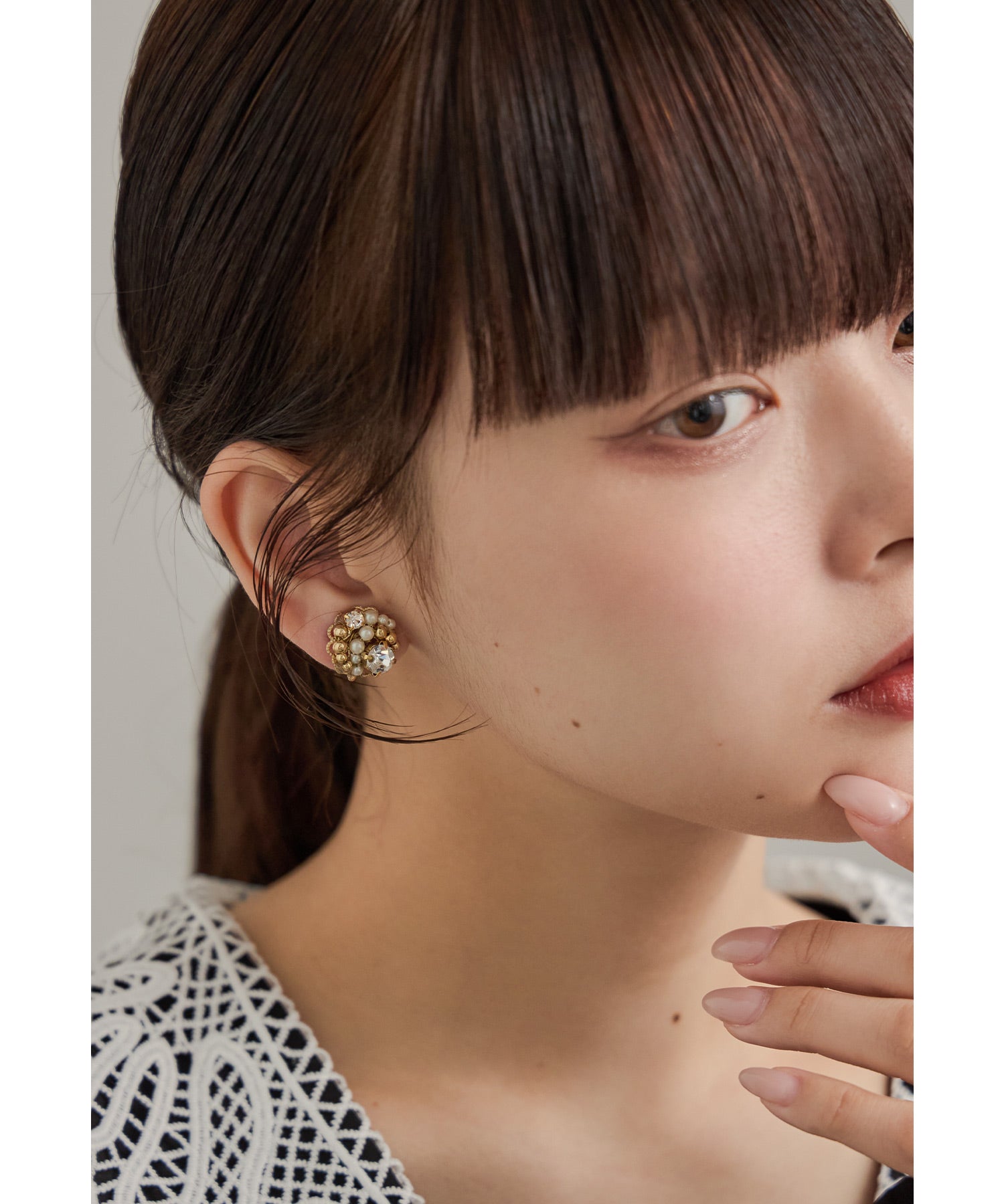 Rname ビジューパールイヤリング 両耳 アクセサリー 小ぶり 小さめ ゴールド シルバー メタル 上品 レディース フォーマル デイリー シンプル パーティー 結婚式 セレモニー 入学式 卒業式 成人式 謝恩会 食事会 二次会 お呼ばれ 披露宴 普段使い オケージョン プレゼント ギフト