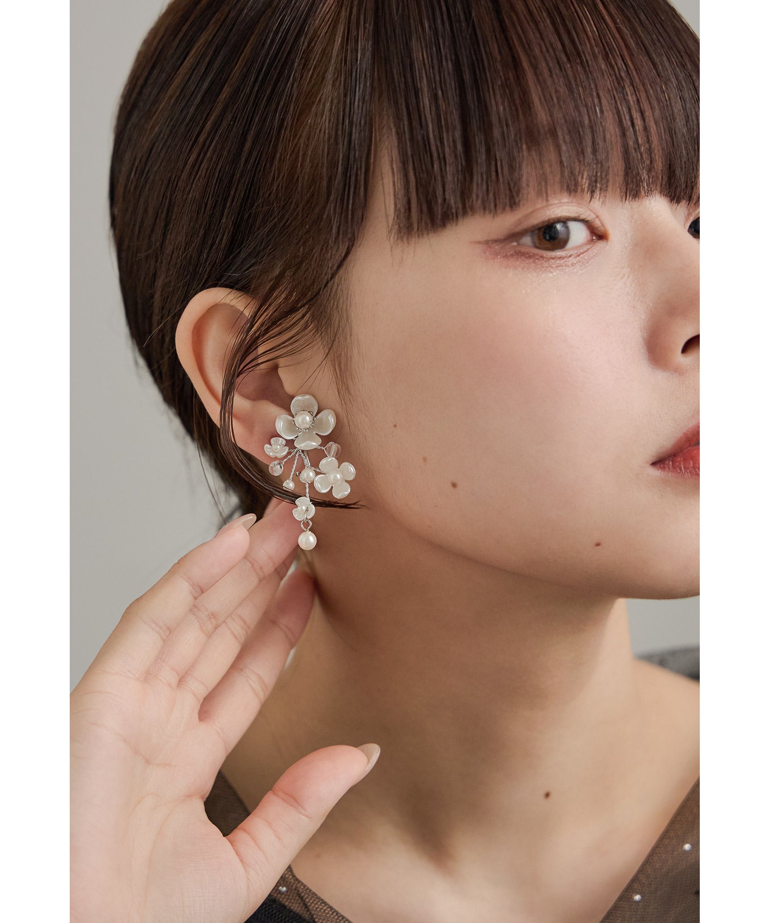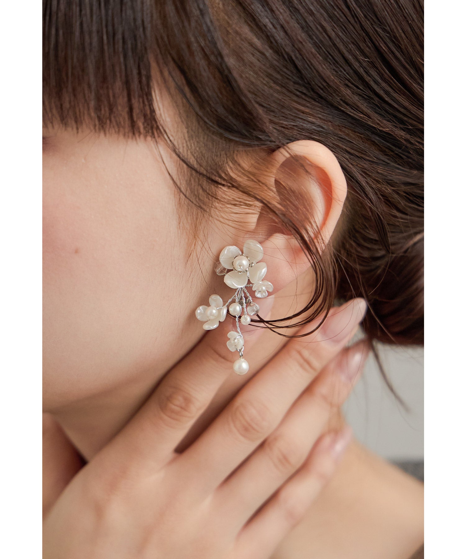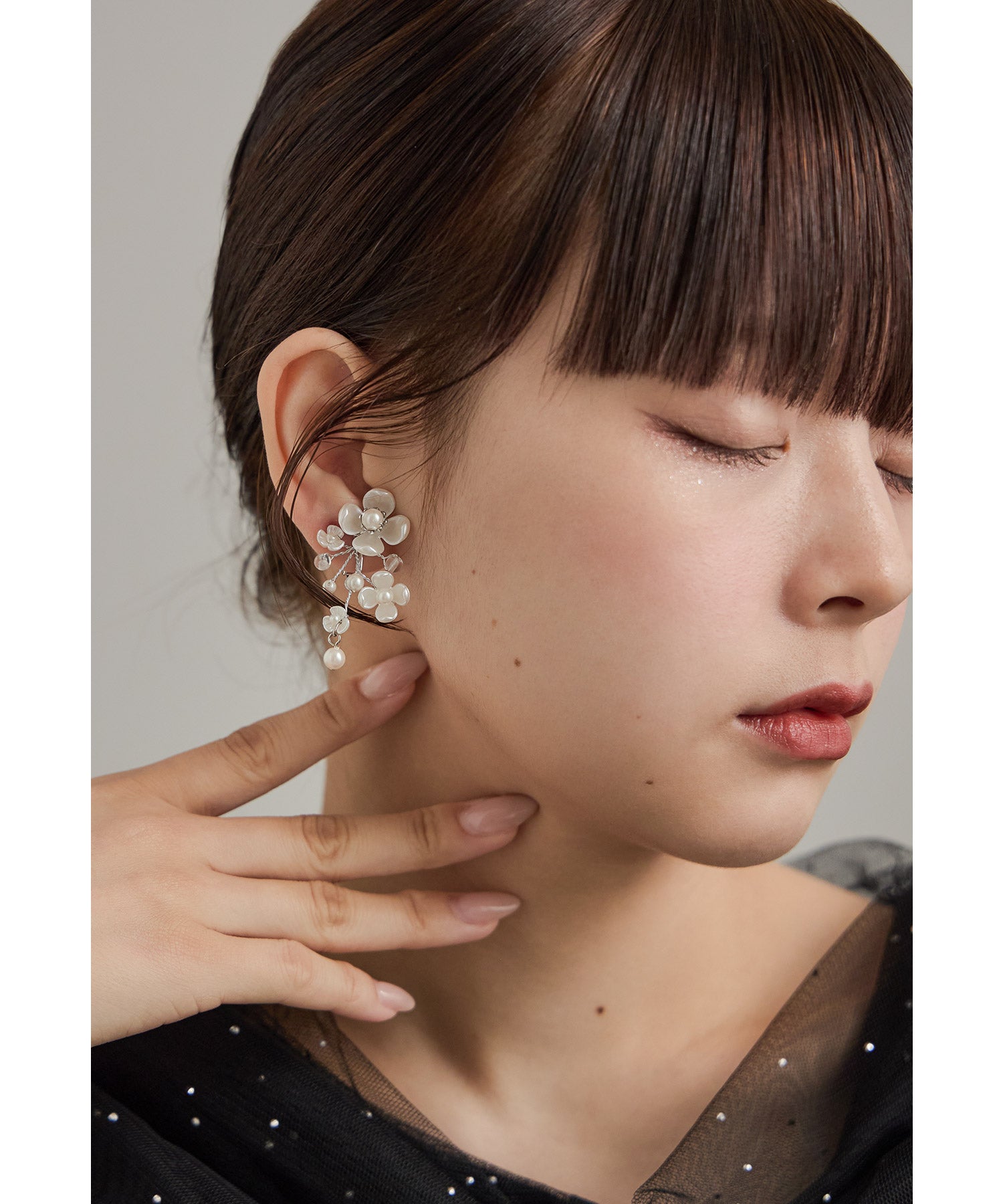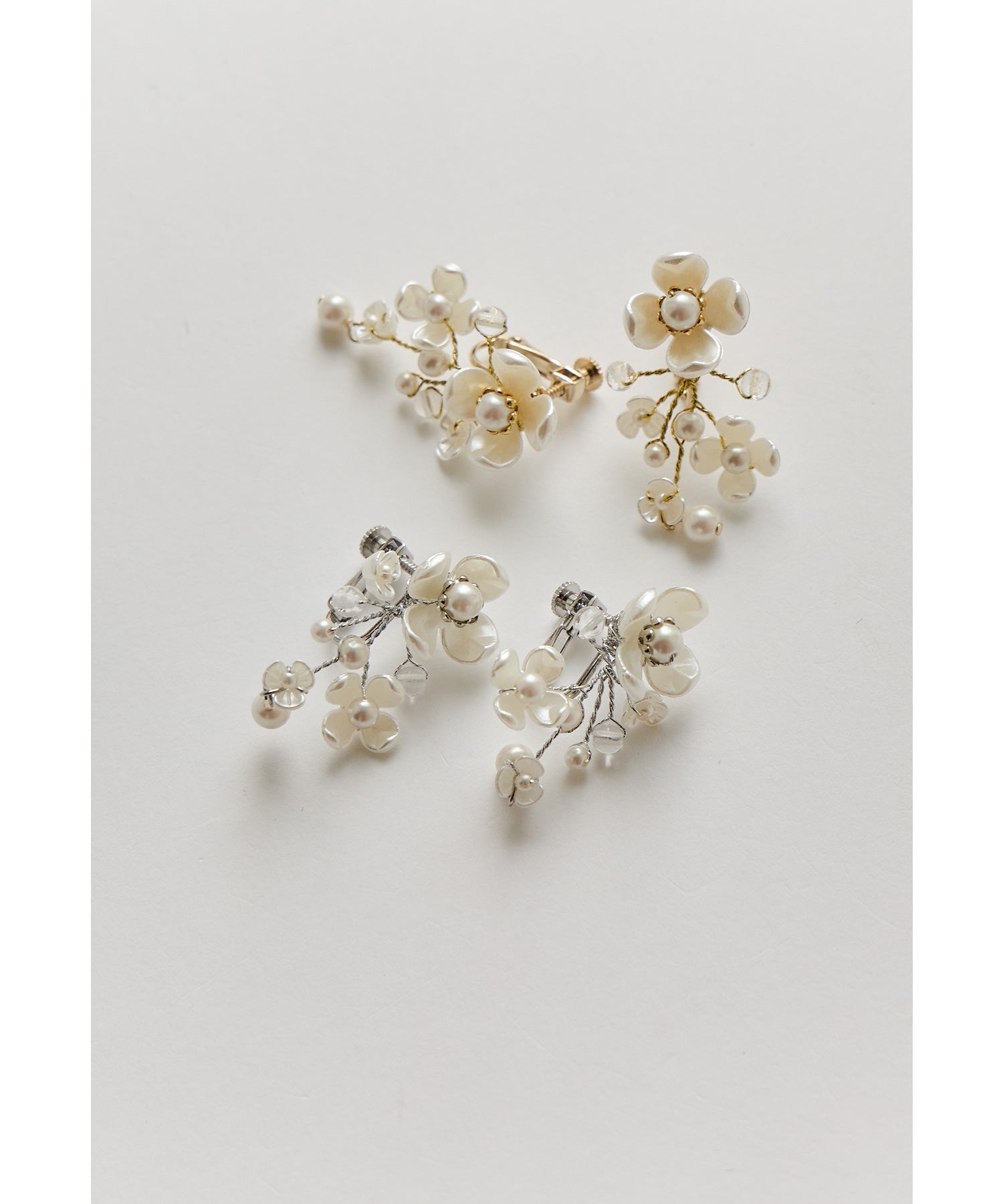 Zname パールフラワーイヤリング ゴールド シルバー 結婚式 二次会 同窓会 成人式 パーティー お呼ばれ オケージョン フォーマル