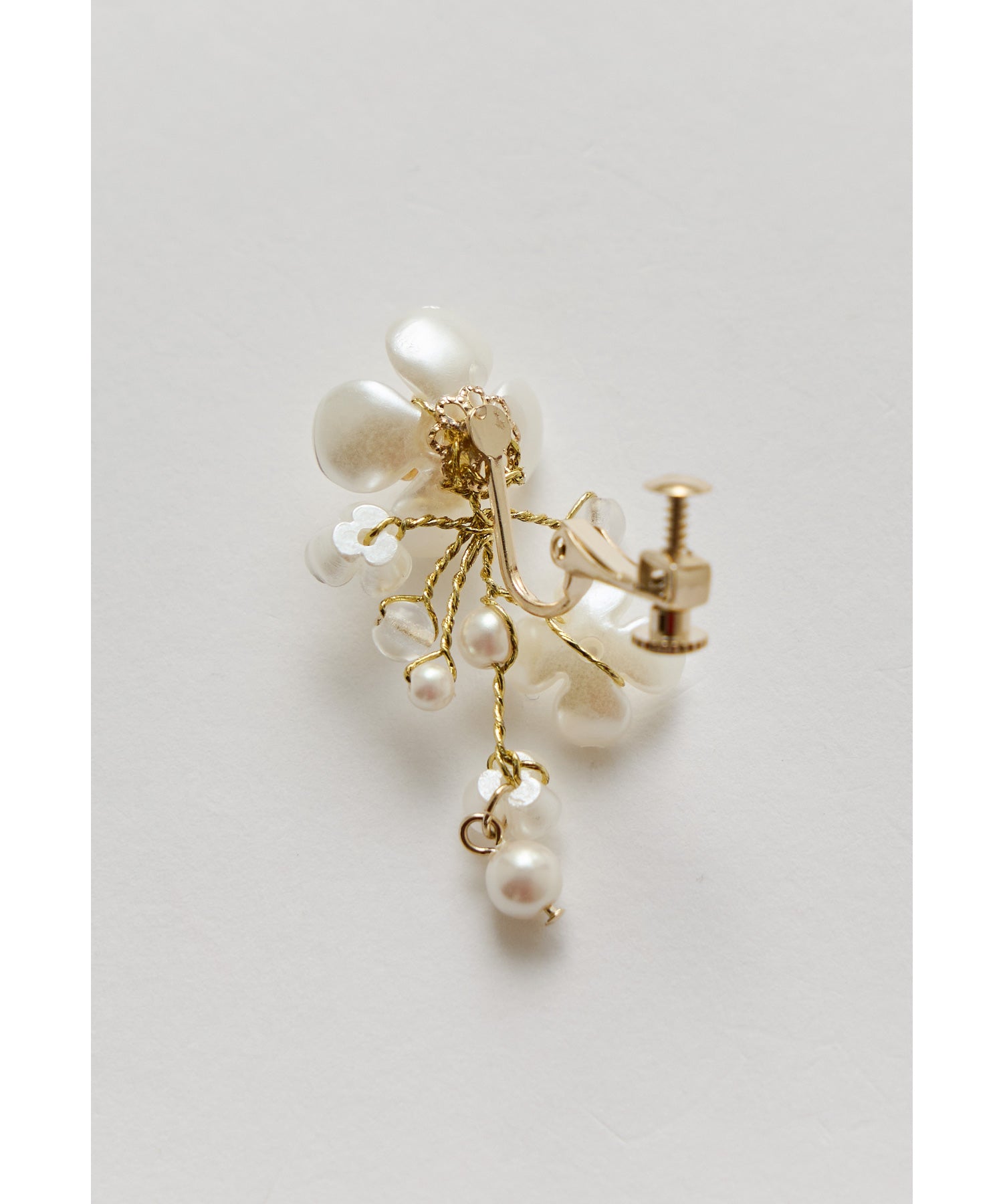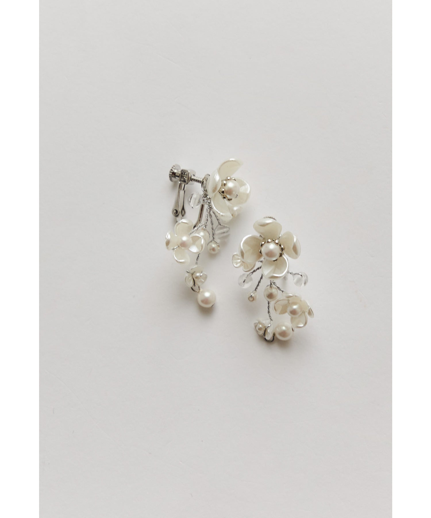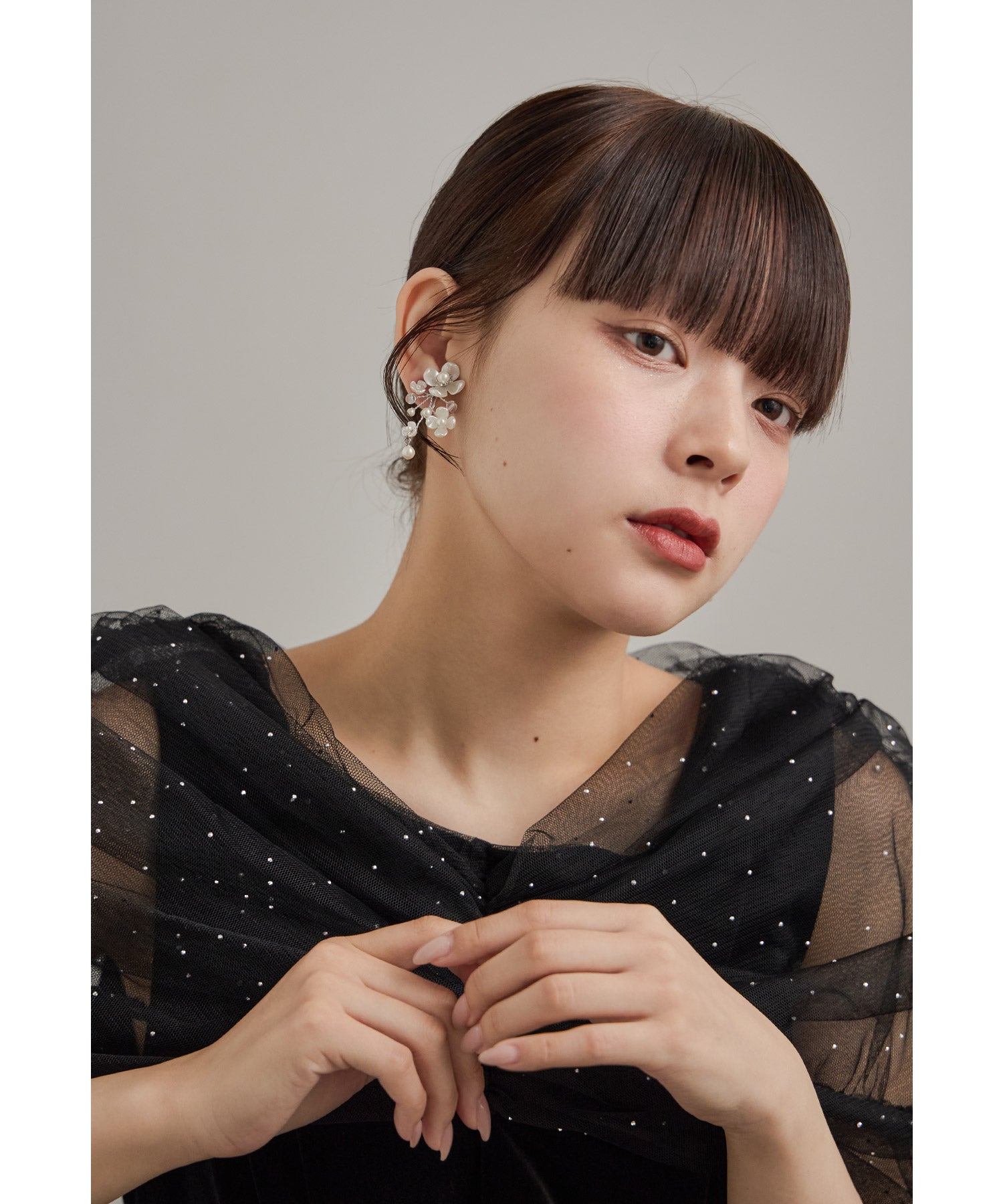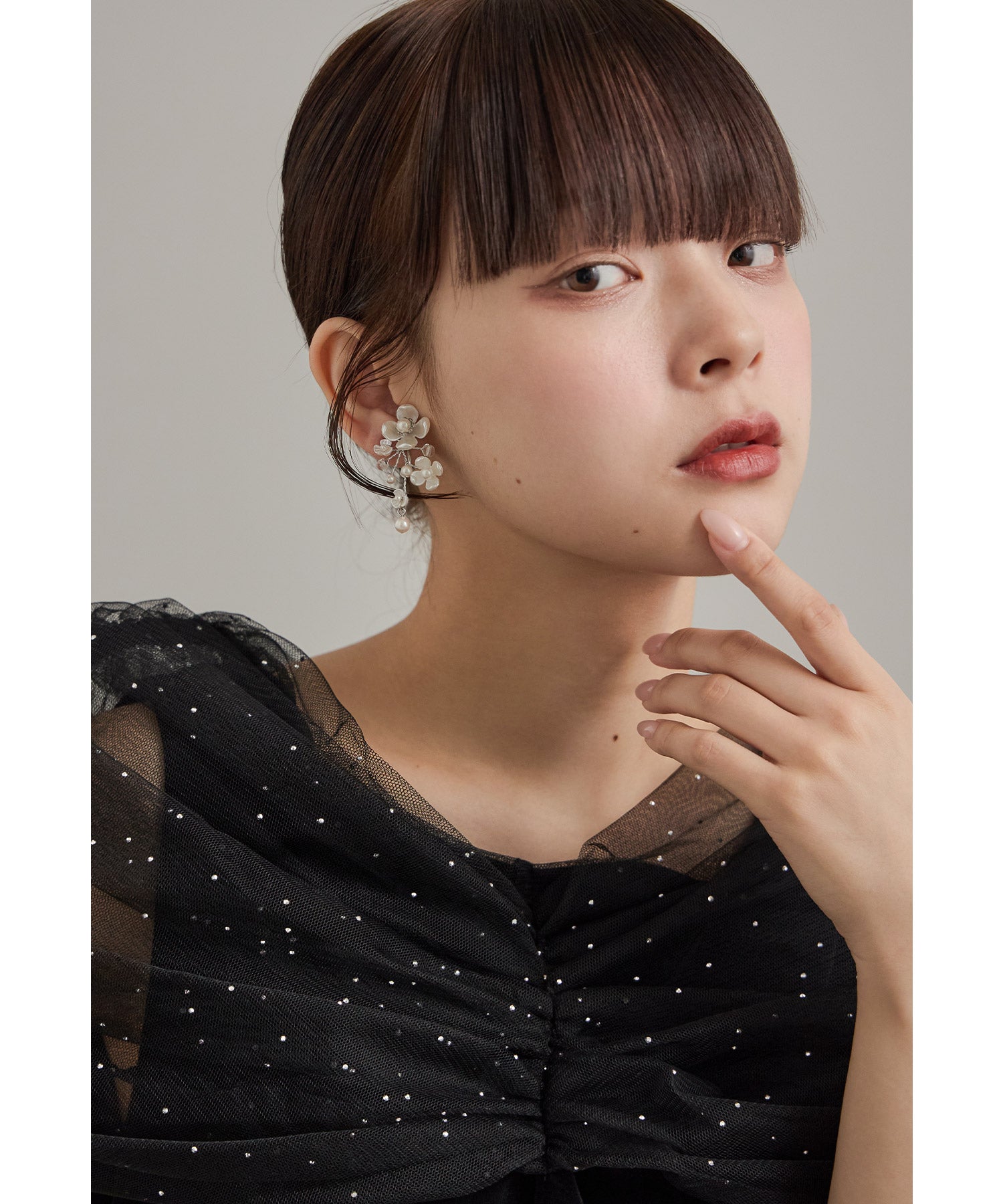 Zname パールフラワーイヤリング ゴールド シルバー 結婚式 二次会 同窓会 成人式 パーティー お呼ばれ オケージョン フォーマル