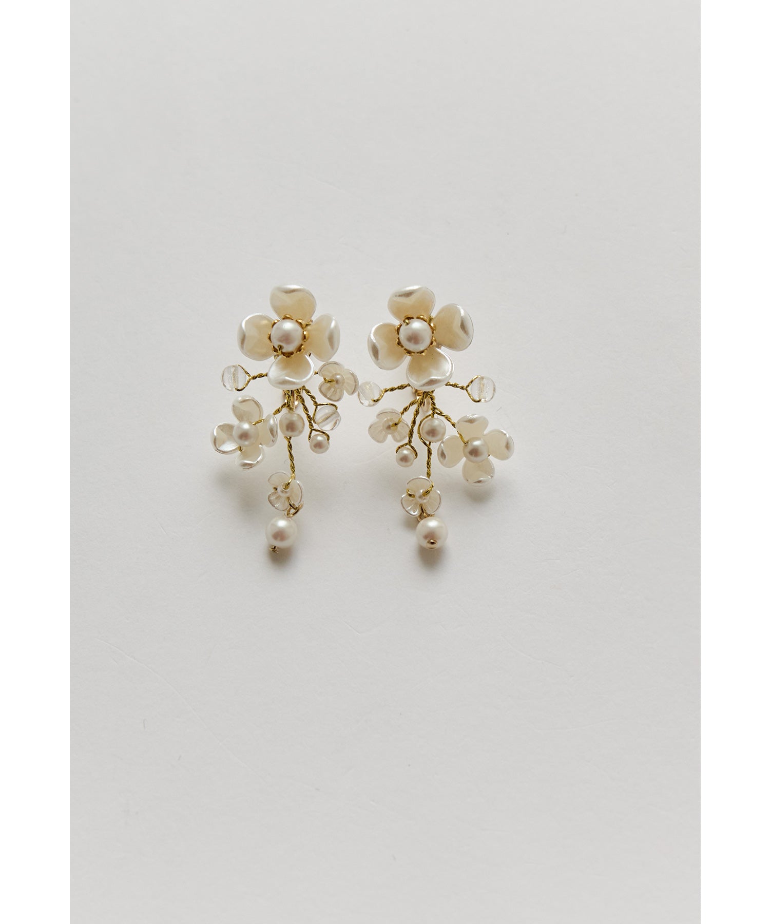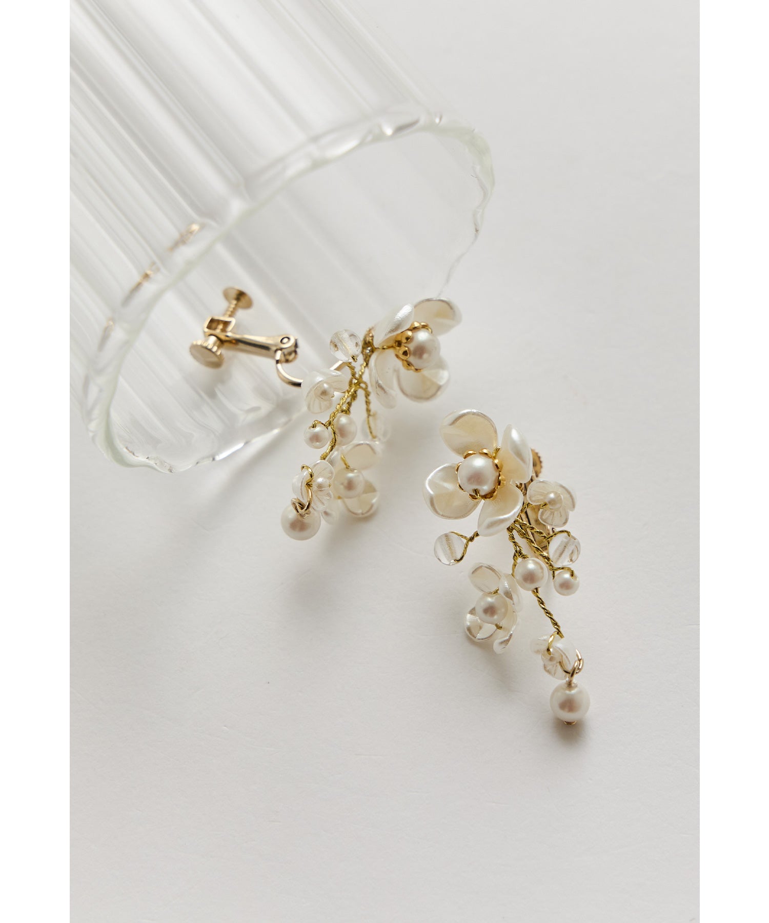 Rname パールフラワーイヤリング 両耳 アクセサリー 花 ビーズ ロング ゴールド シルバー 可愛い 上品 レディース フォーマル デイリー パーティー 結婚式 セレモニー 入学式 卒業式 成人式 謝恩会 食事会 二次会 お呼ばれ 披露宴 普段使い オケージョン プレゼント ギフト
