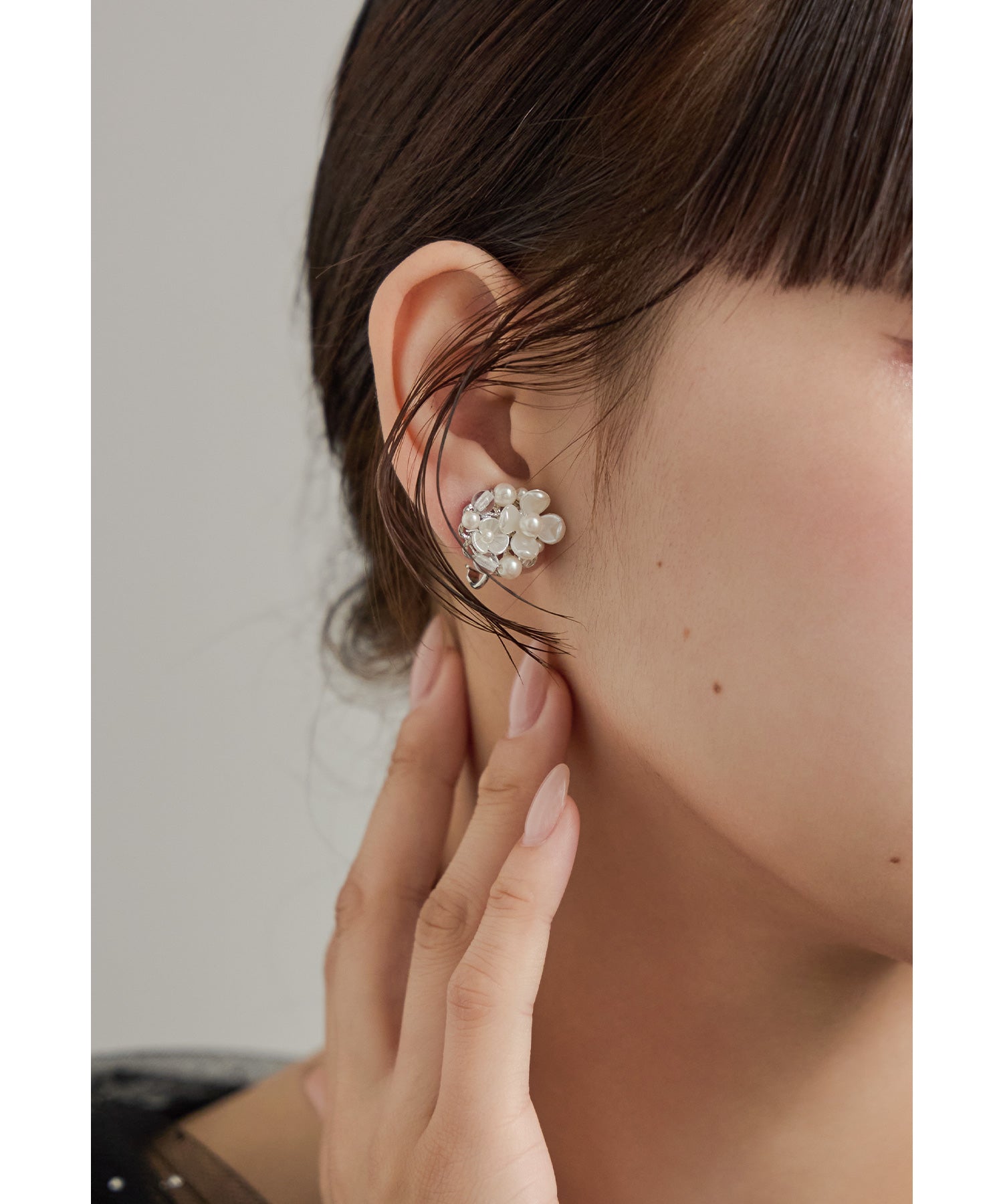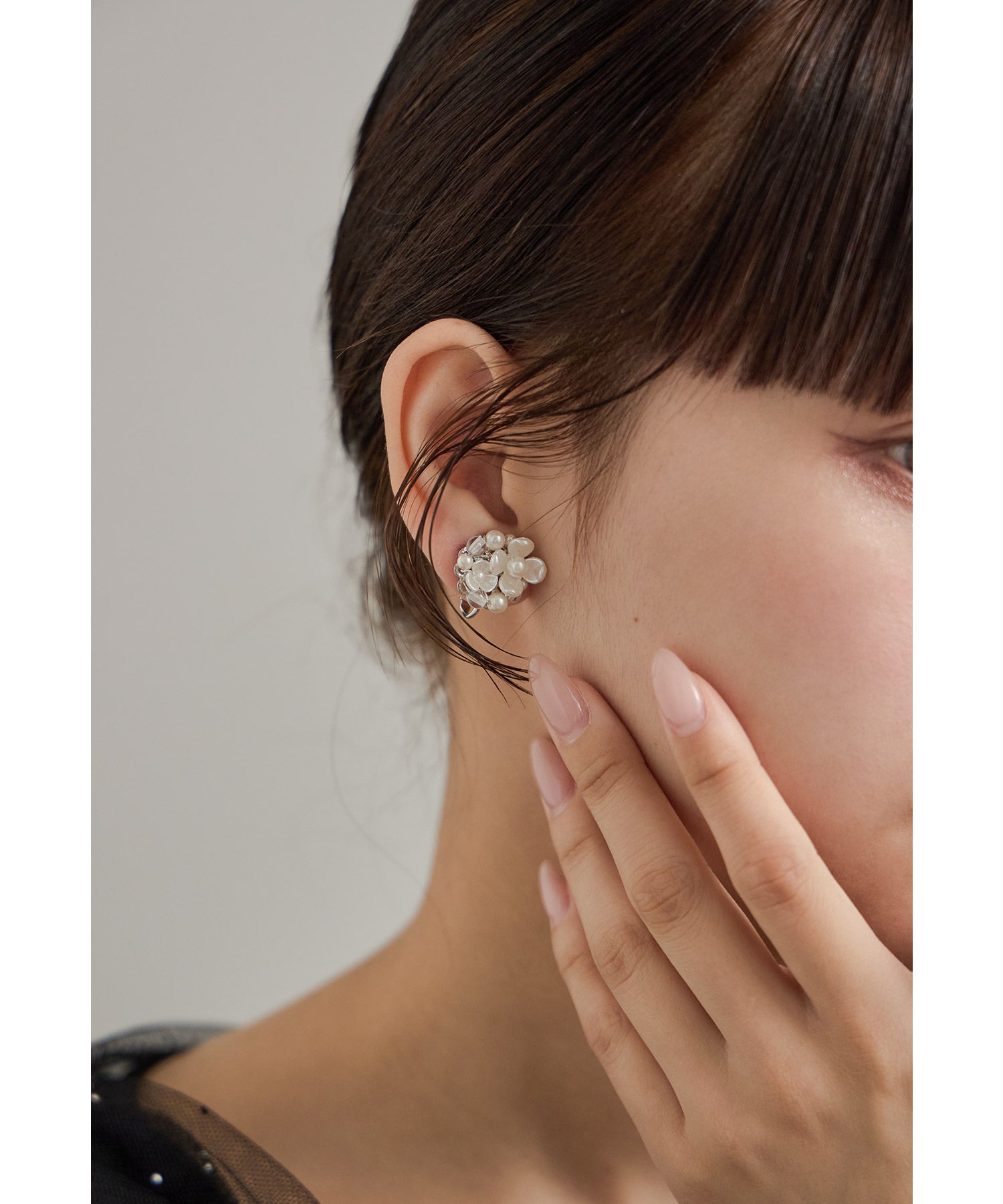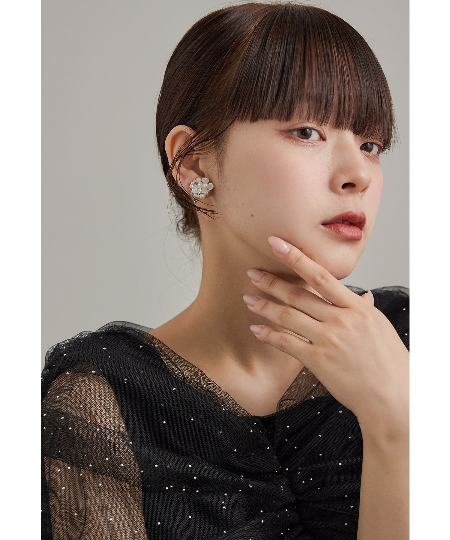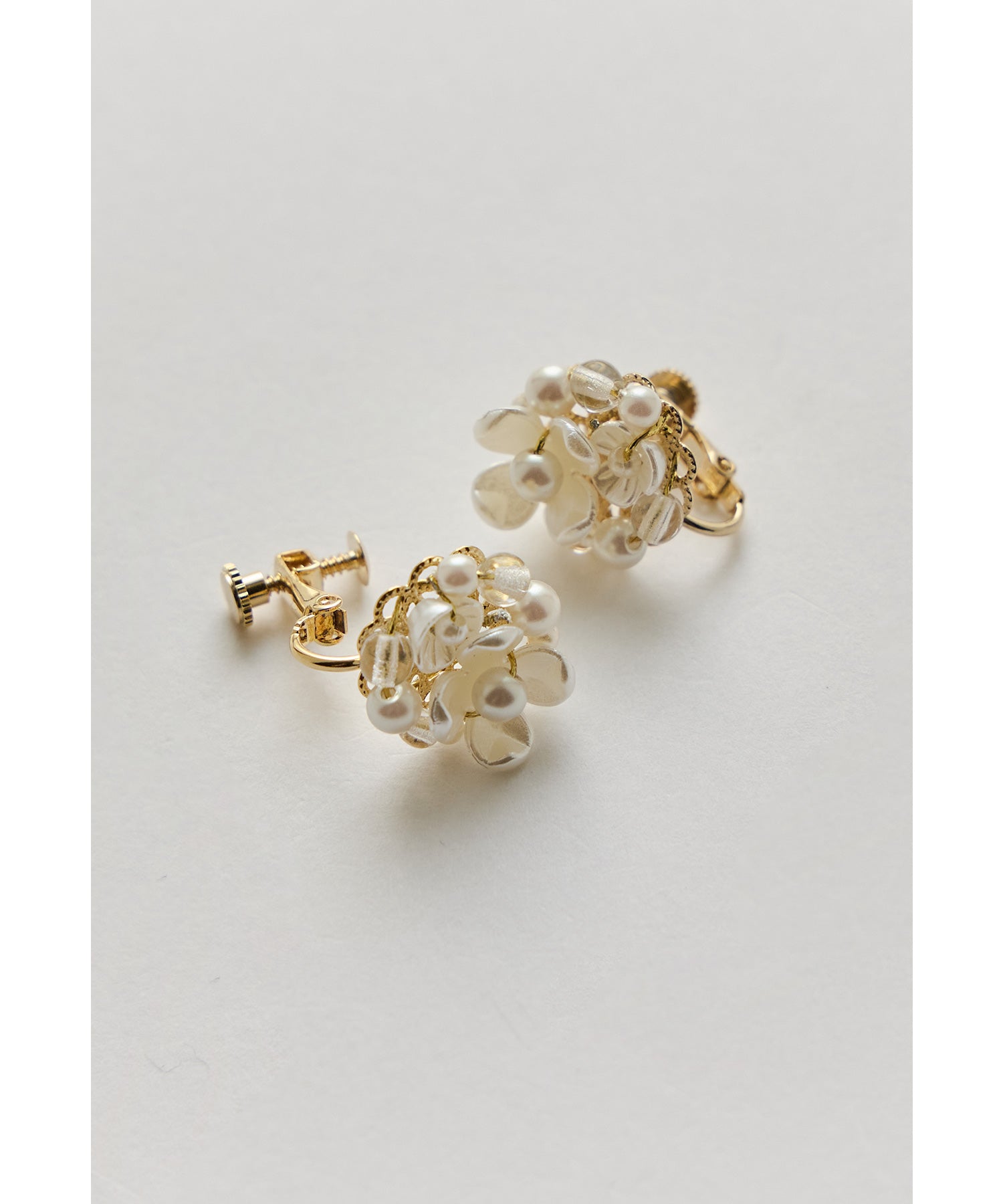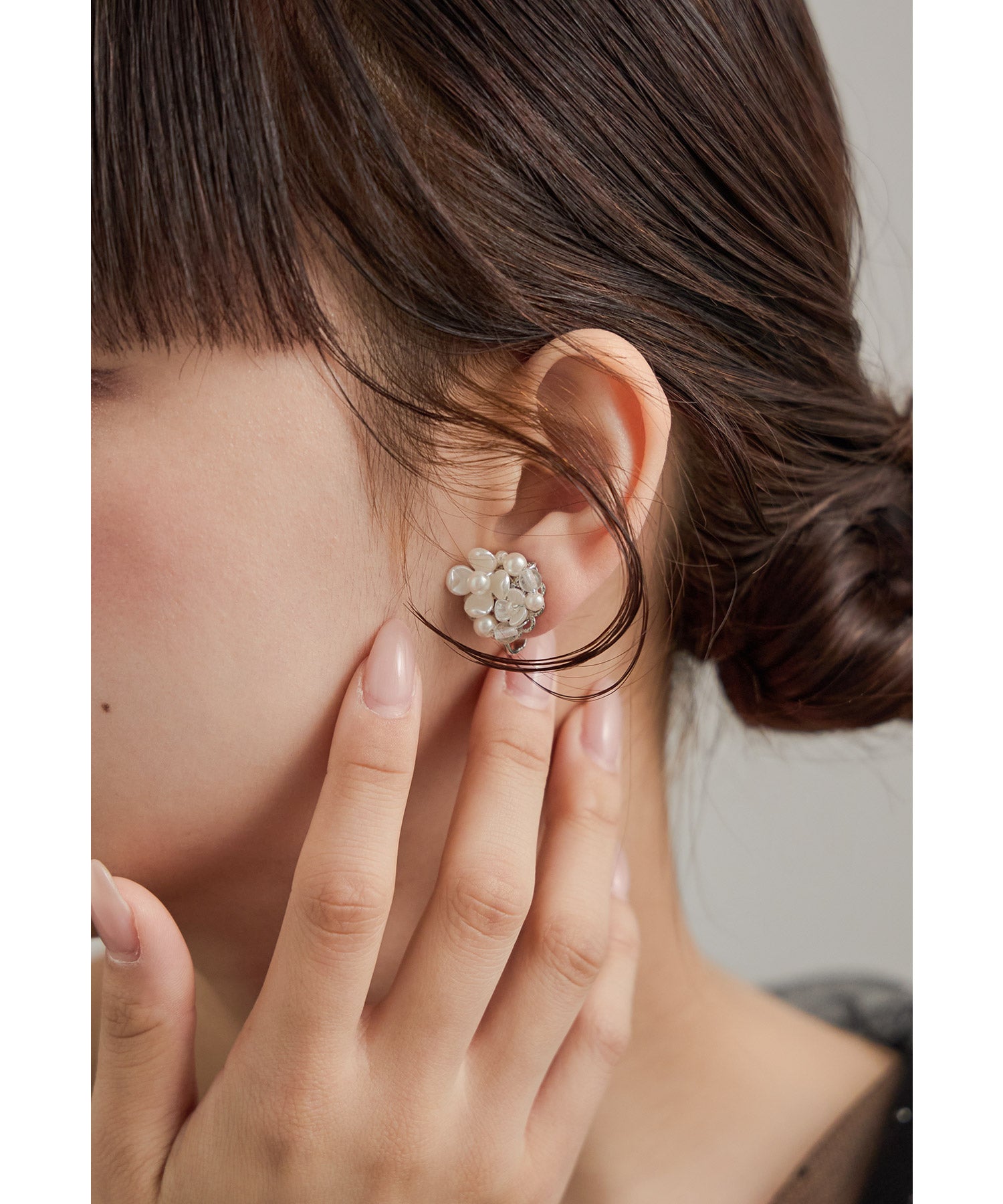 可憐で小ぶりなパールフラワーモチーフのイヤリング。