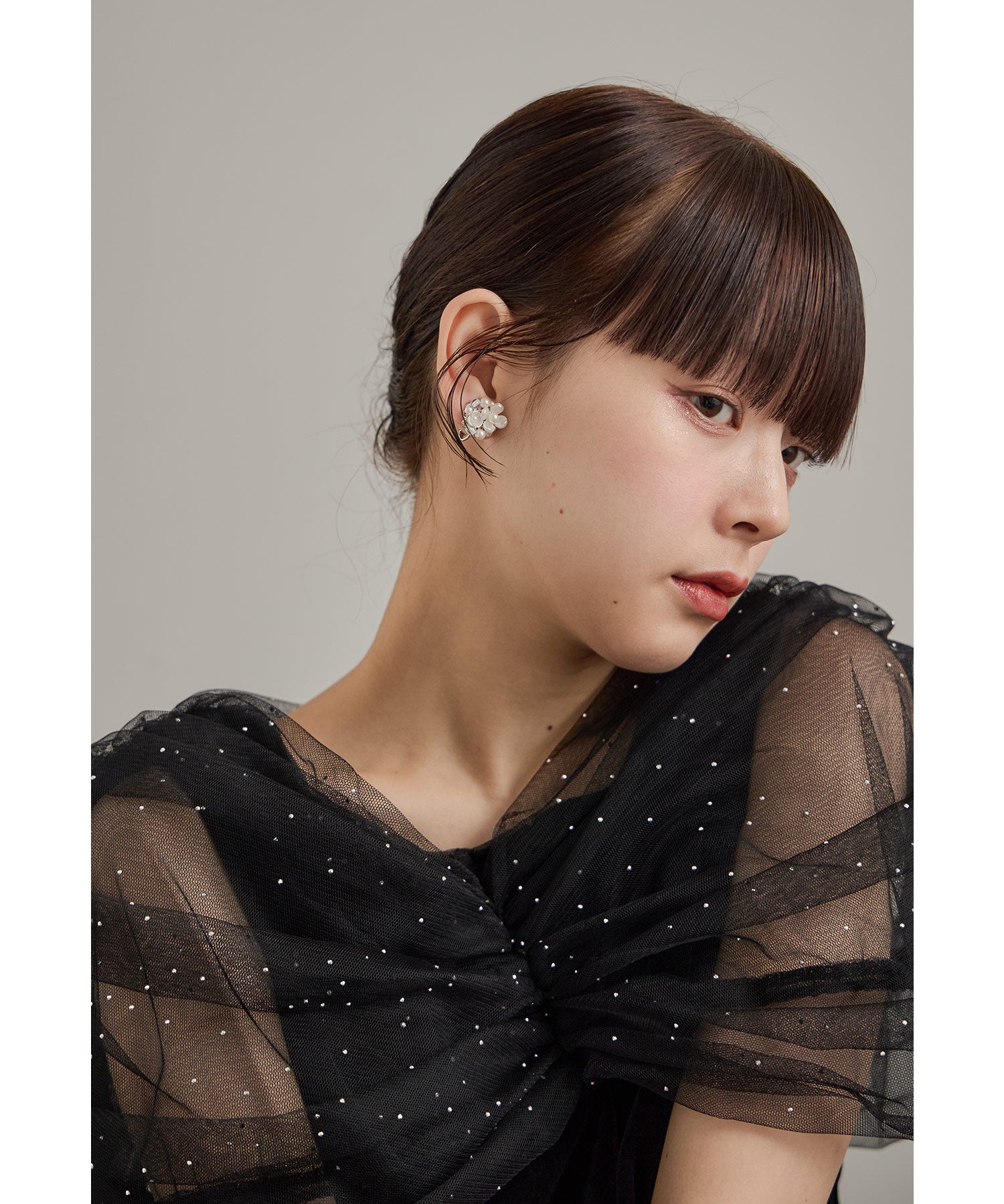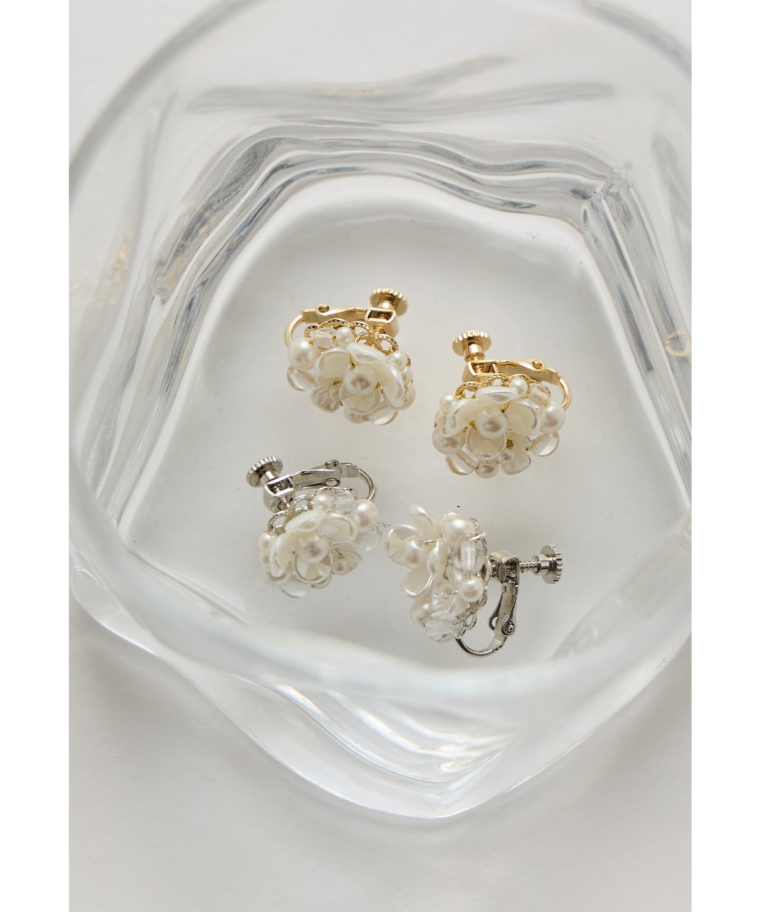 Zname パールフラワーイヤリング ゴールド シルバー 結婚式 二次会 同窓会 成人式 パーティー お呼ばれ オケージョン フォーマル