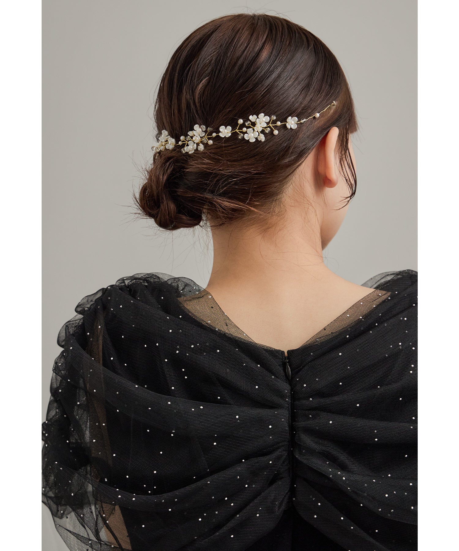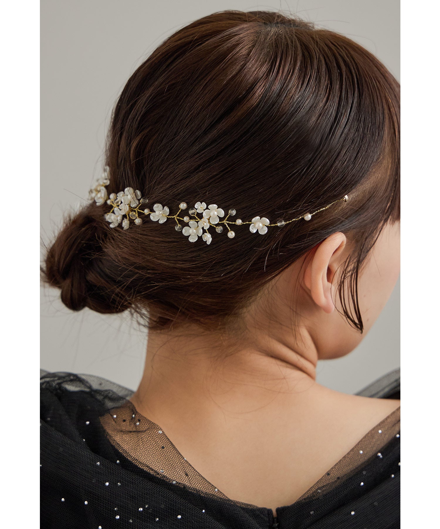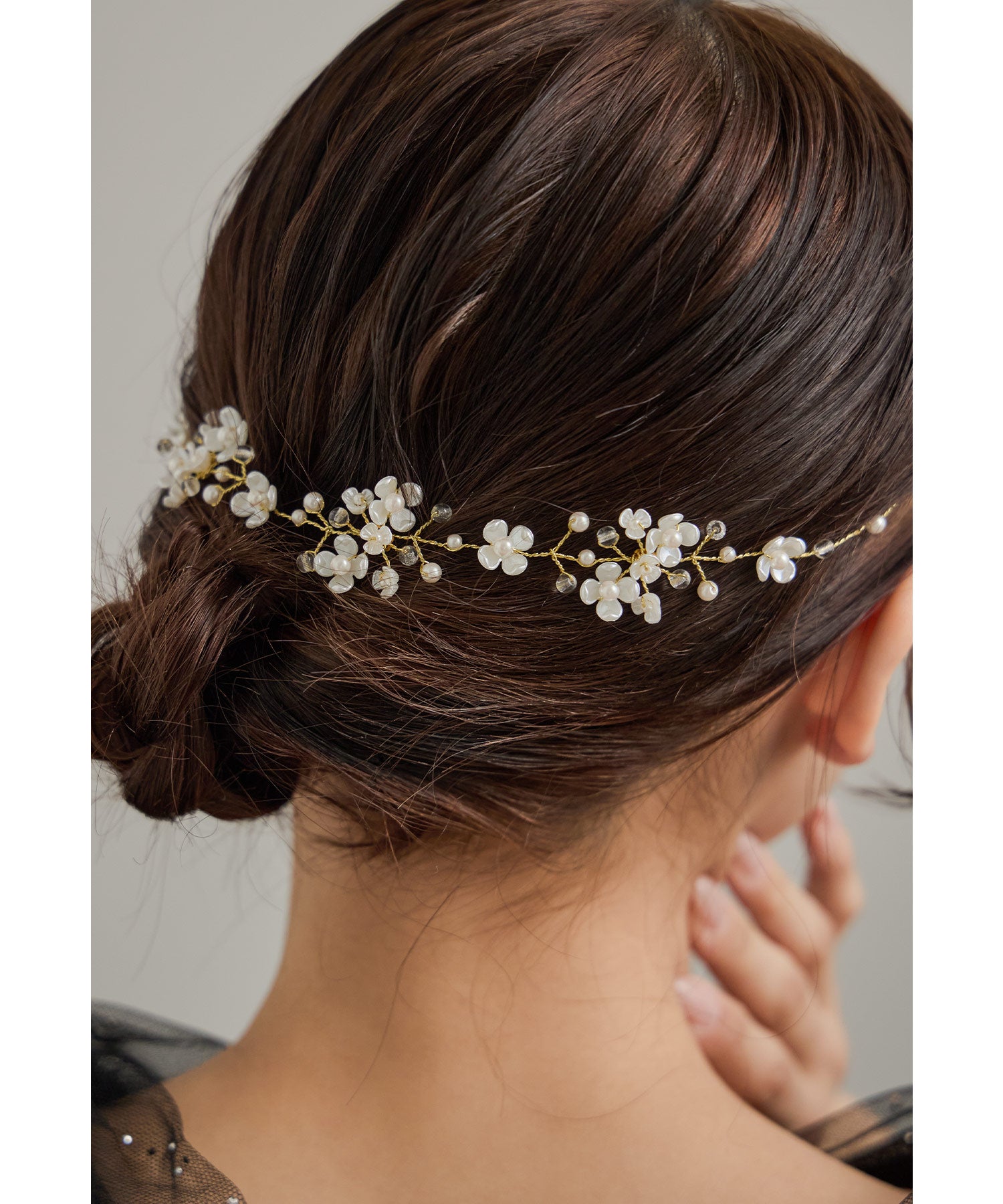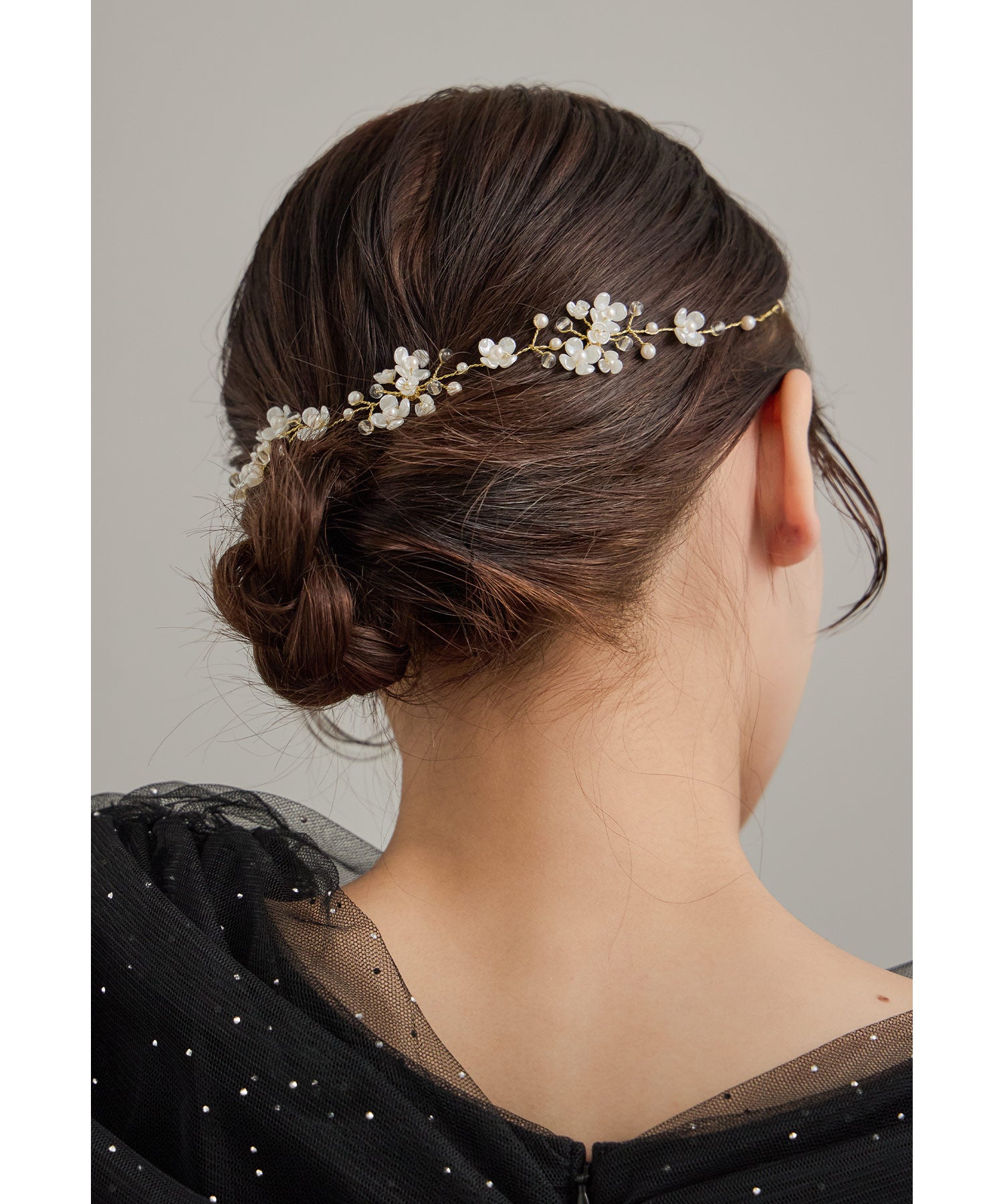 可憐なパールフラワーモチーフが可愛いヘッドドレスアクセサリー。