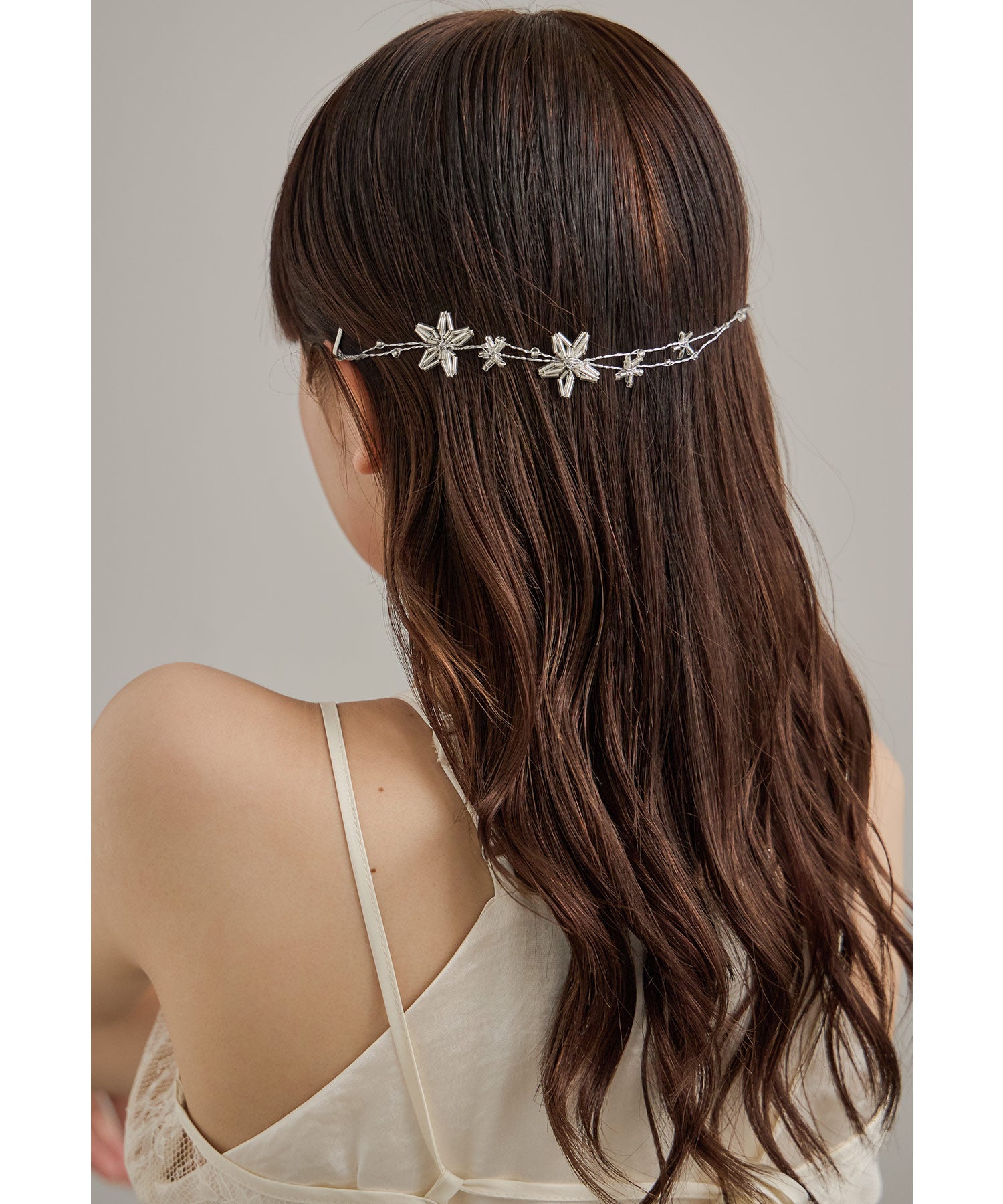 髪に沿わせやすいワイヤーデザインなのでアップヘアーからダウンスタイルまで。