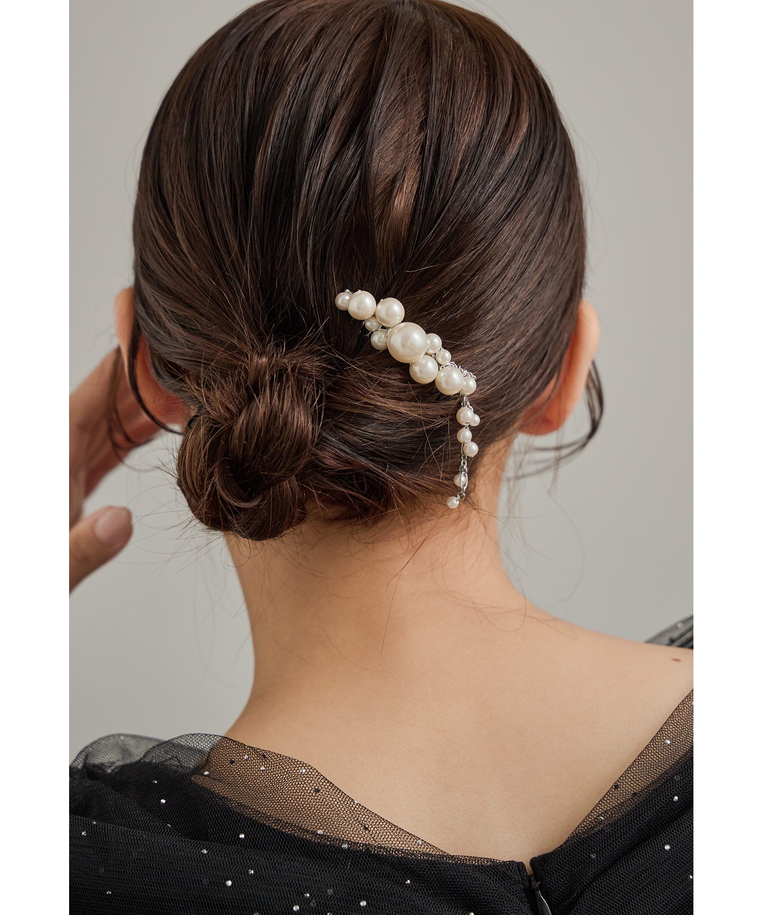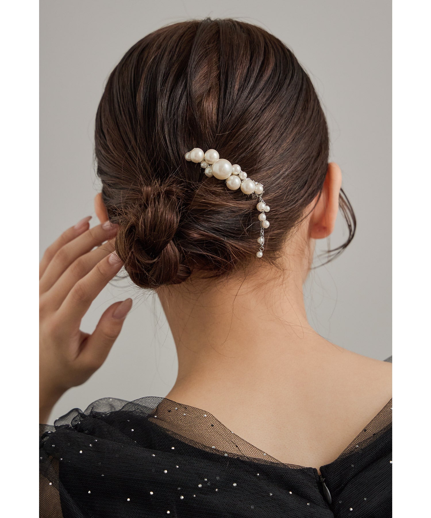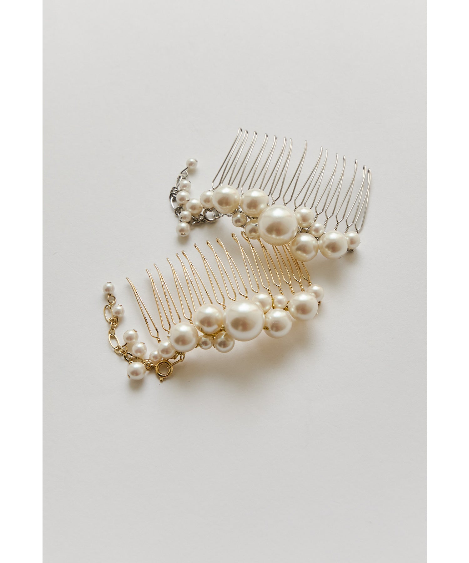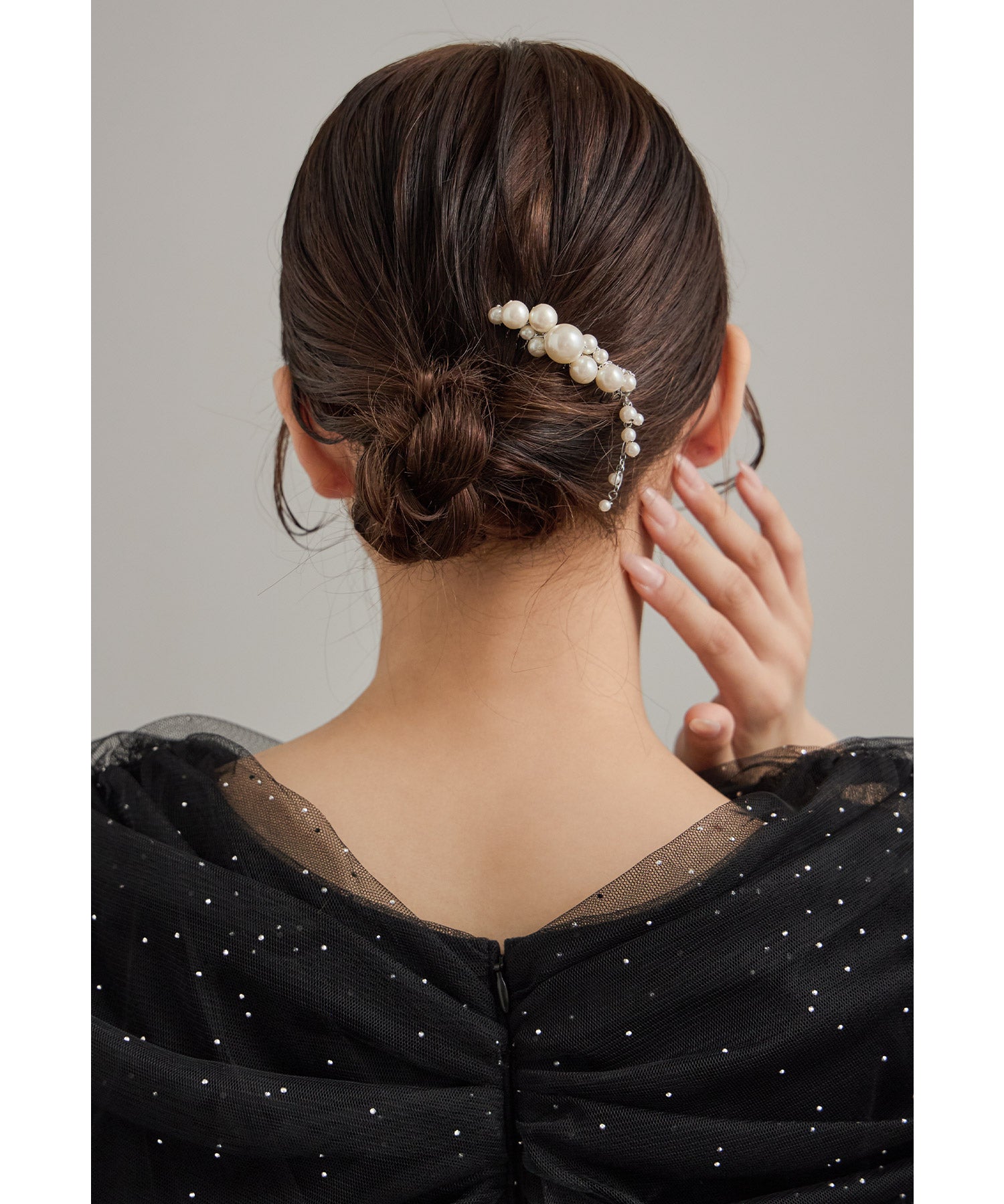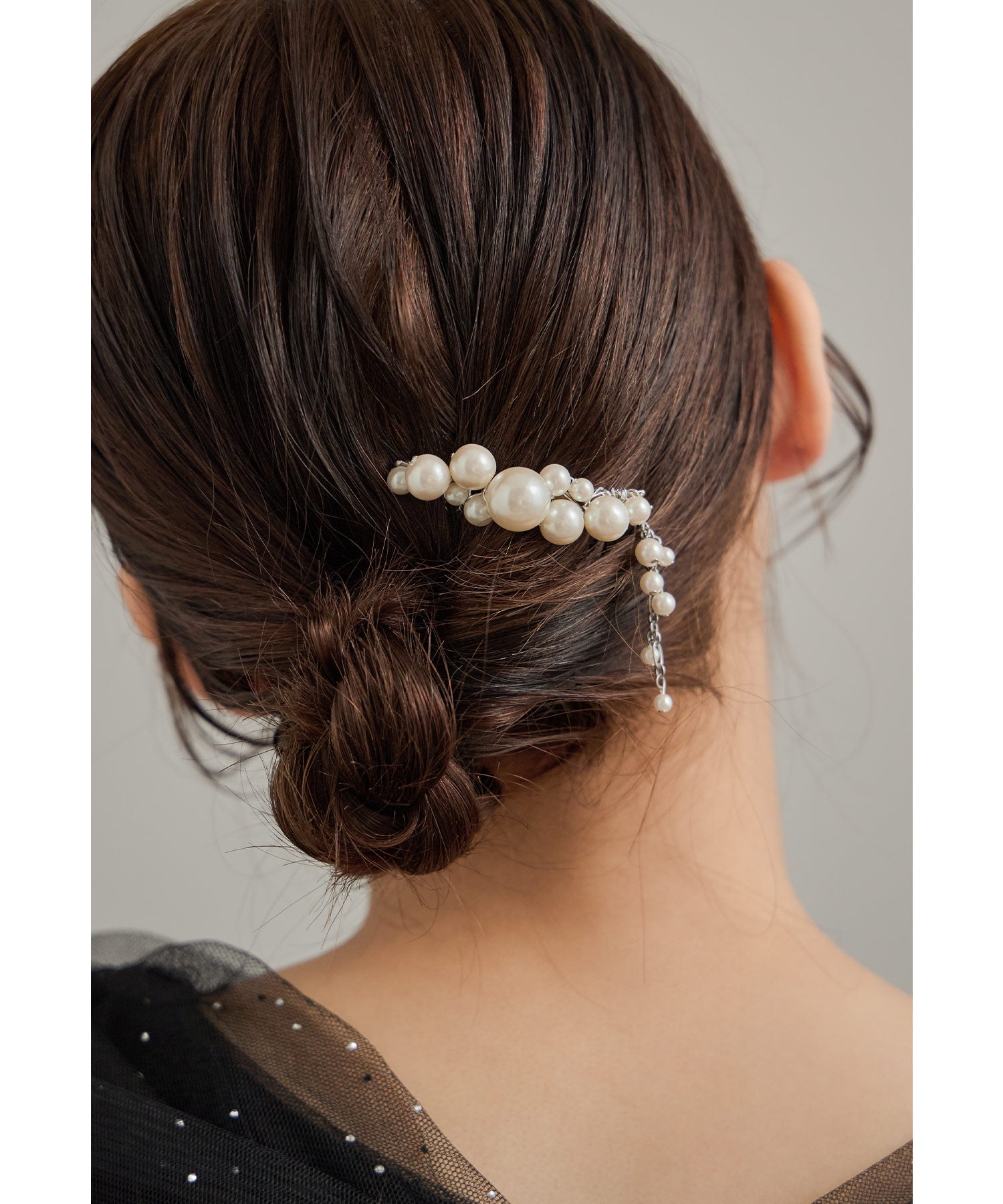 Rname ボリュームパールチャームコーム ヘアアクセサリー ヘアピン ヘッドドレス シルバー ゴールド パーティー 結婚式 披露宴 二次会 成人式 同窓会 卒業式 入学式 お呼ばれ 女子会 セレモニー オケージョン ヘアアレンジ ウェディング 浴衣 和装 着物 袴 髪飾り ブライダル