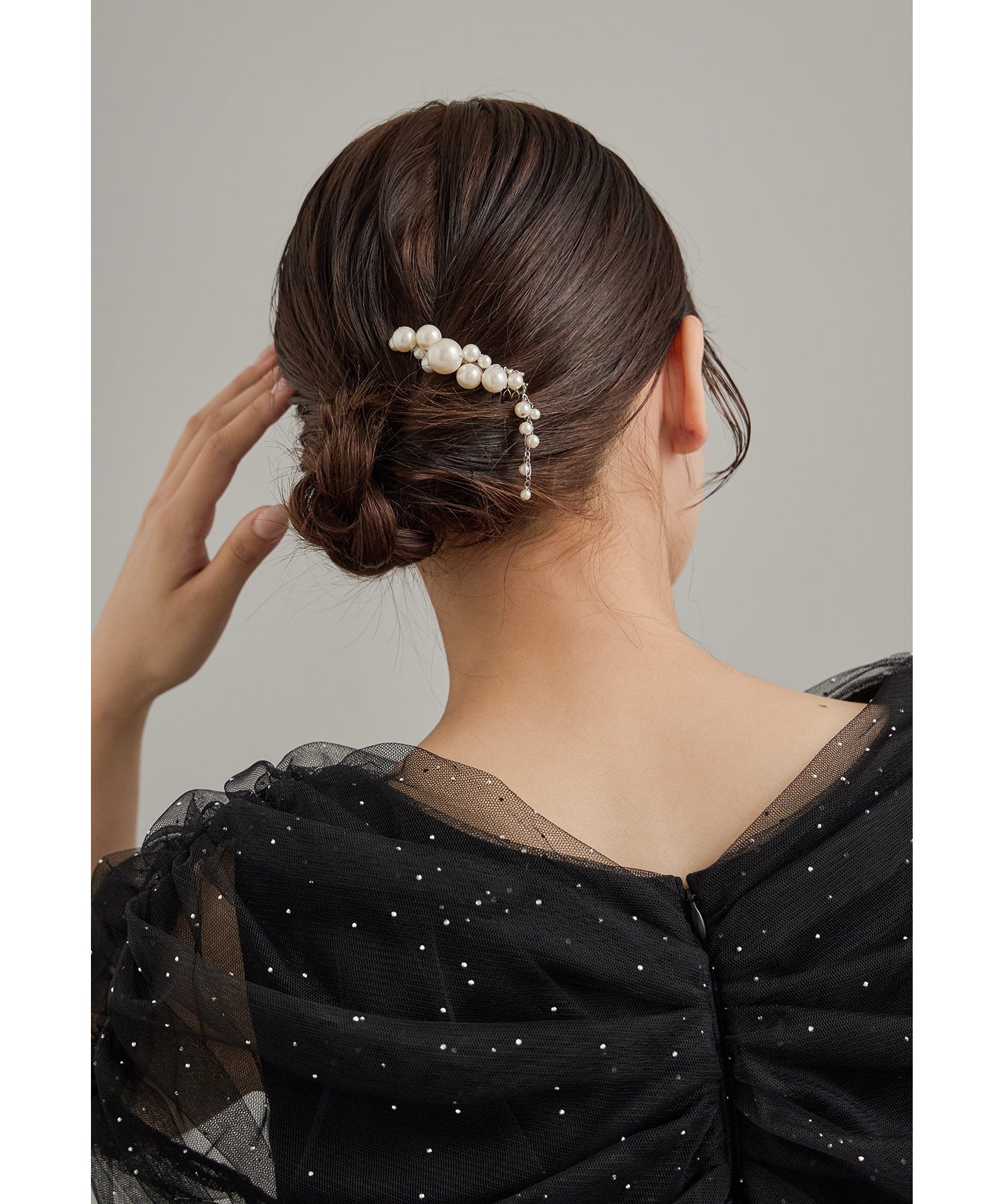 髪に差し込むだけなので、アップヘアーからダウンスタイルまで。