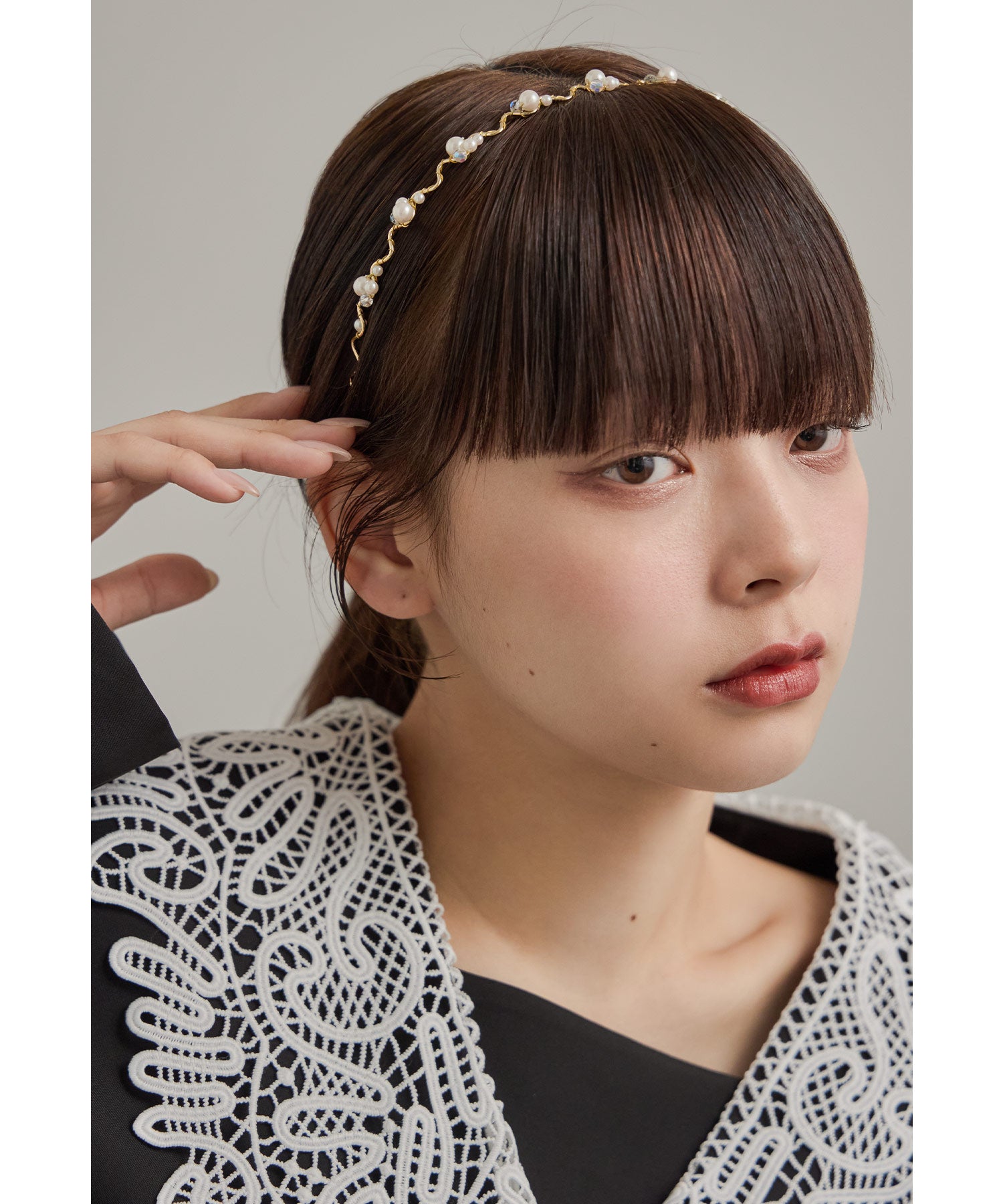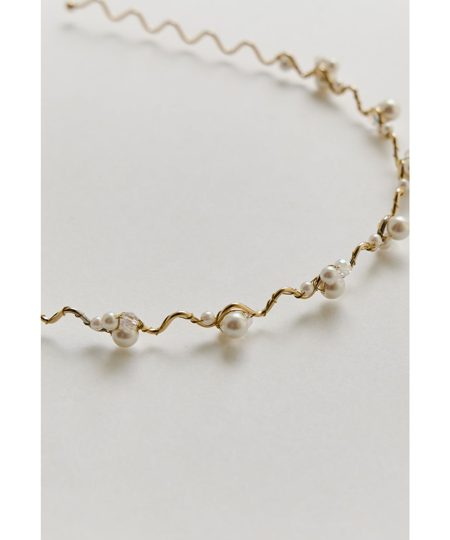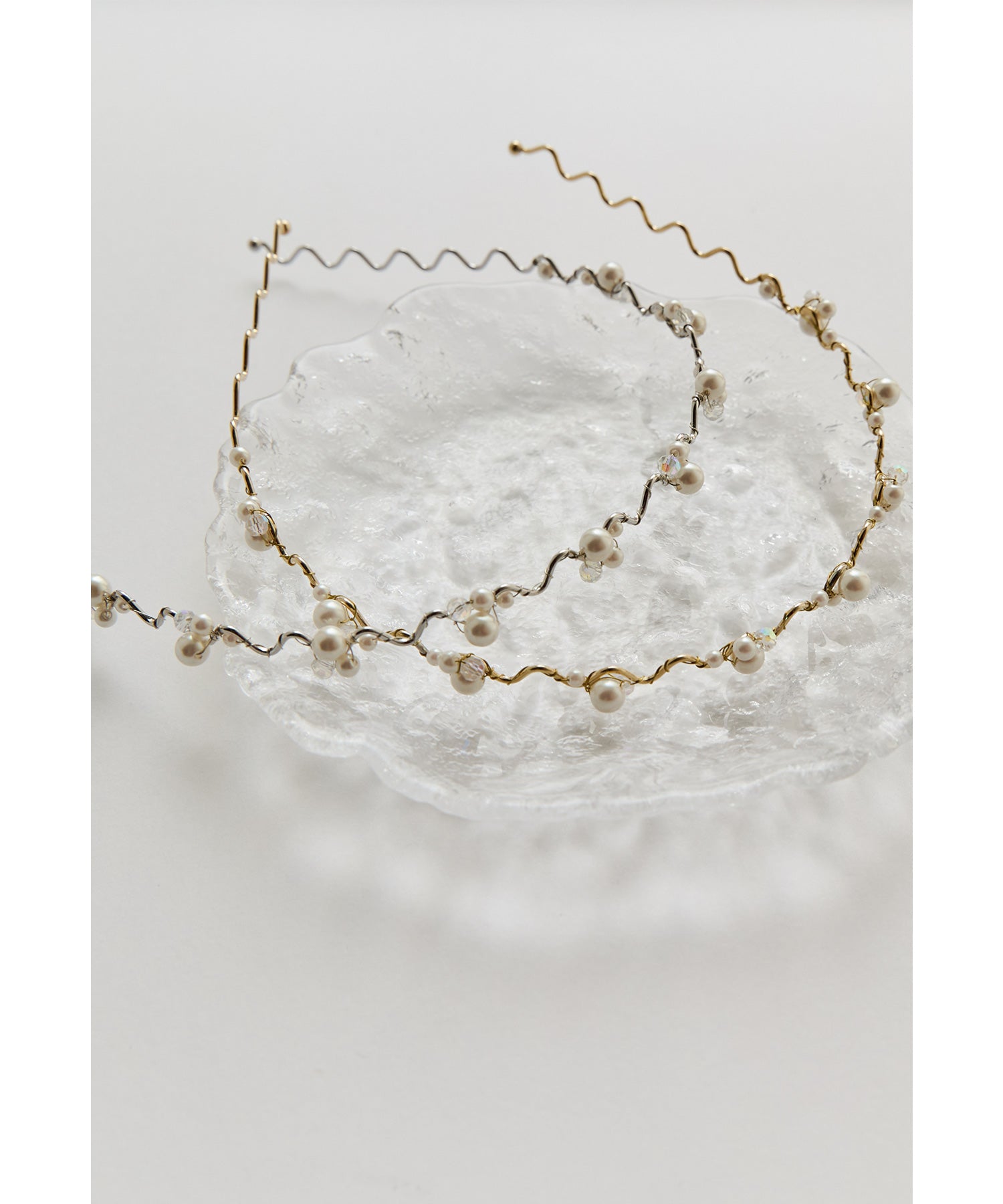 波打ったフォルムに、パールとビーズを飾ったカチューシャ。