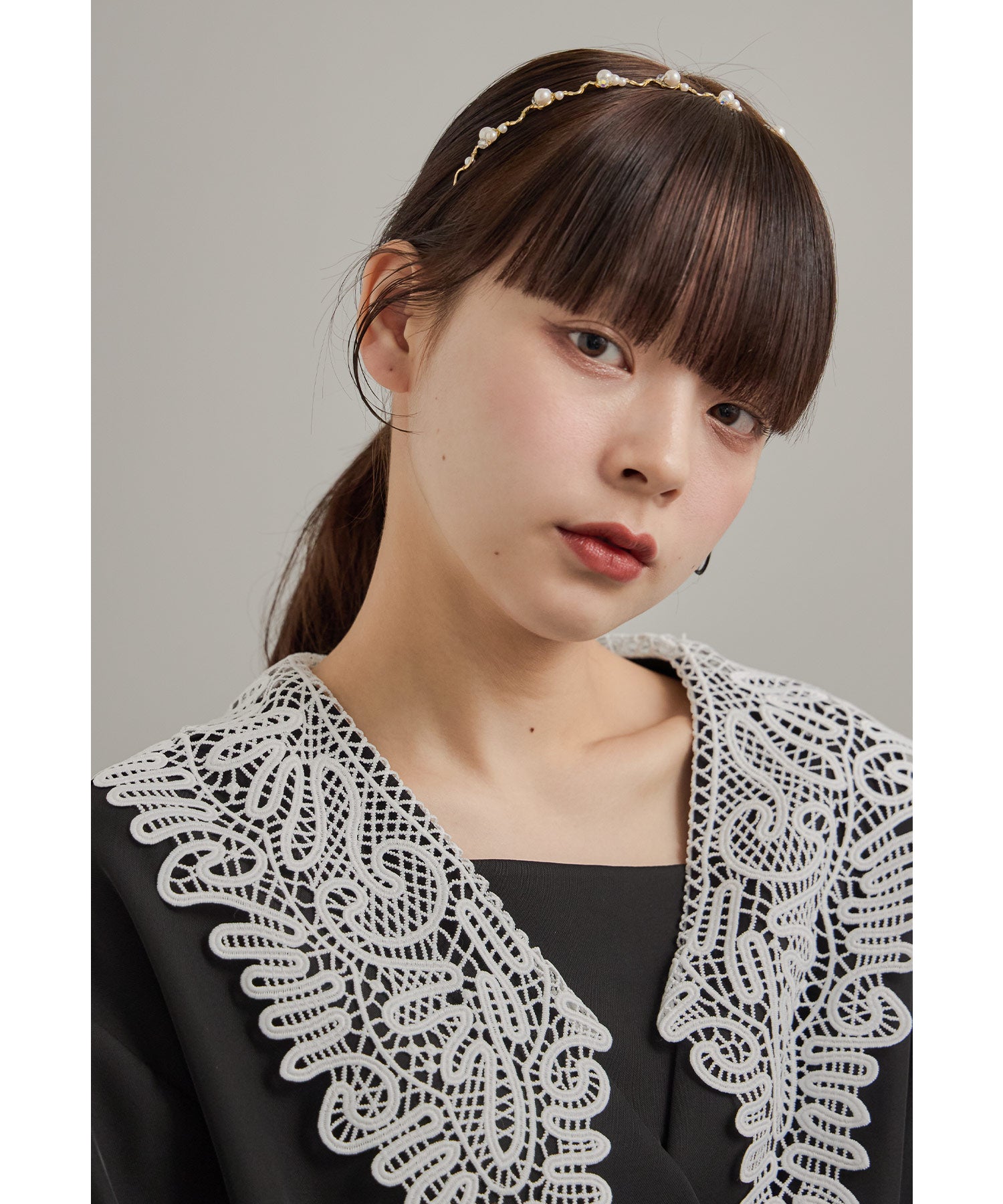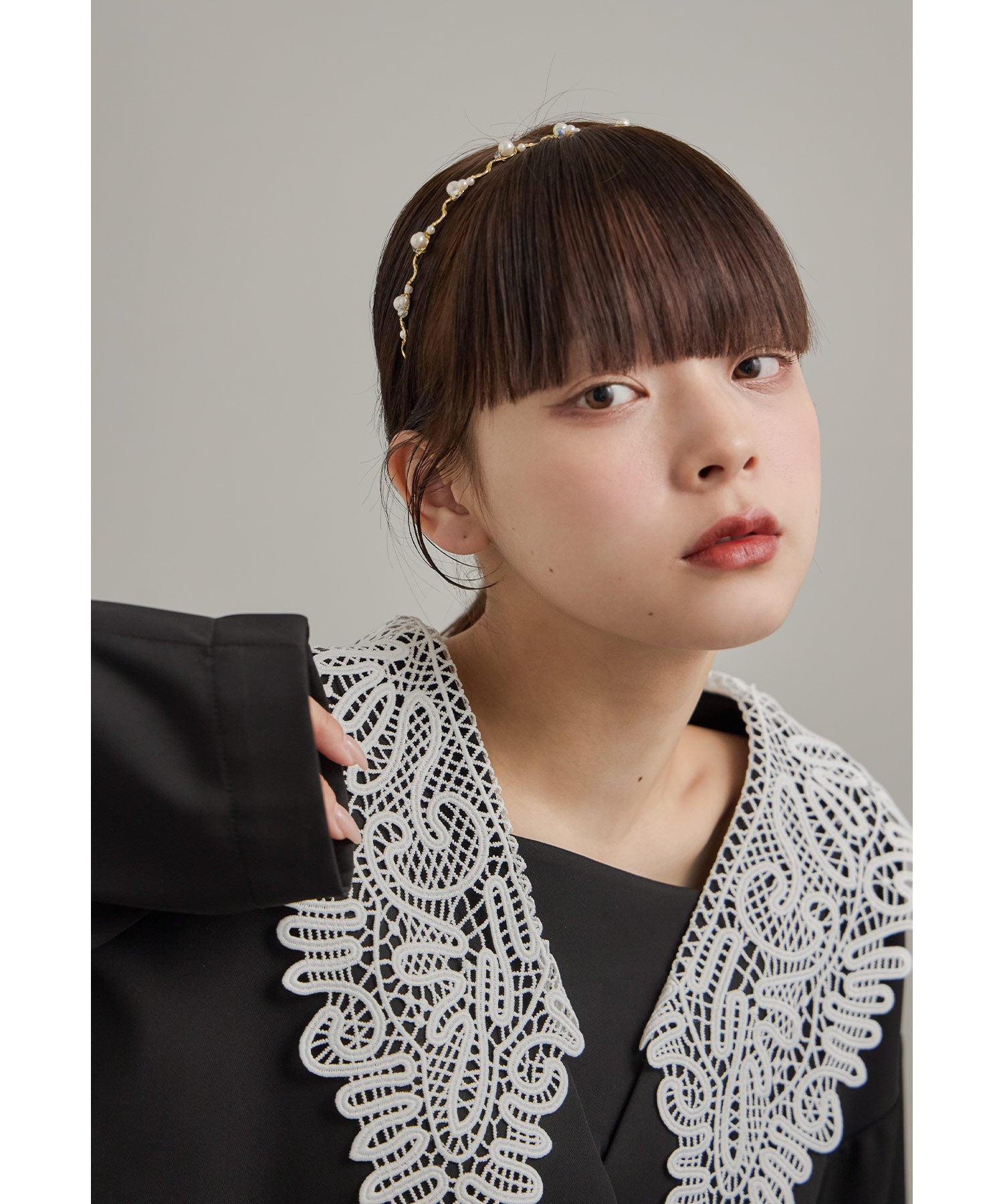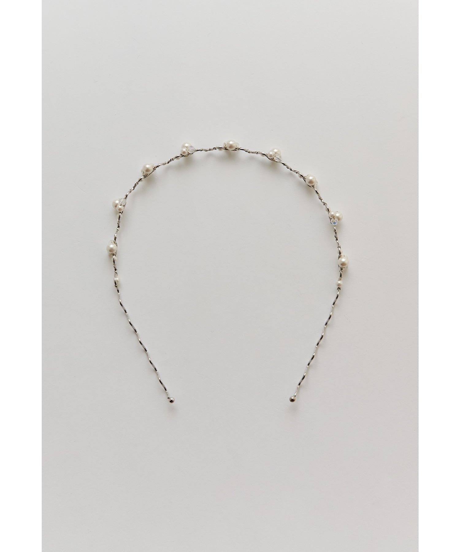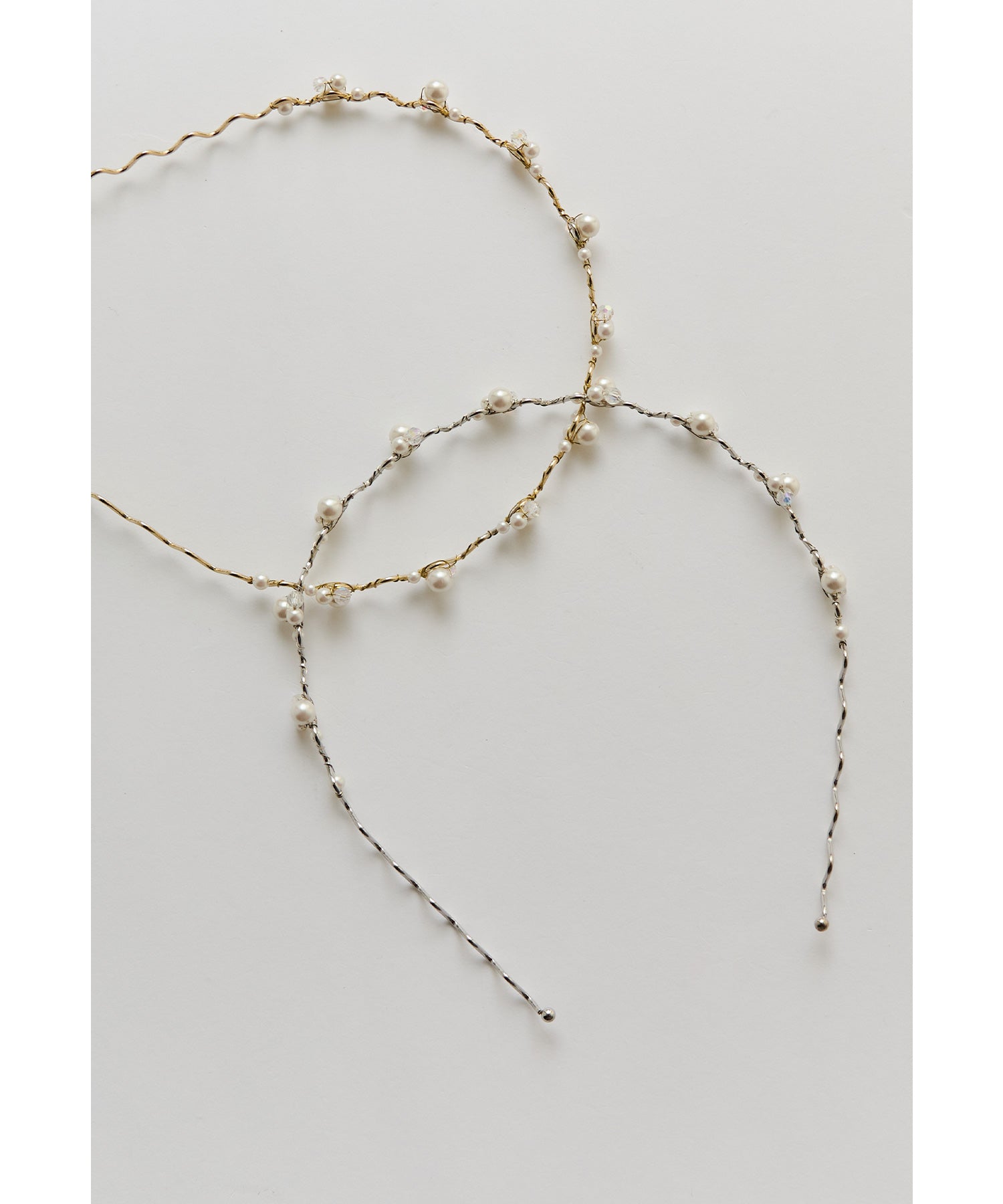 波打ったフォルムに、パールとビーズを飾ったカチューシャ。