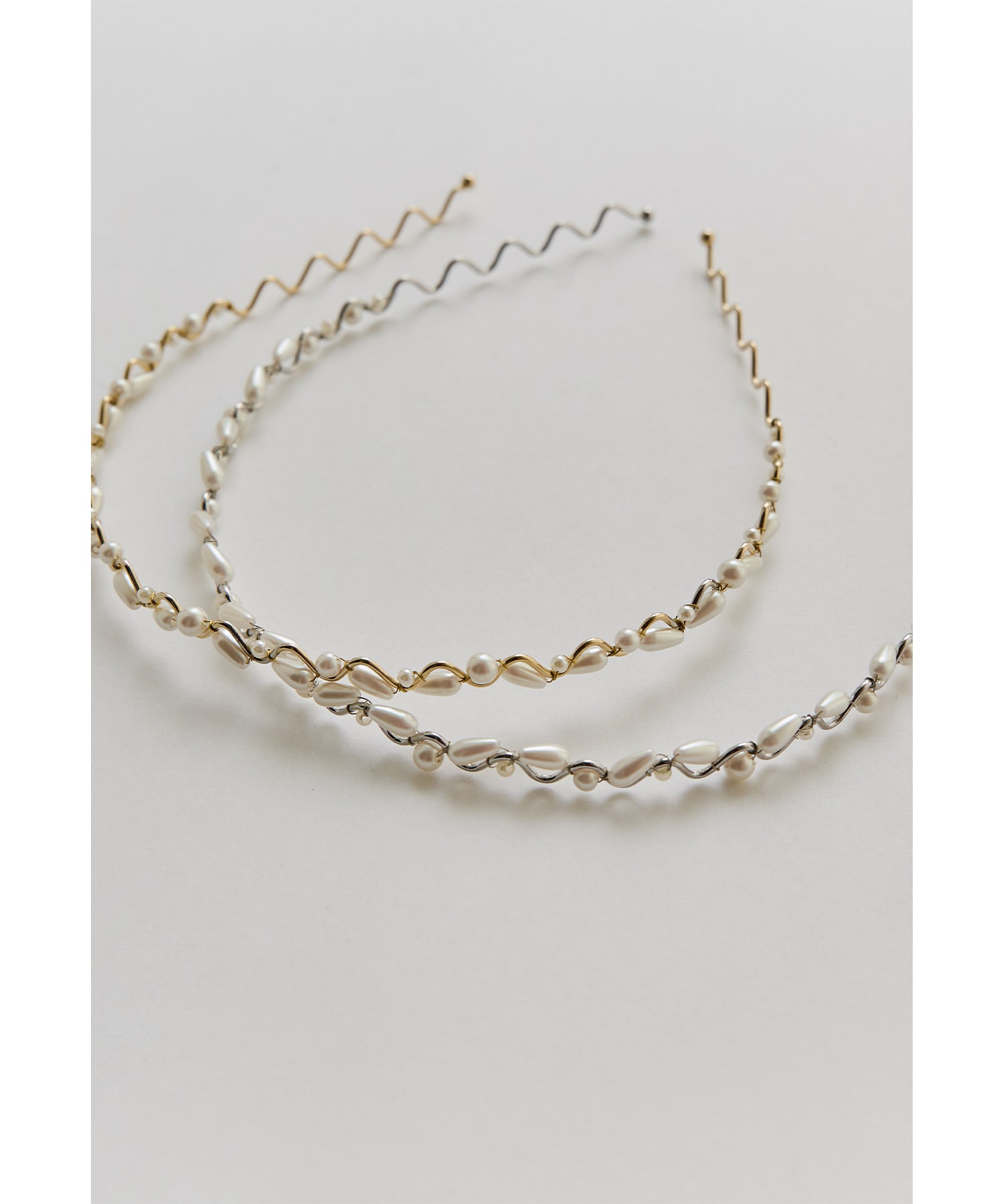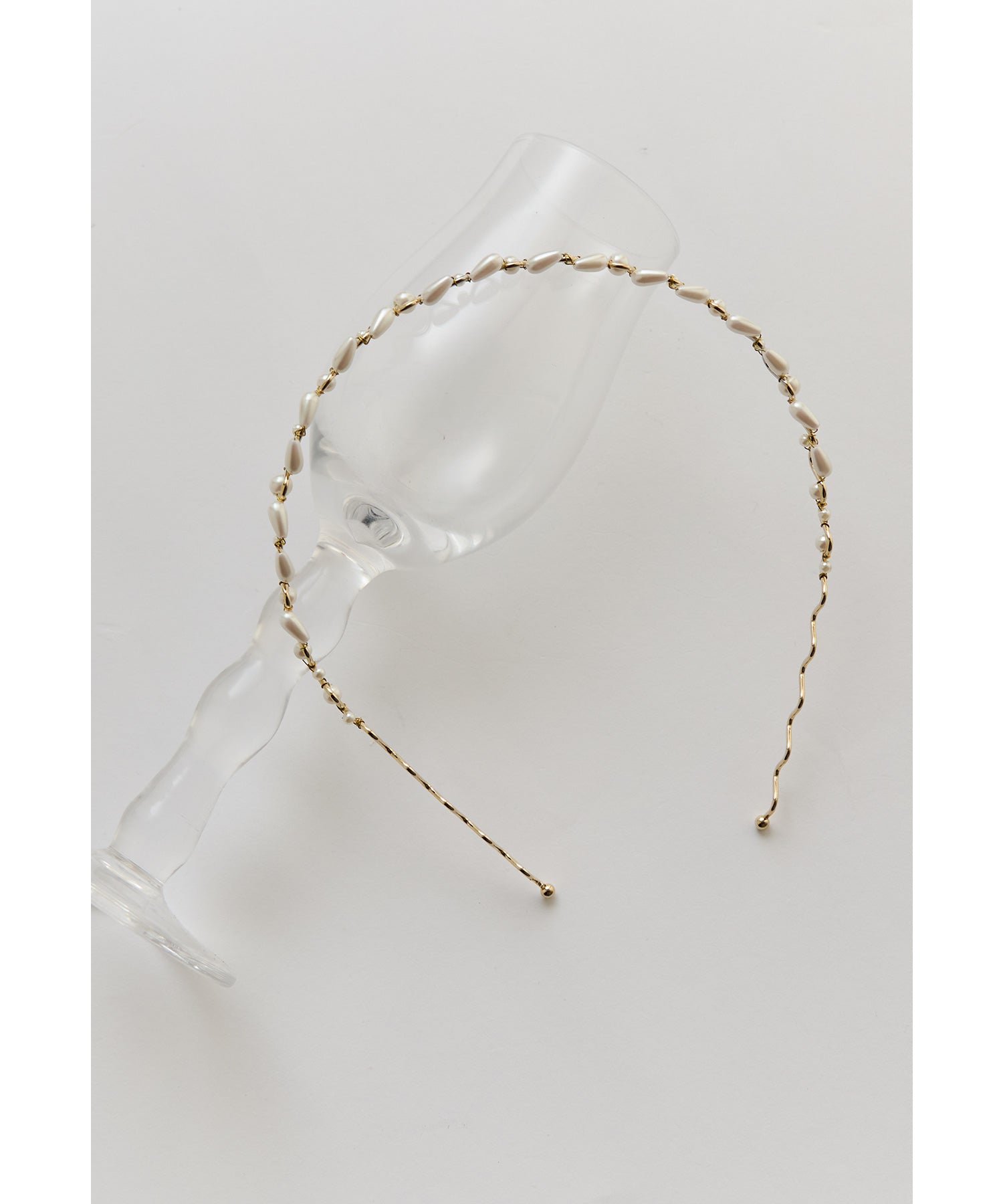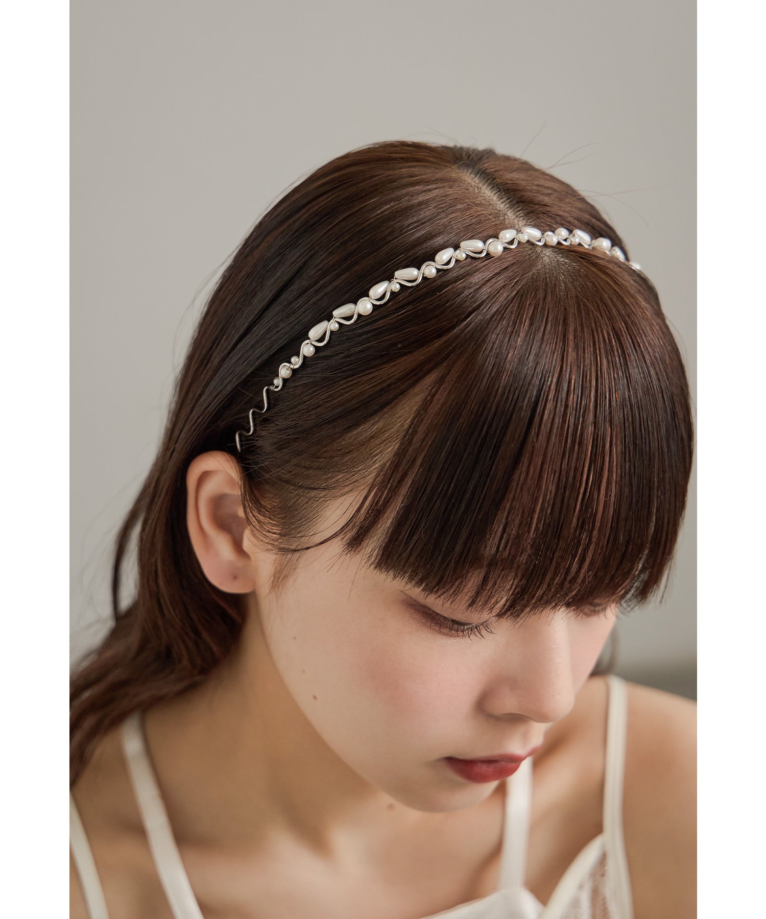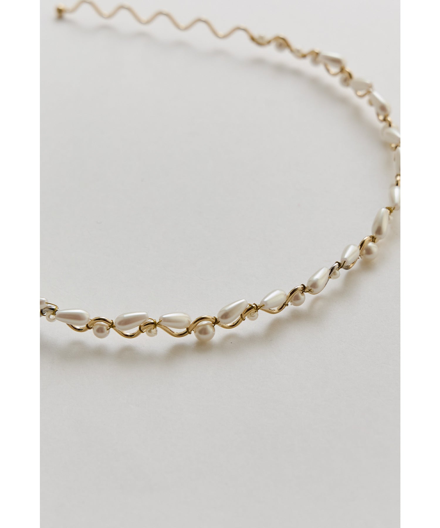 波打ったフォルムに、丸いパールと雫パールを綺麗に並べたカチューシャ。