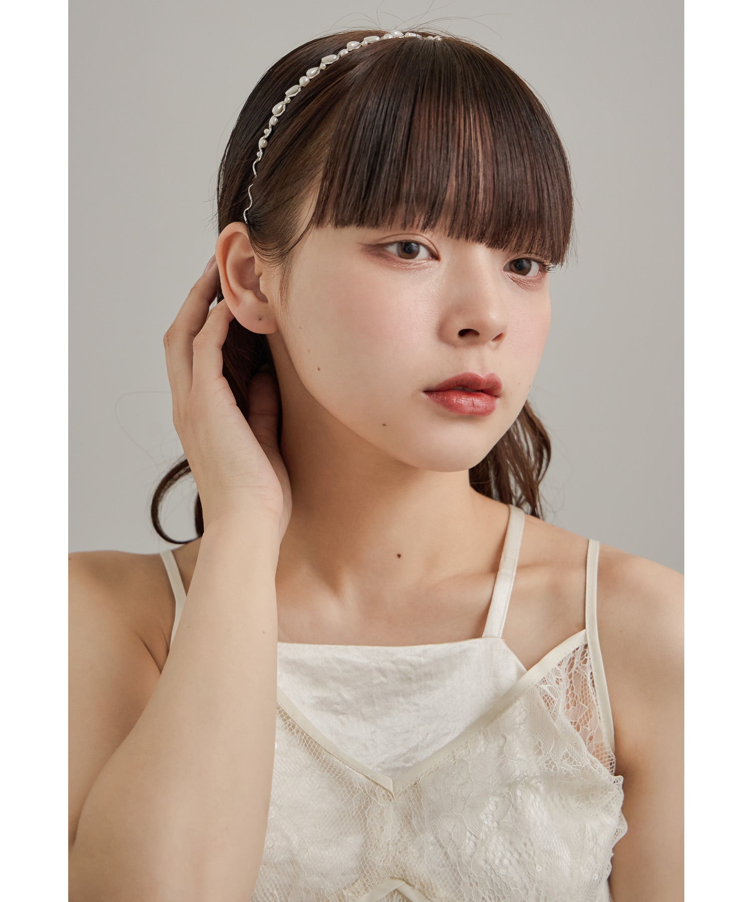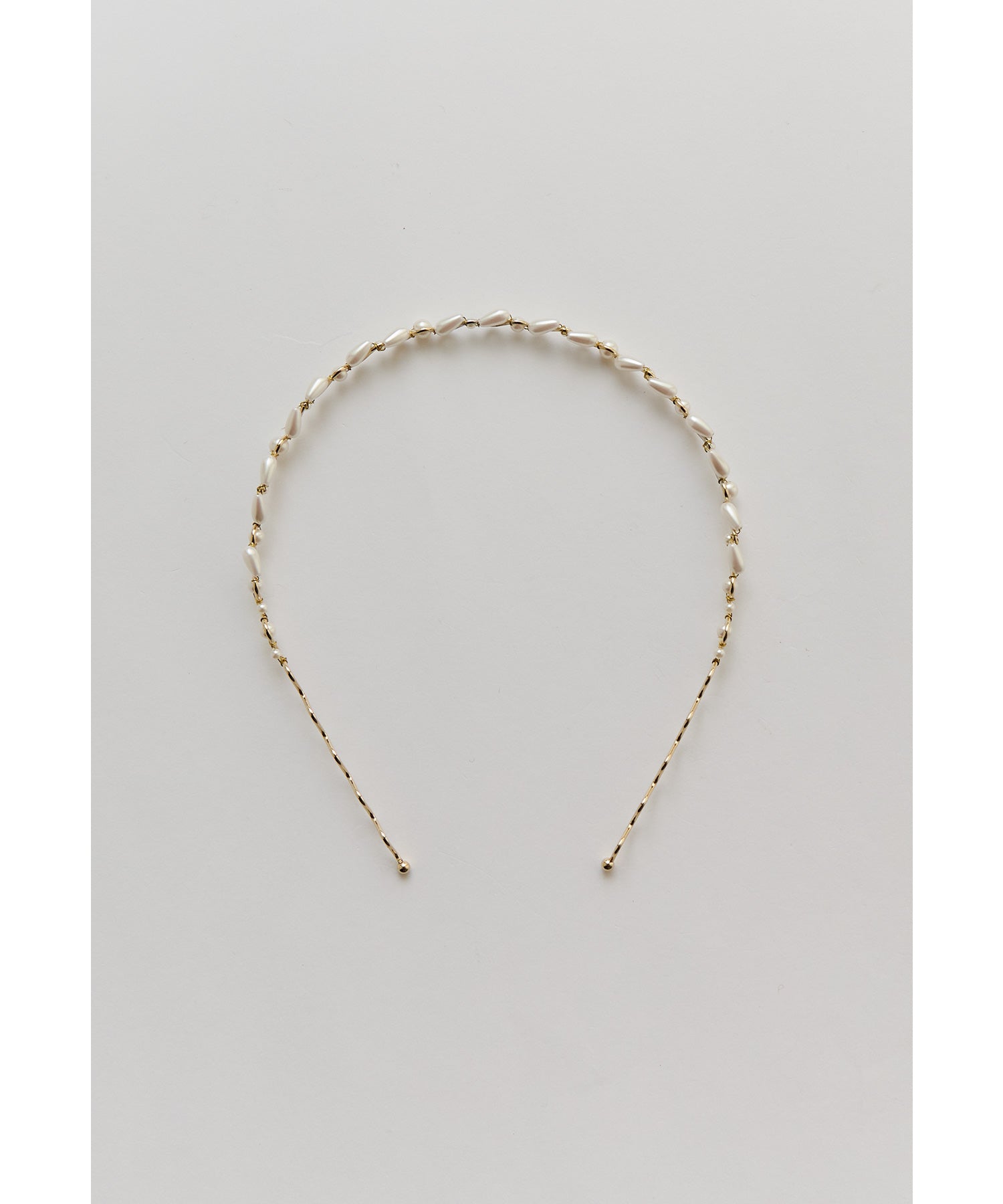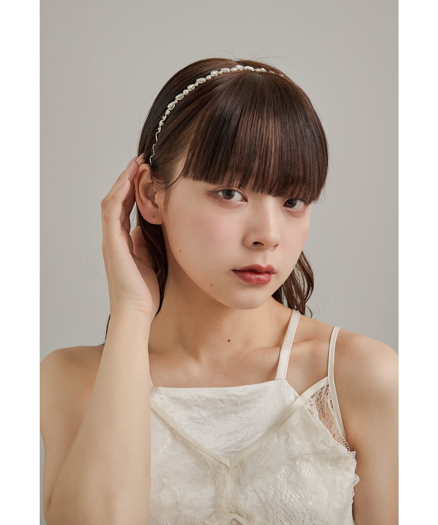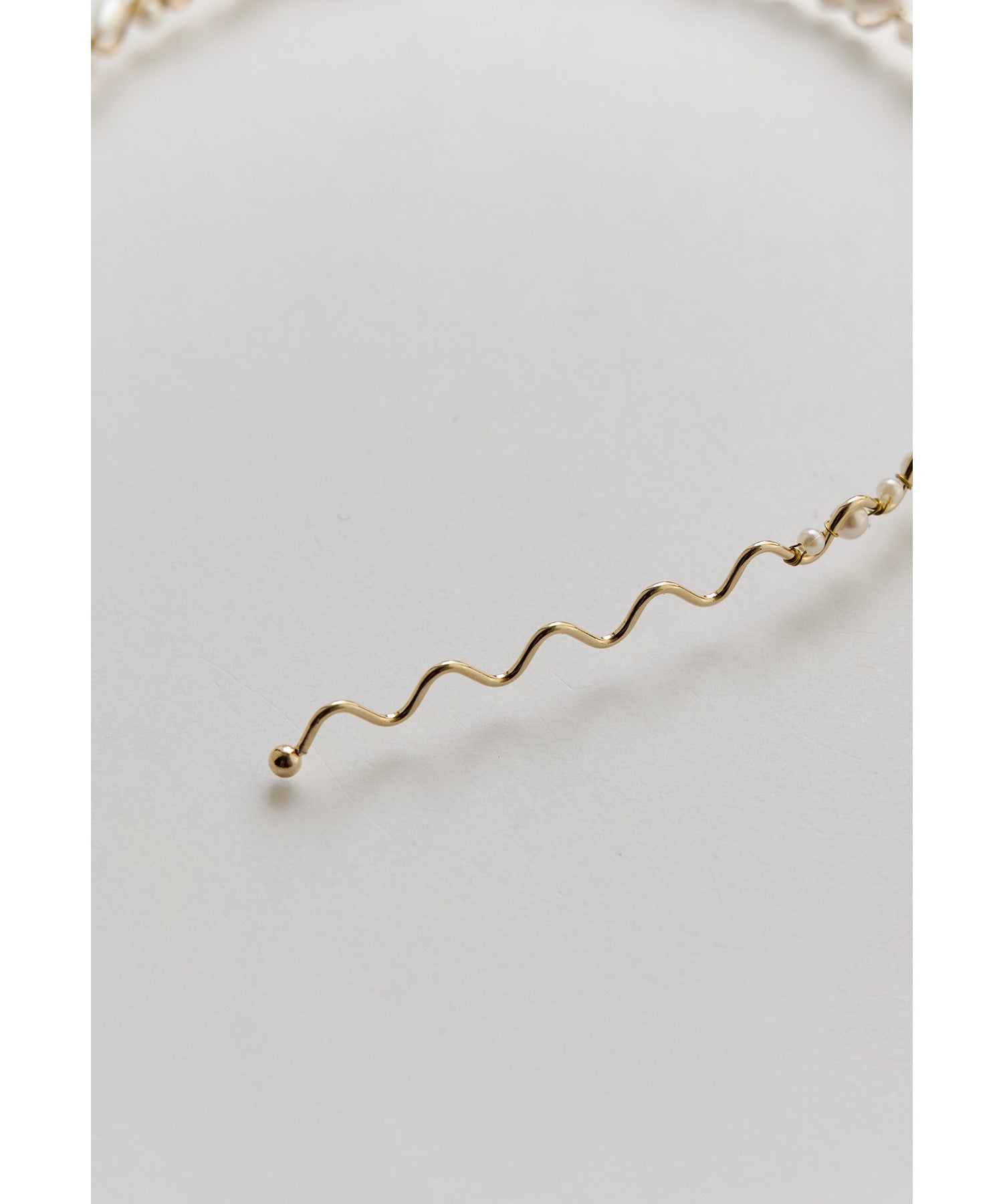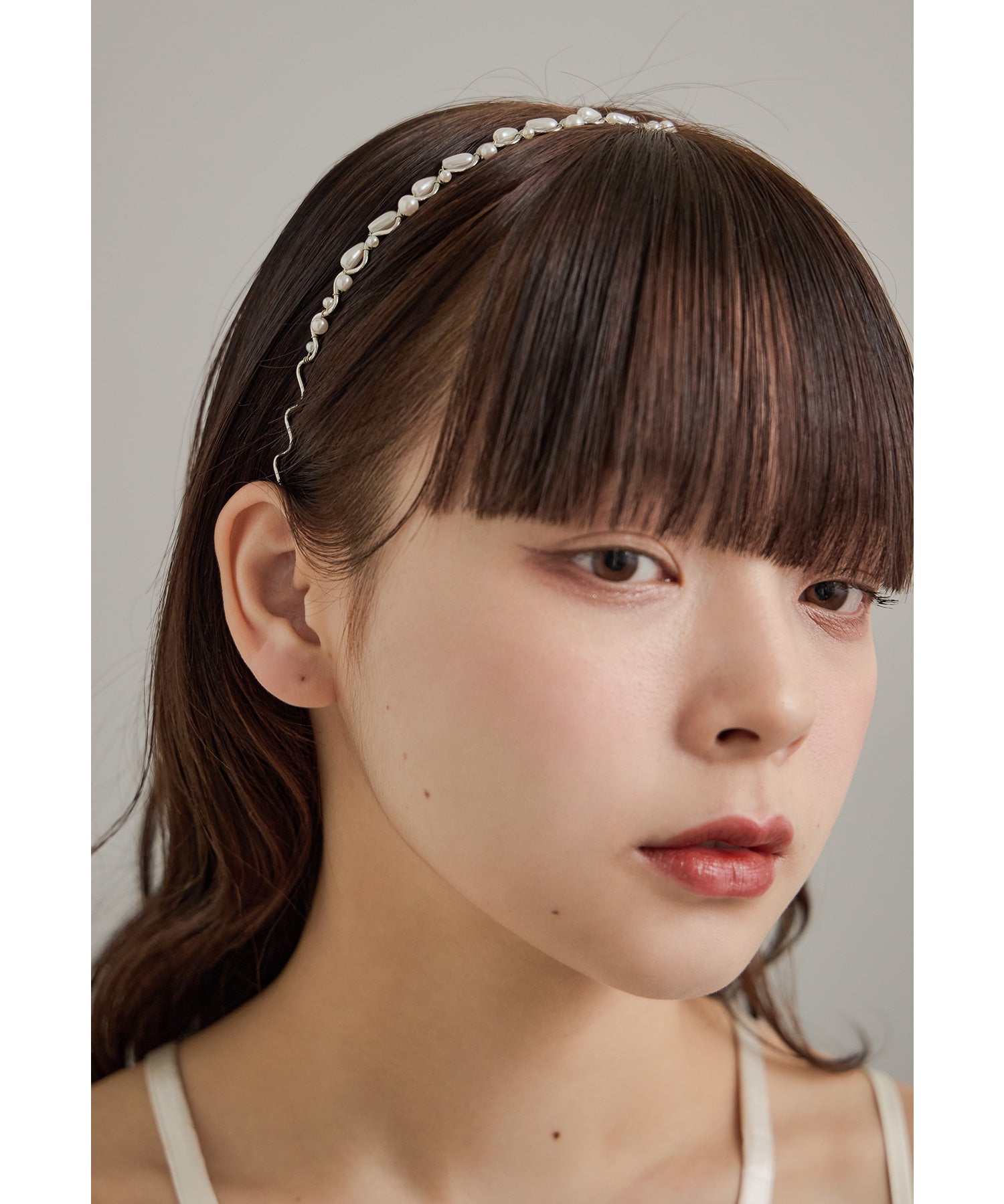 波打ったフォルムに、丸いパールと雫パールを綺麗に並べたカチューシャ。