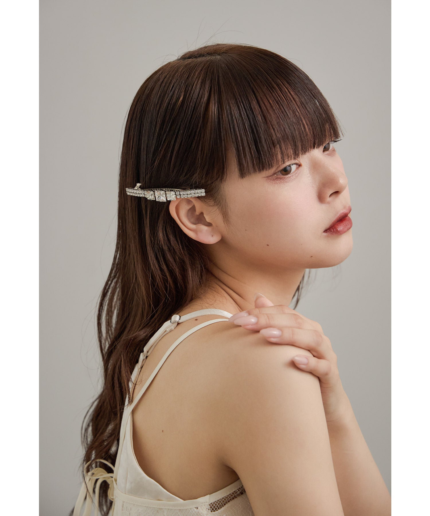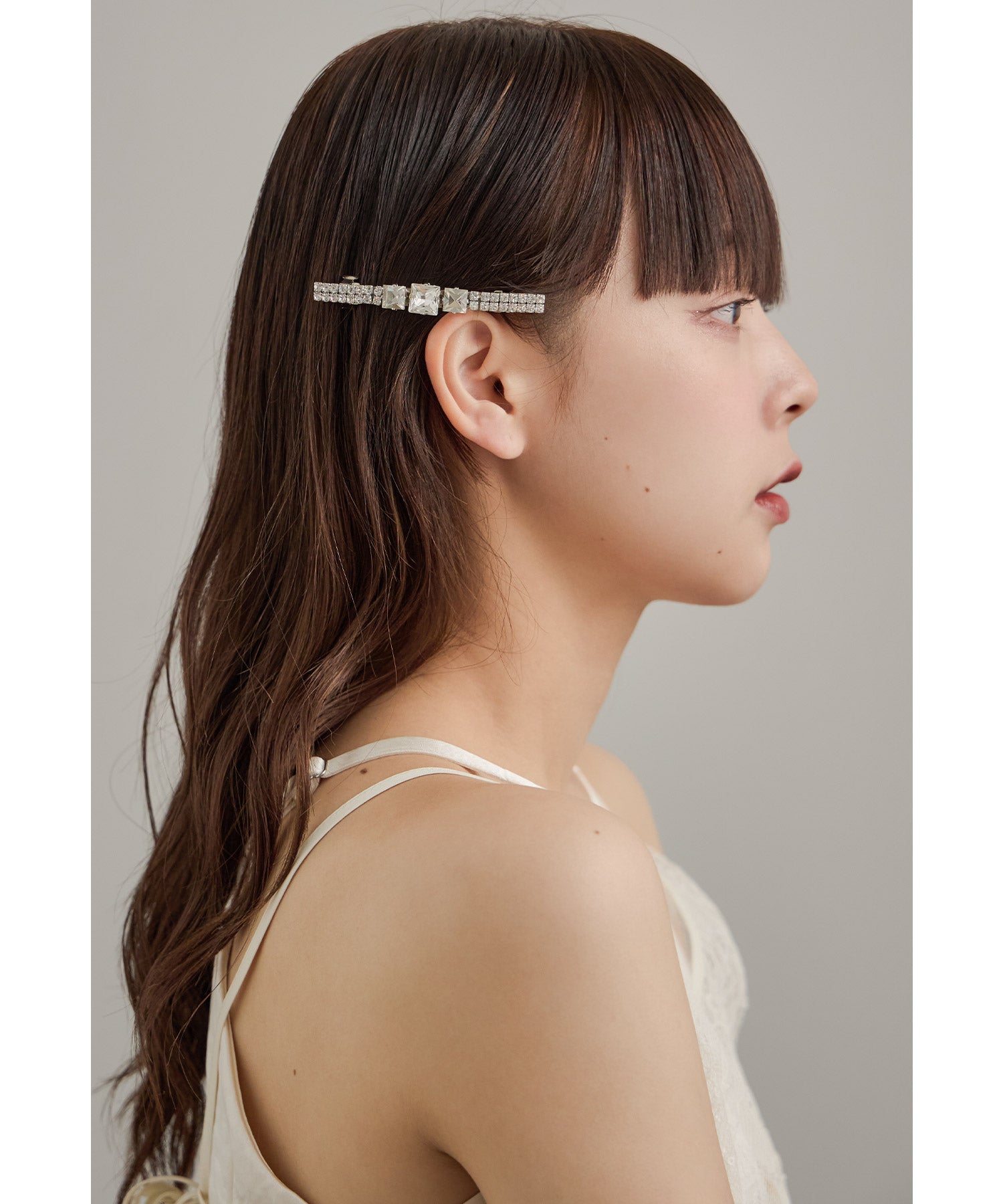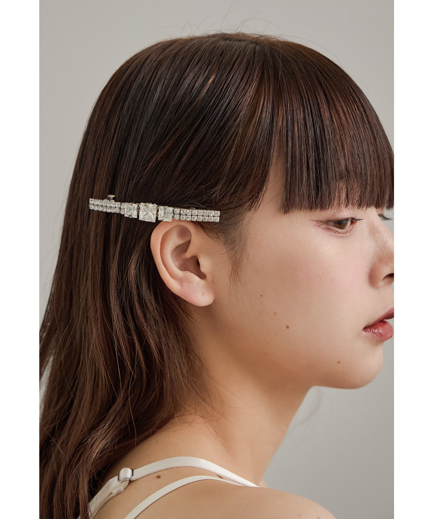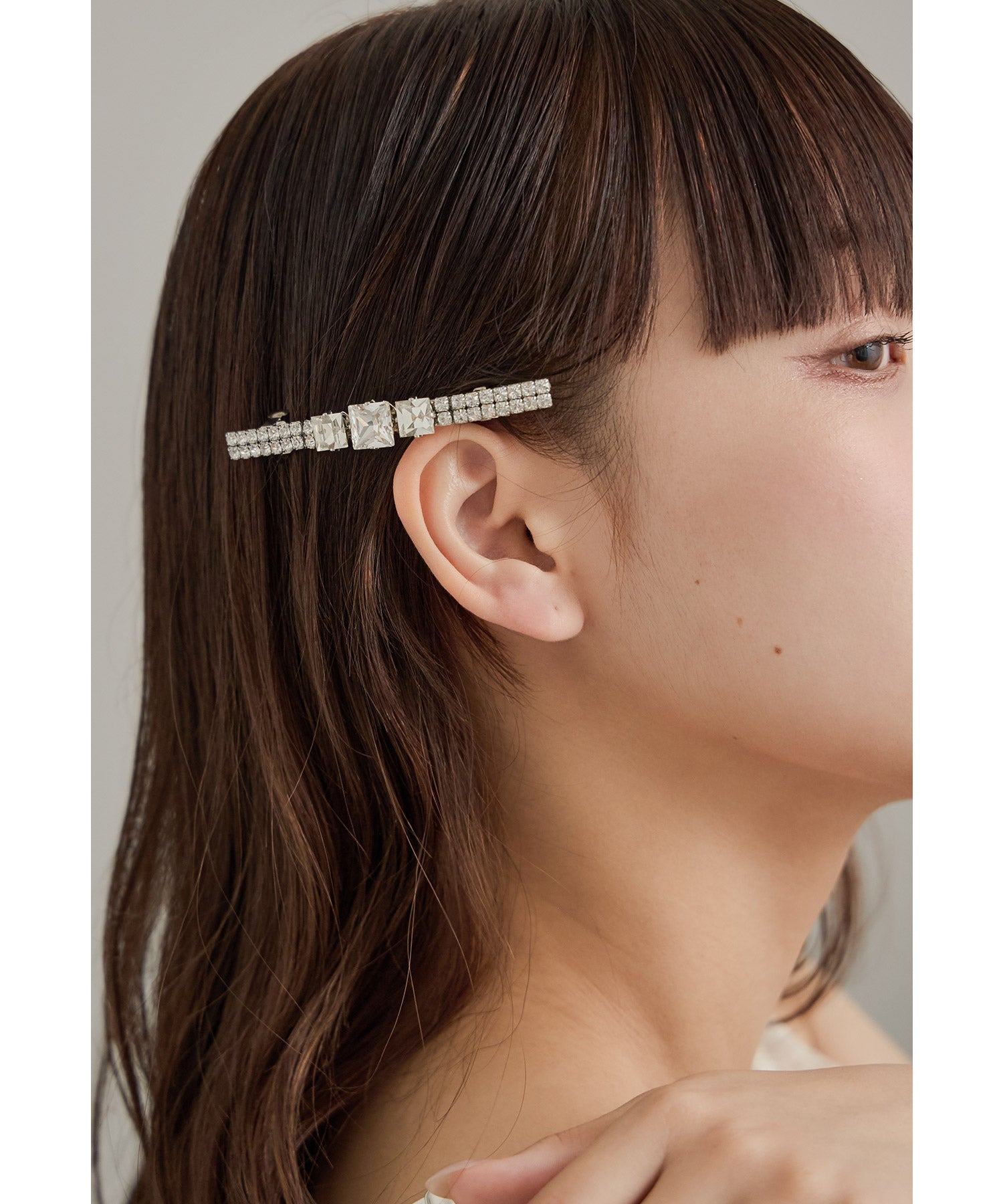 Rname スクエアビジューバレッタ ヘアアクセサリー ヘアピン ヘアクリップ ラインストーン シルバー シンプル 上品 パーティー 結婚式 披露宴 二次会 成人式 同窓会 卒業式 入学式 お呼ばれ 女子会 セレモニー オケージョン ヘアアレンジ ウェディング 着物 袴 髪飾り ブライダル