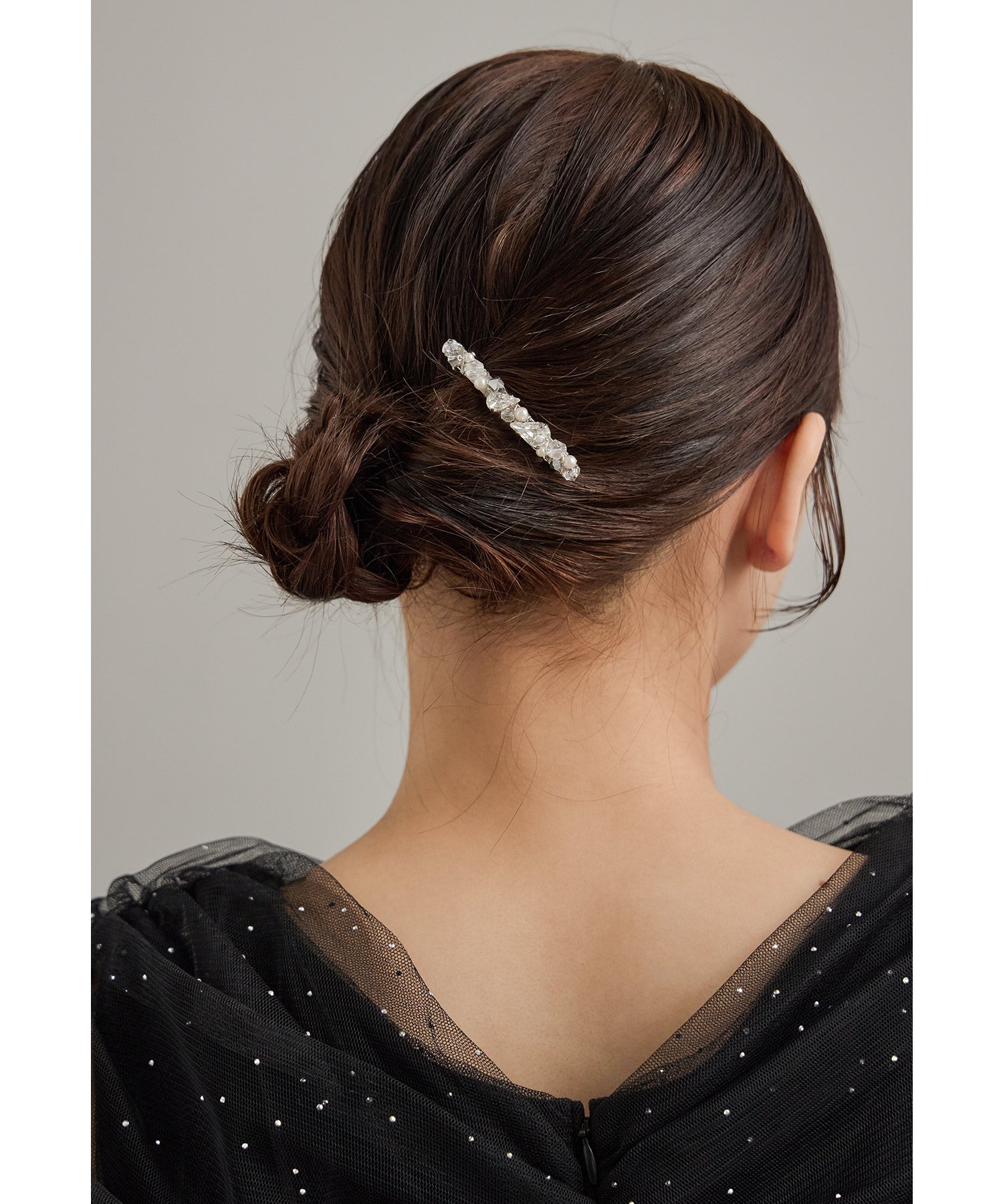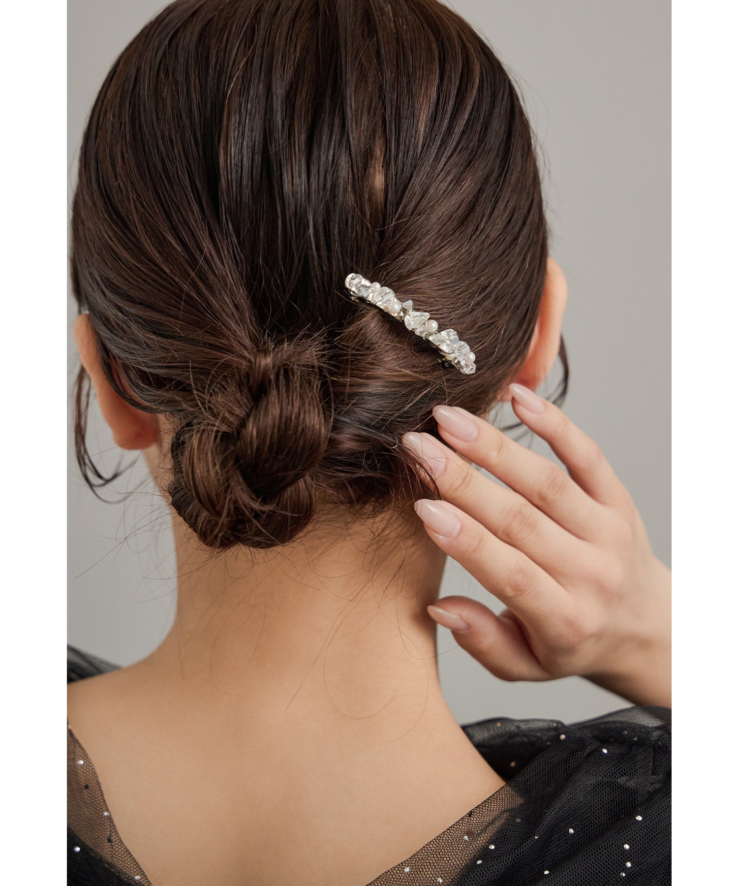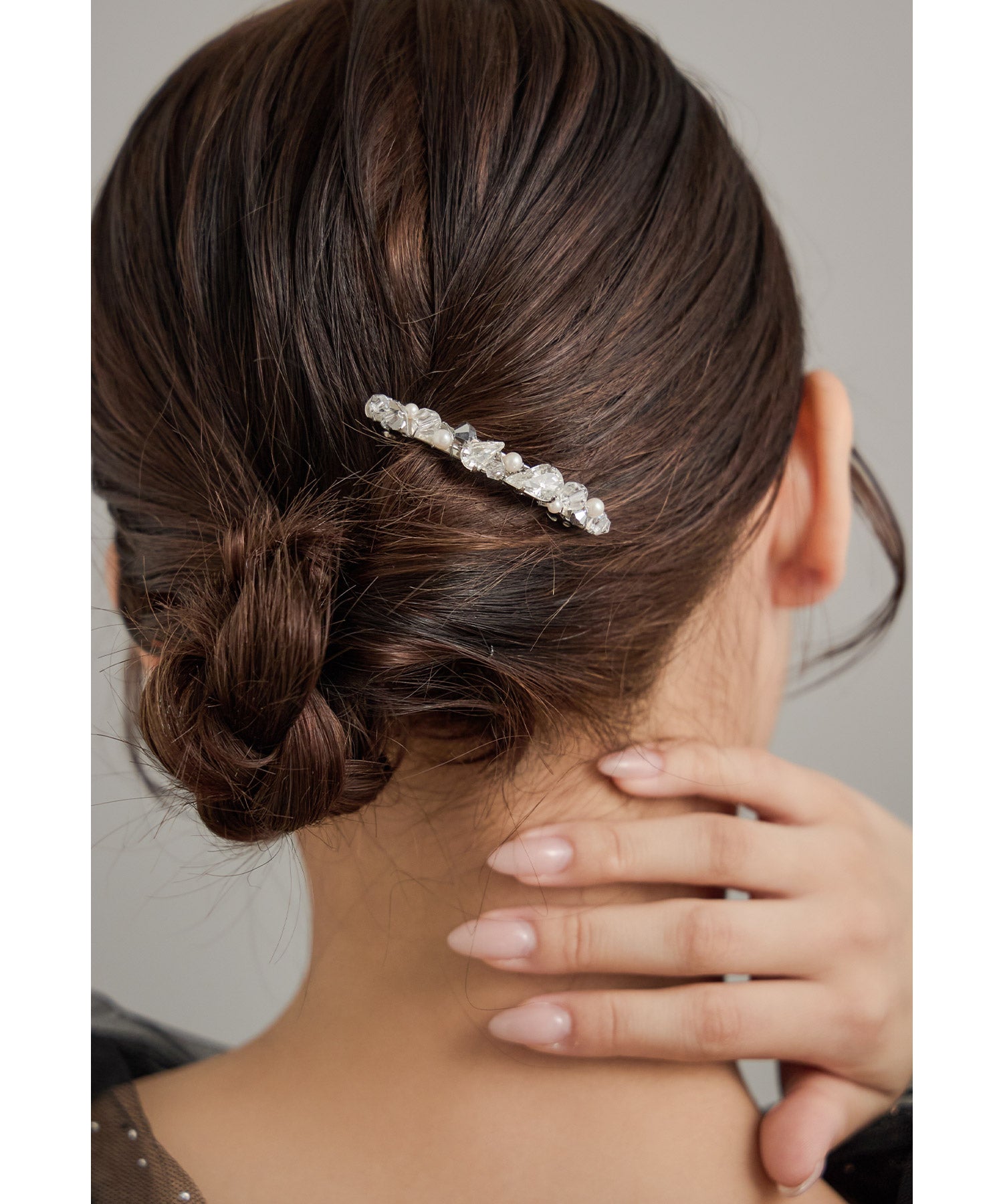 Rname ビジューミニバレッタ ヘアアクセサリー ヘアピン ヘアクリップ バール ビーズ シルバー シンプル 上品 小さめ パーティー 結婚式 披露宴 二次会 成人式 同窓会 卒業式 入学式 お呼ばれ 女子会 セレモニー オケージョン ヘアアレンジ ウェディング 着物 袴 髪飾り ブライダル