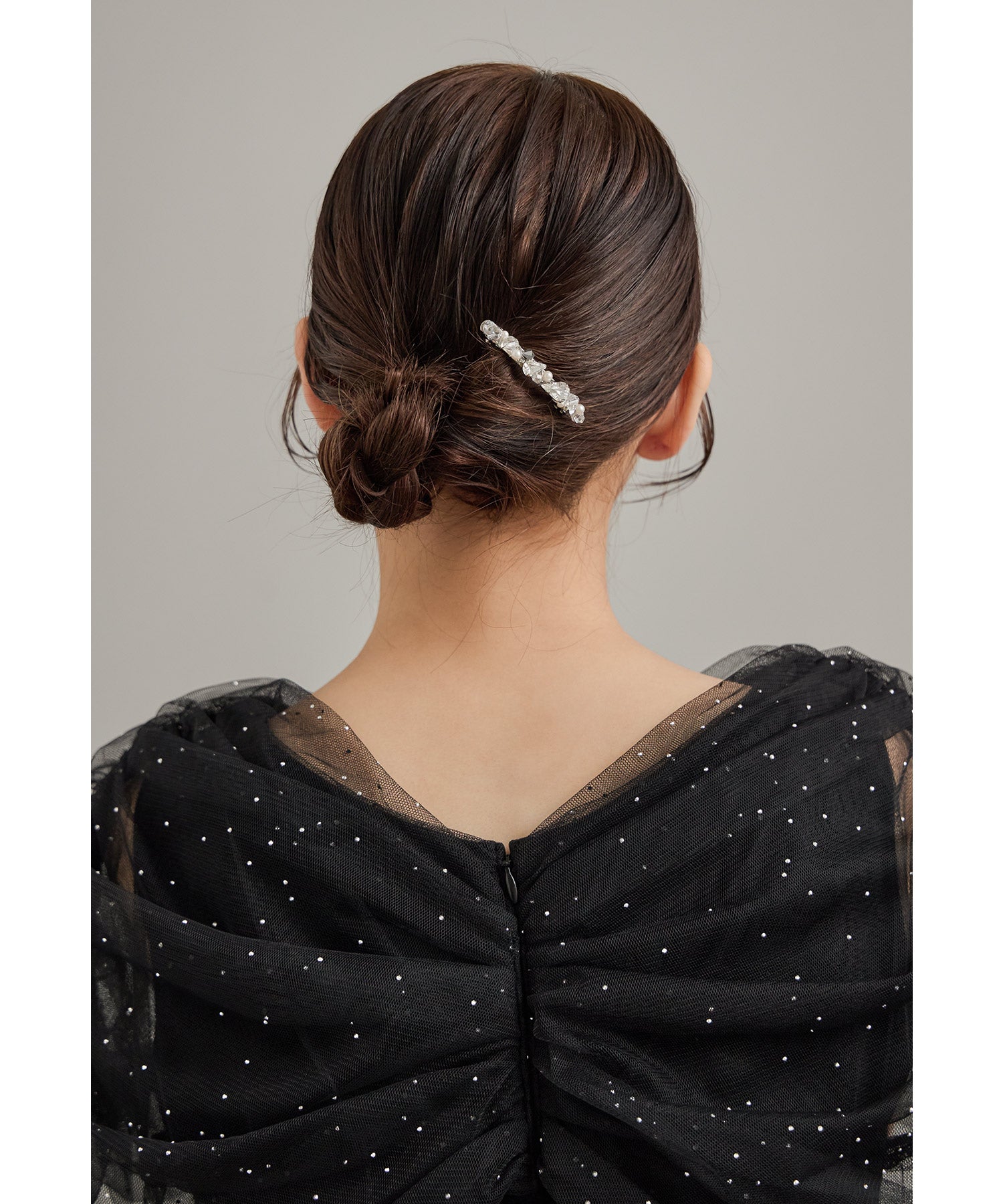 シンプルなまとめ髪でも付けるだけで、より一層華やかなヘアスタイルに。