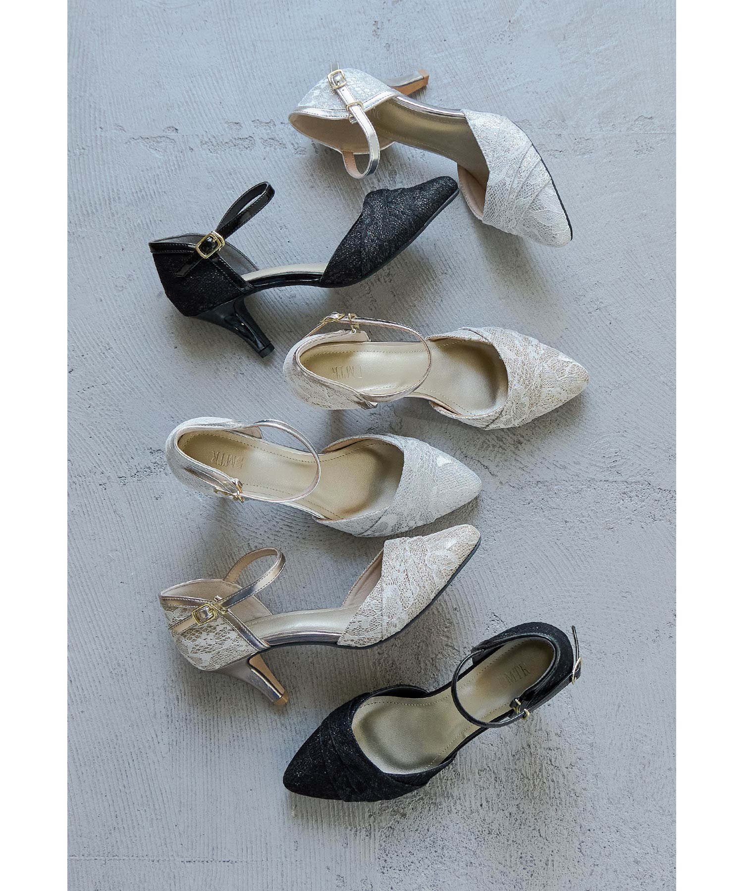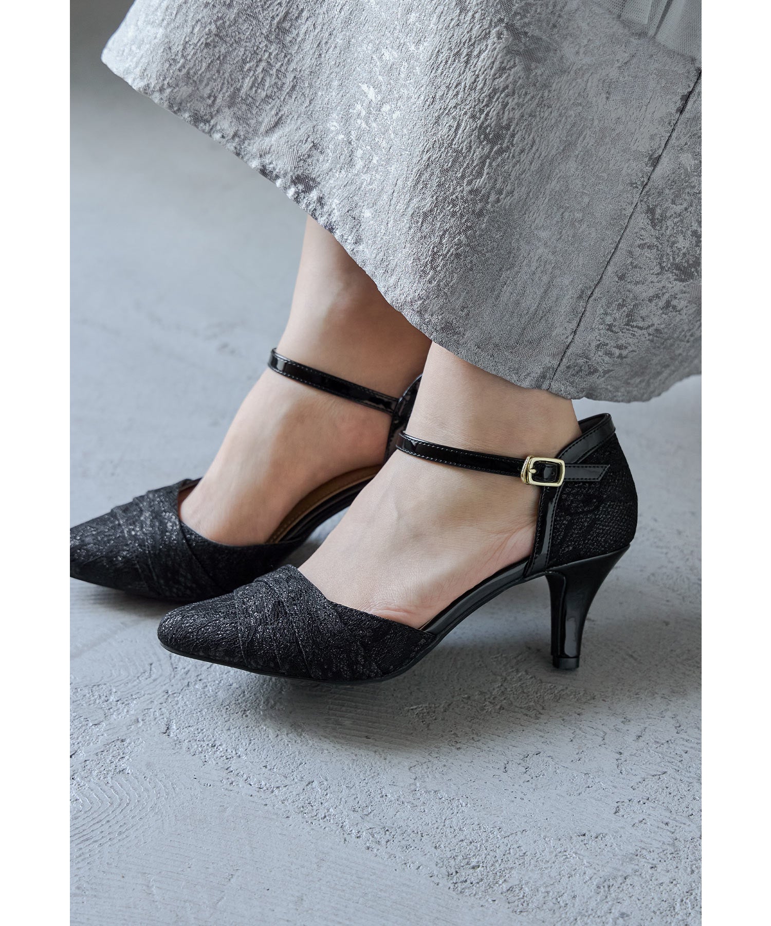 Zname ラメレースパンプス ストラップ 結婚式 二次会 同窓会 成人式 パーティー フォーマル オケージョン