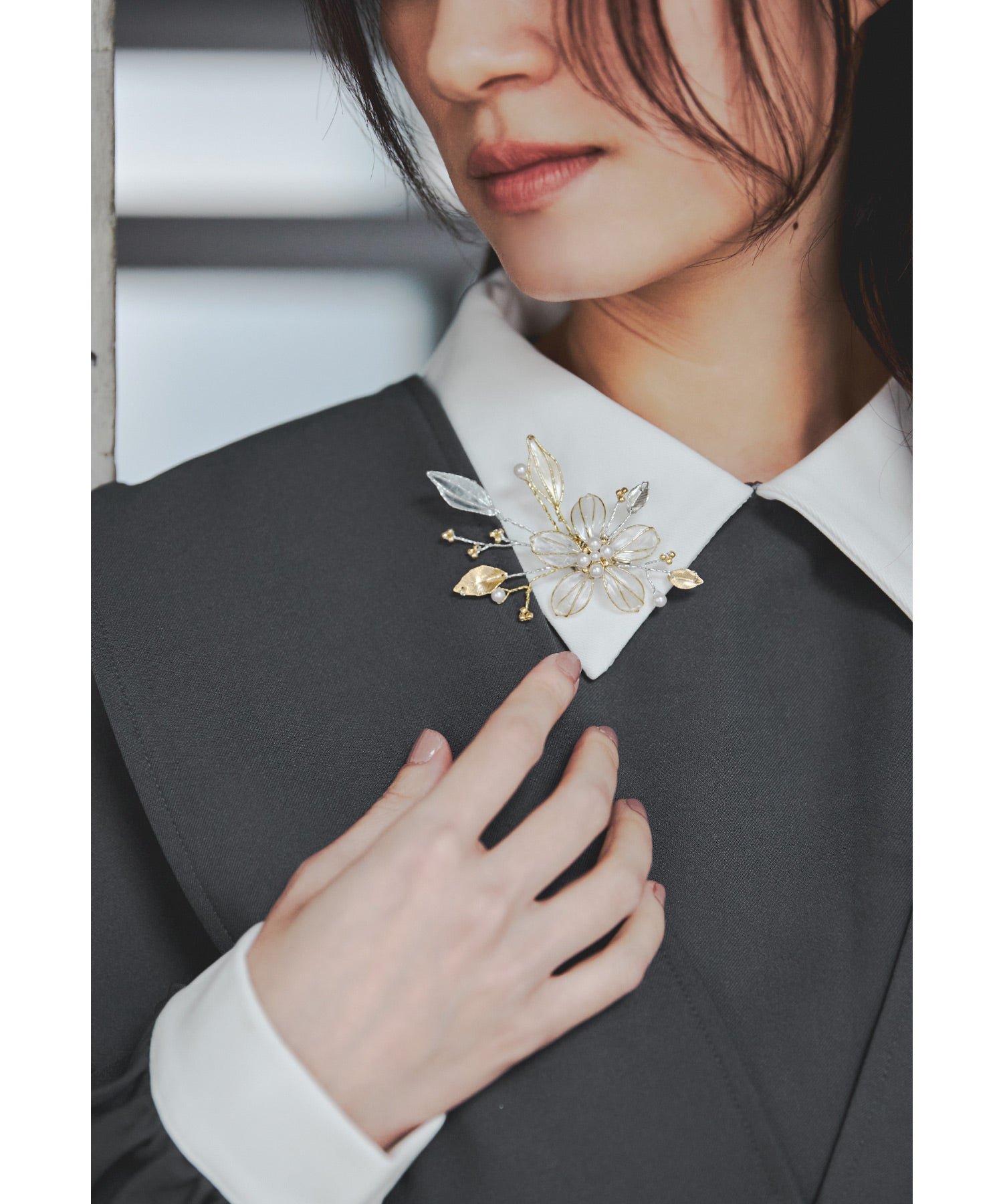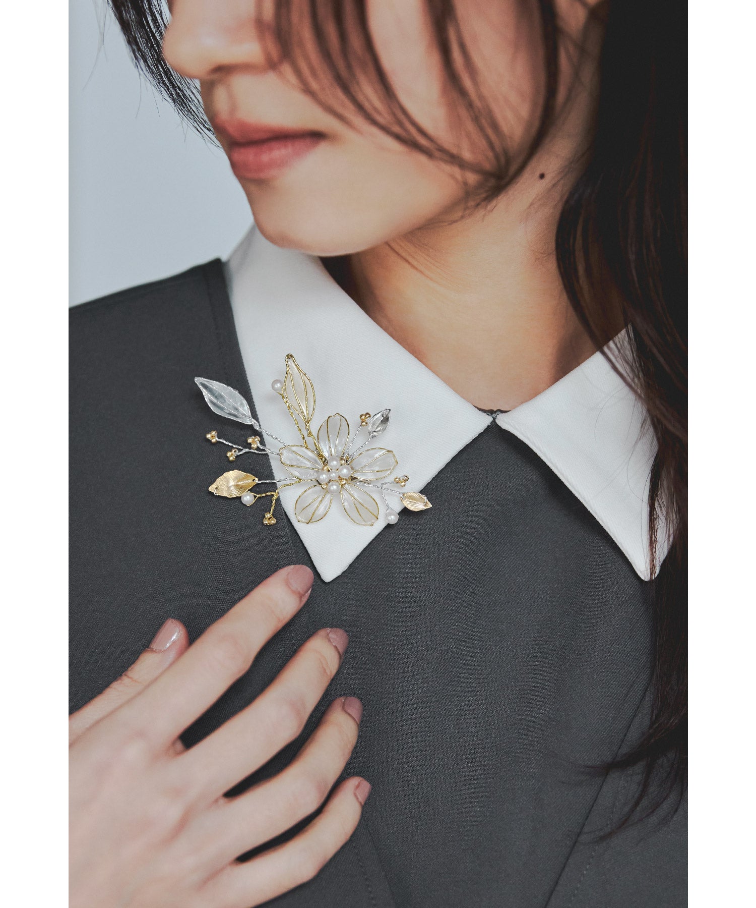 シルバーとゴールドを掛け合わせたお色味で一際上品な印象に。