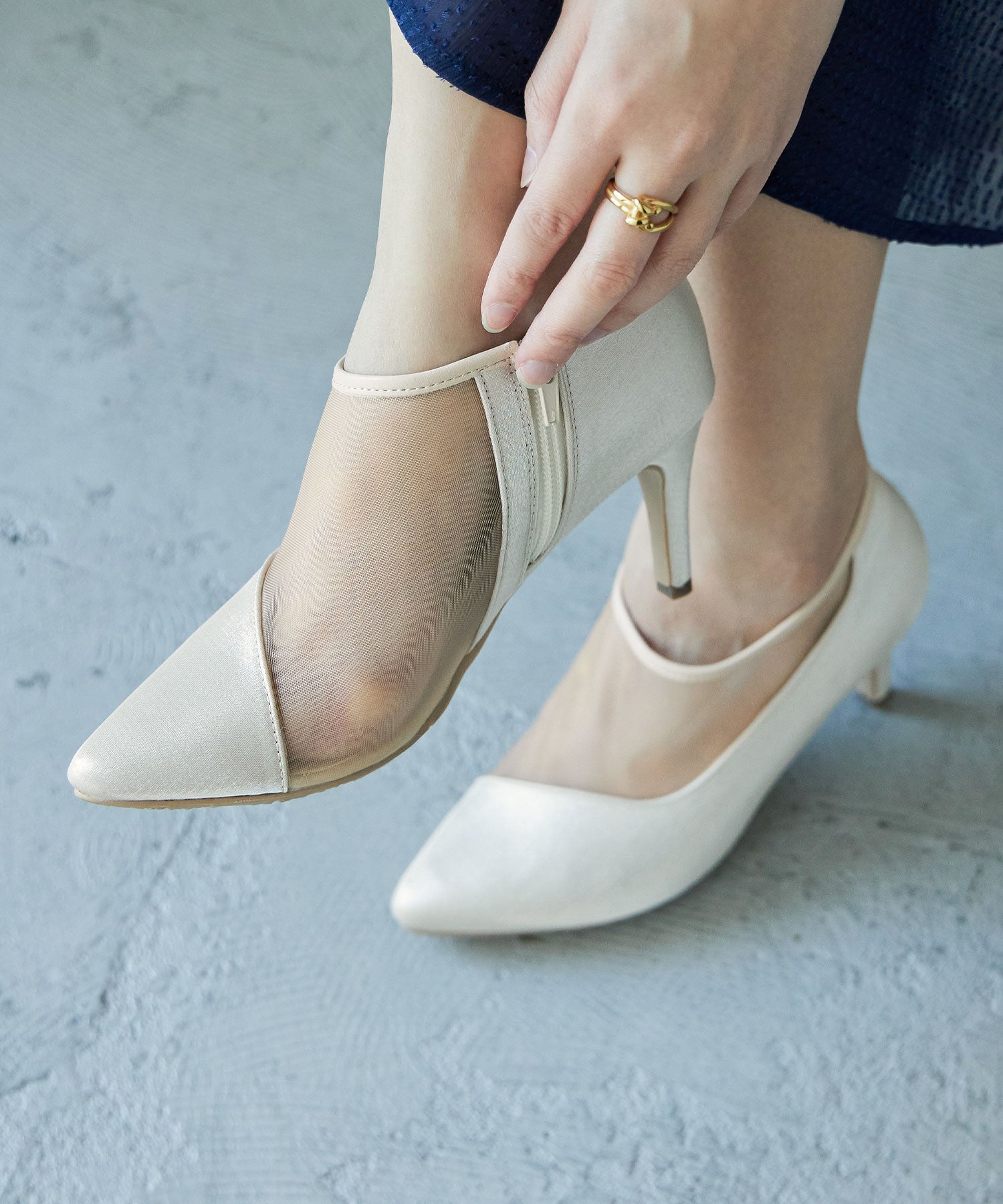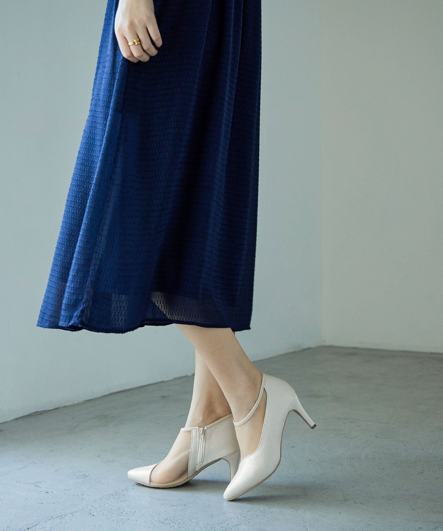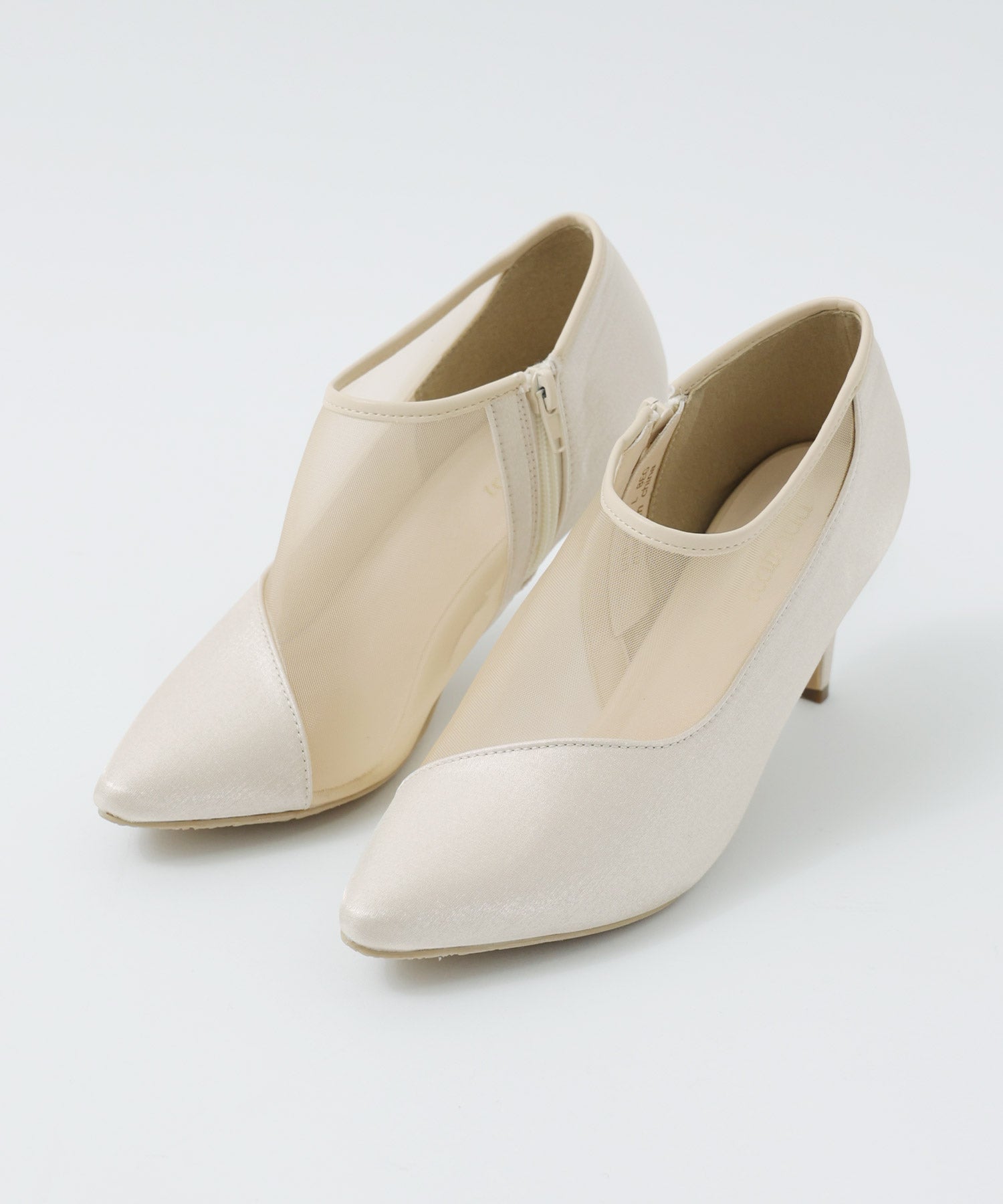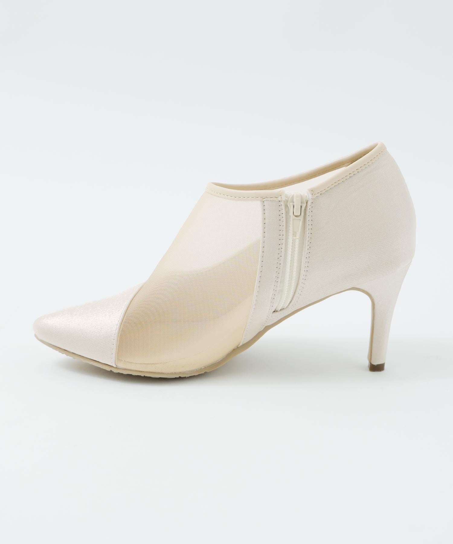 透け感が美しいメッシュ素材のブーティーパンプス。