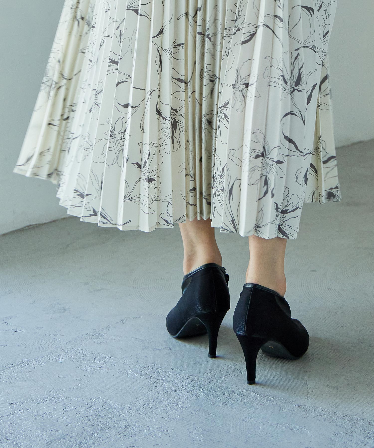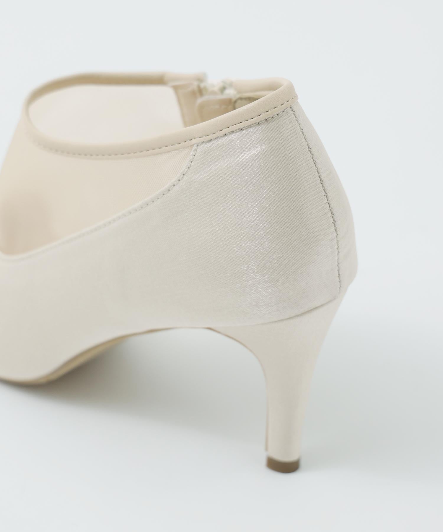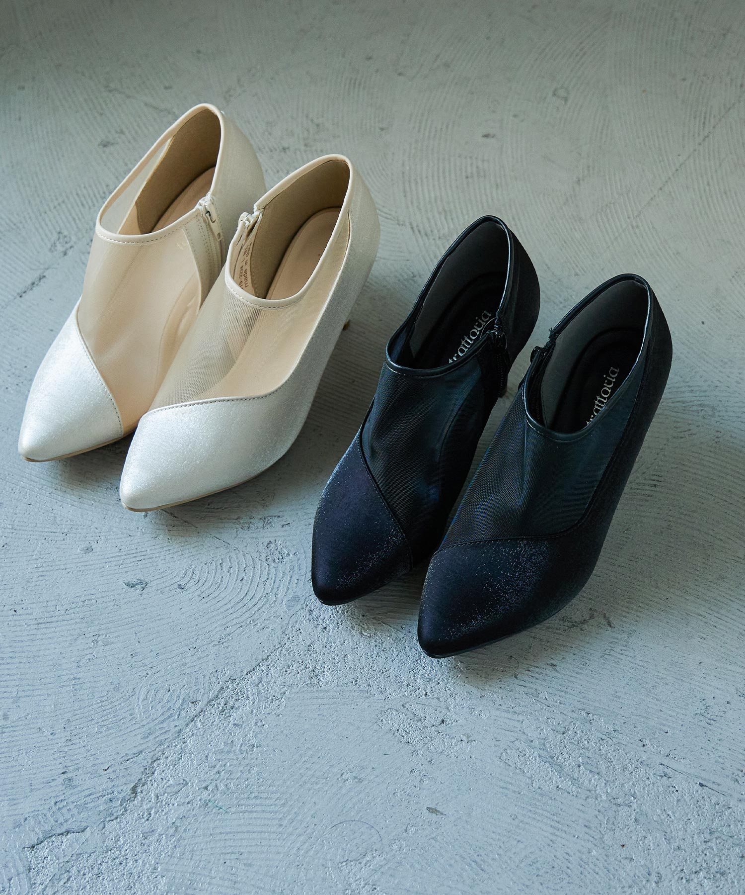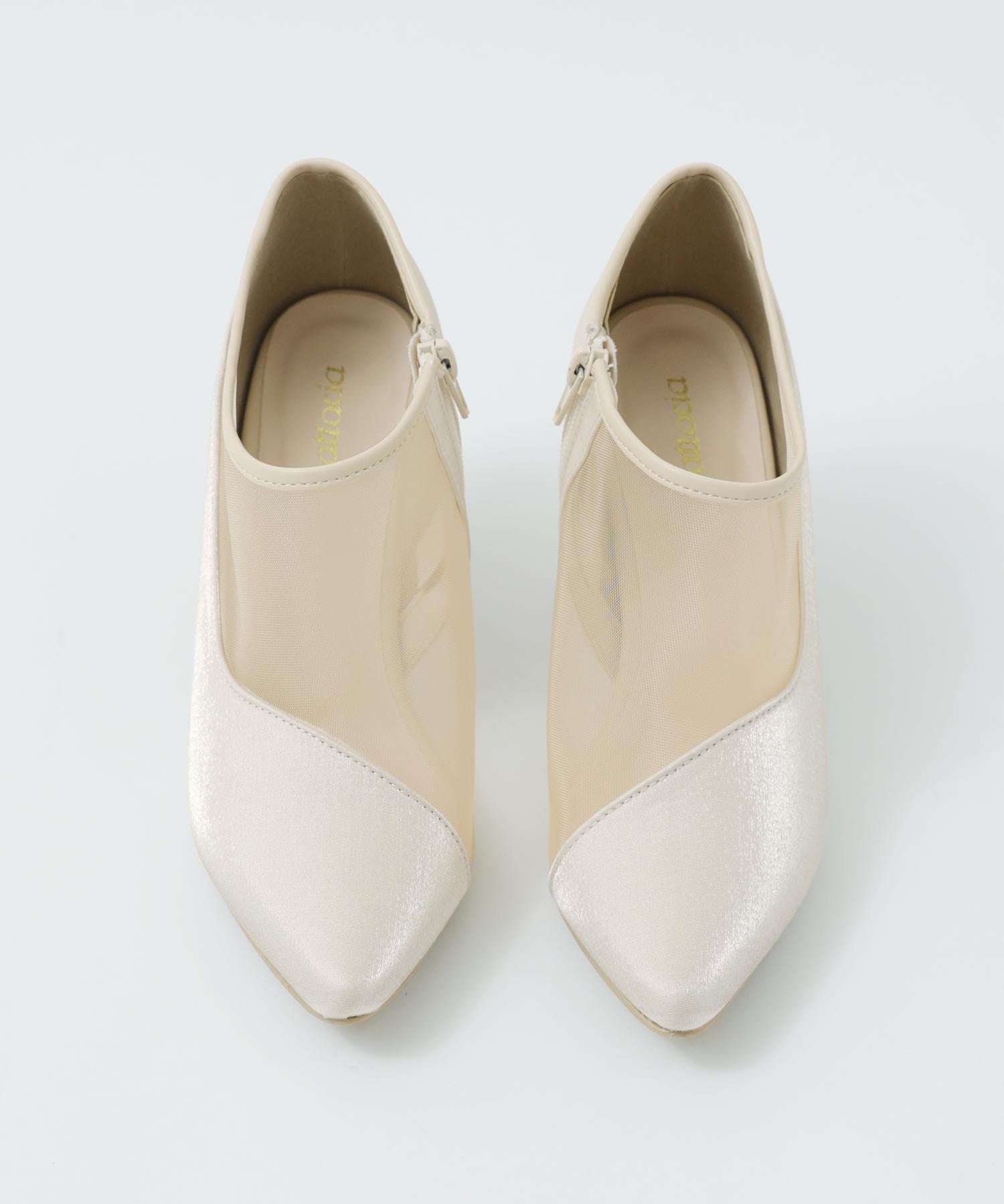 透け感が美しいメッシュ素材のブーティーパンプス。