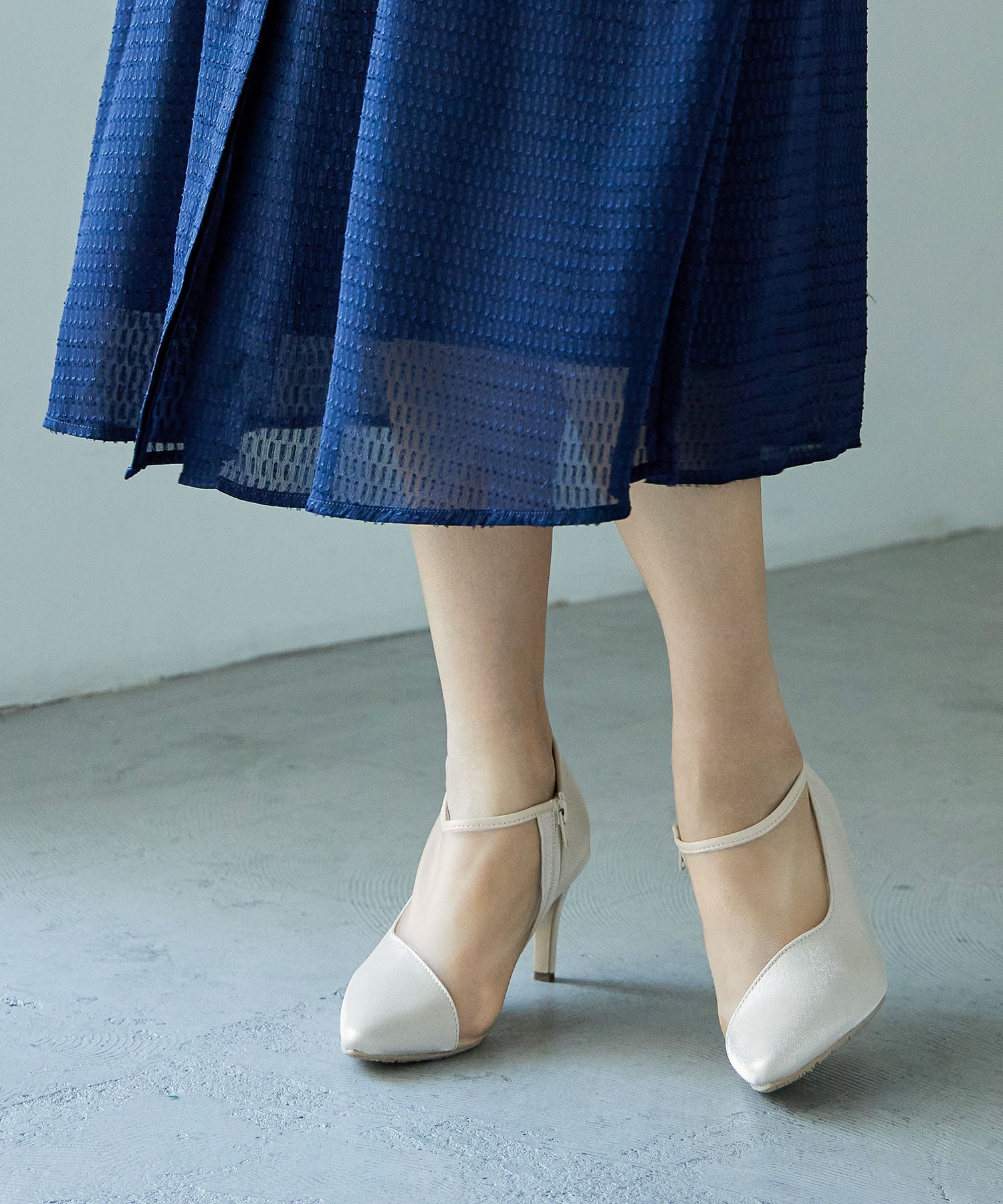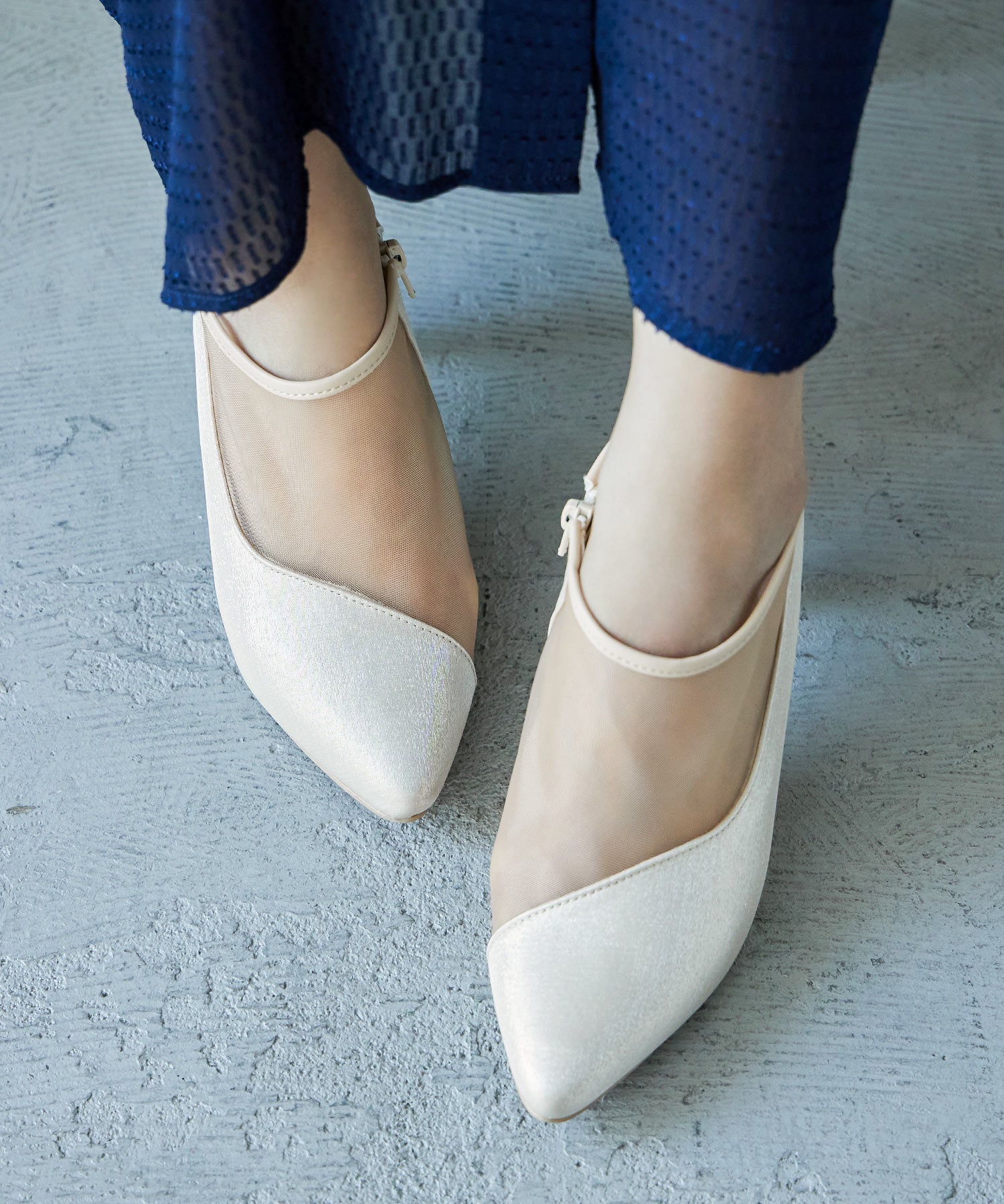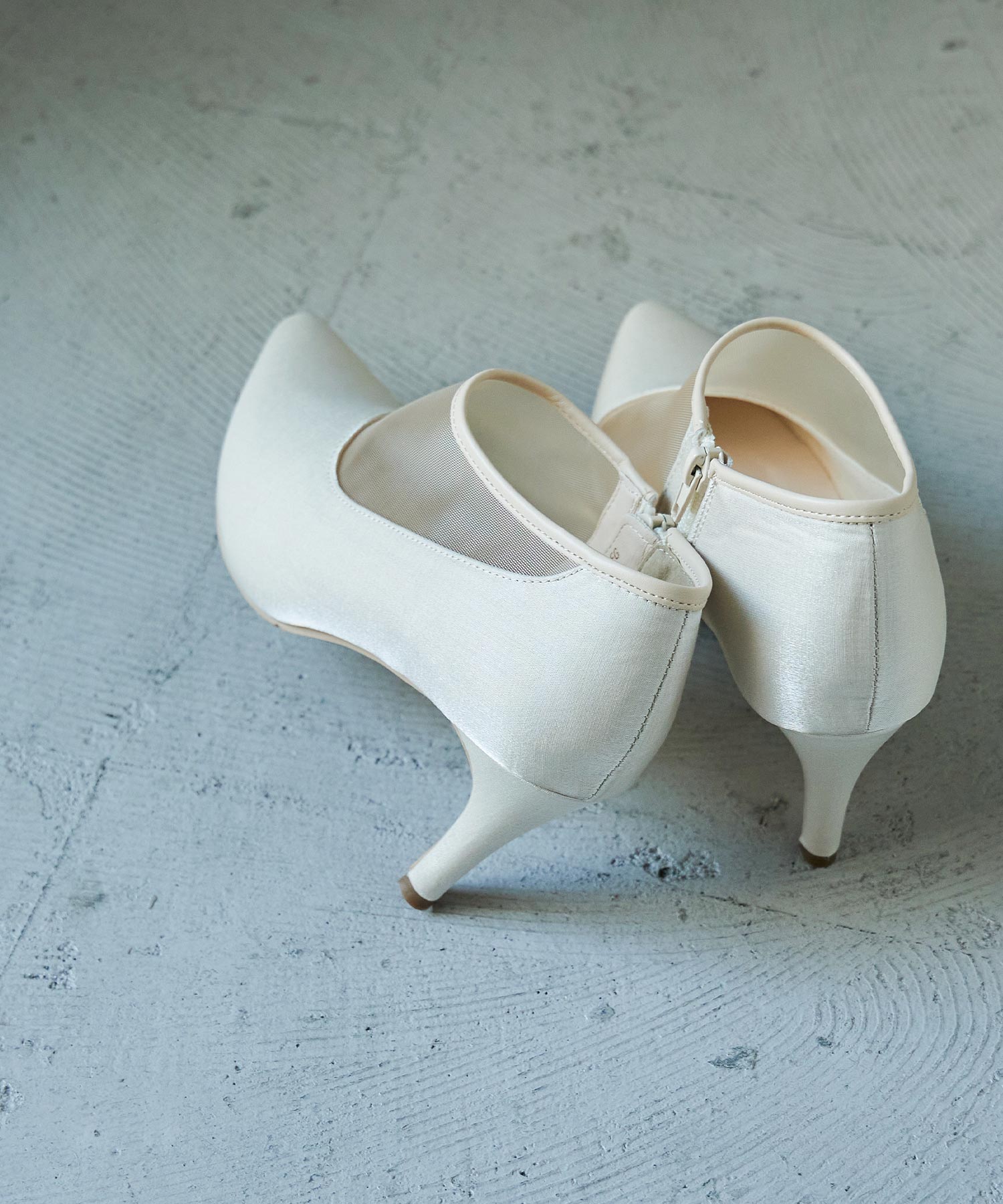 艶やかなサテンとシアーを組み合わせて、上品で周りと差のつく一足に仕上げました。