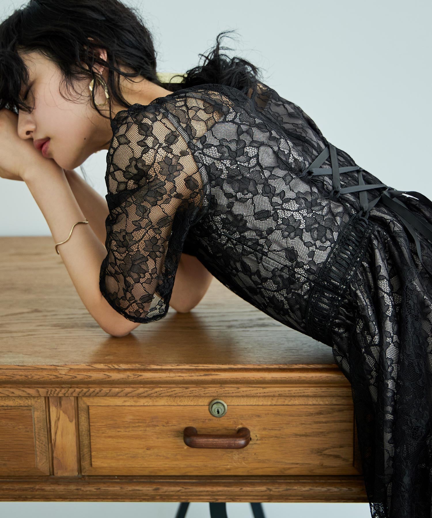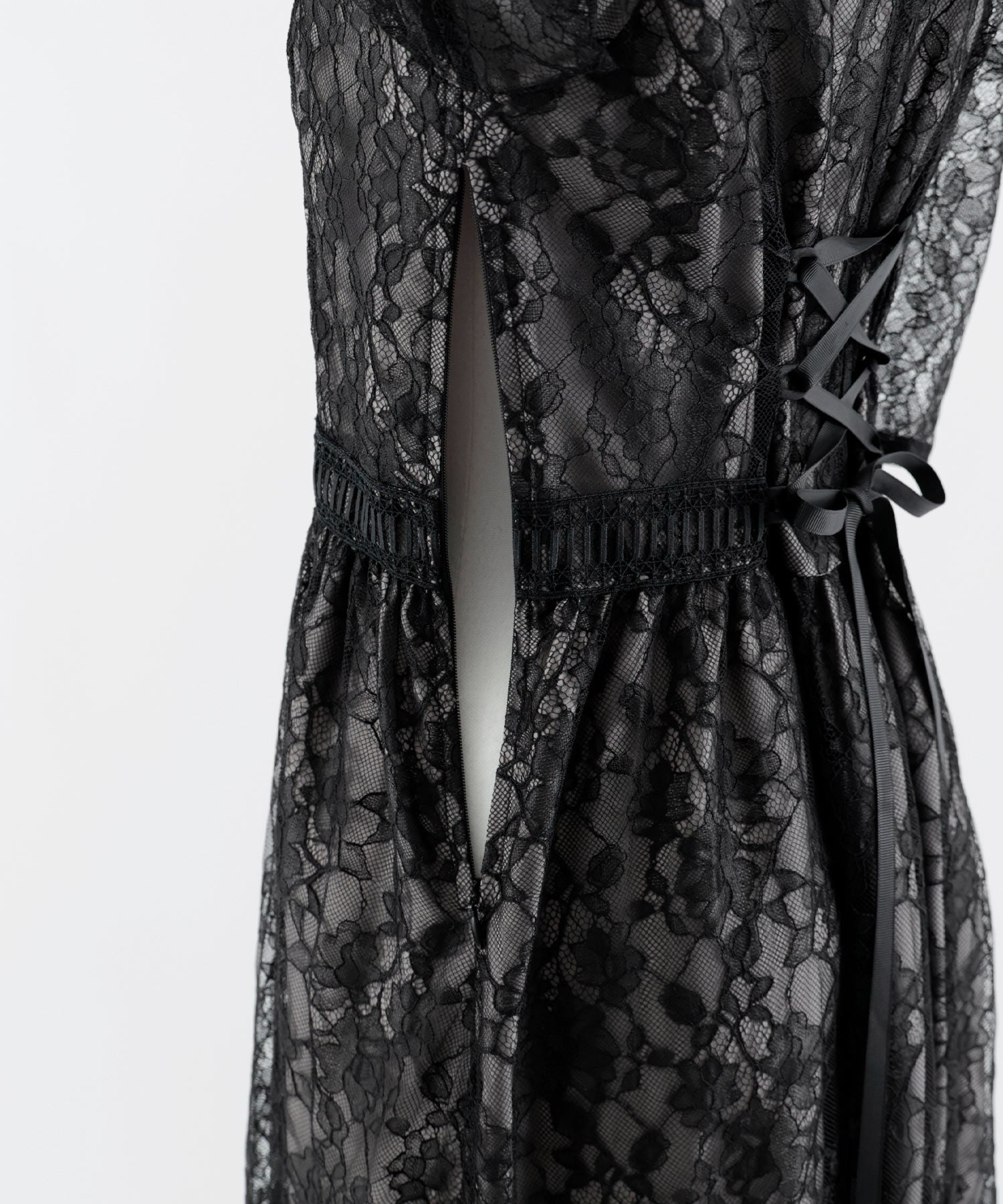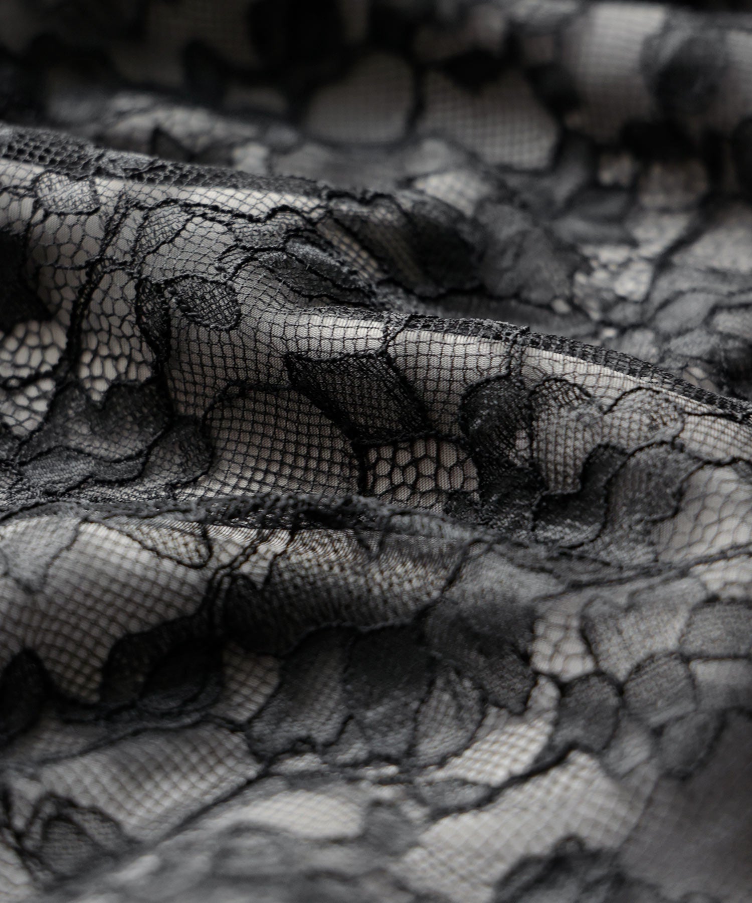 フロントやウエスト切り替えにはハシゴレースを配置。
