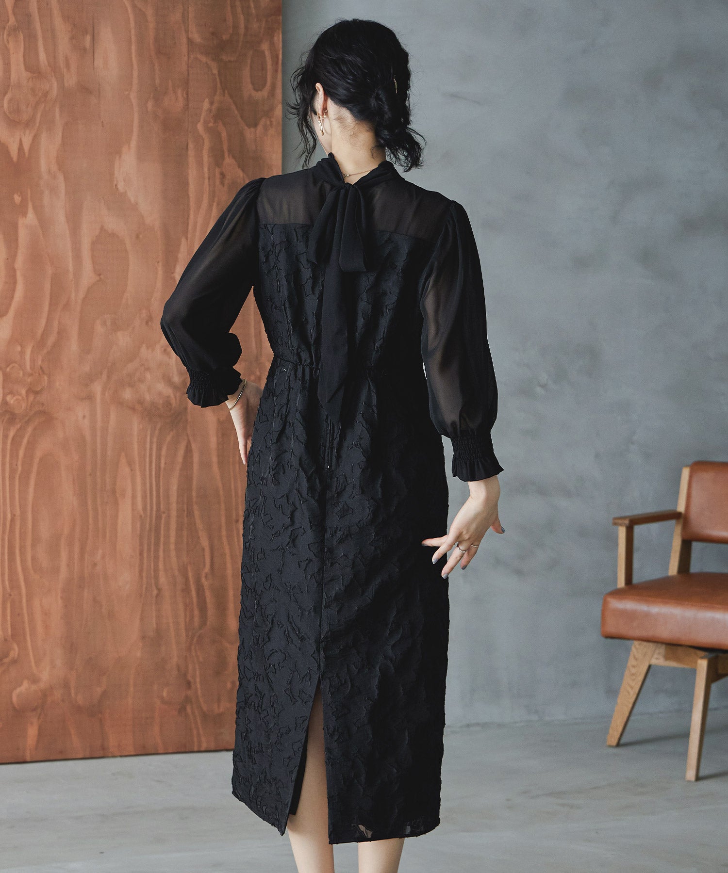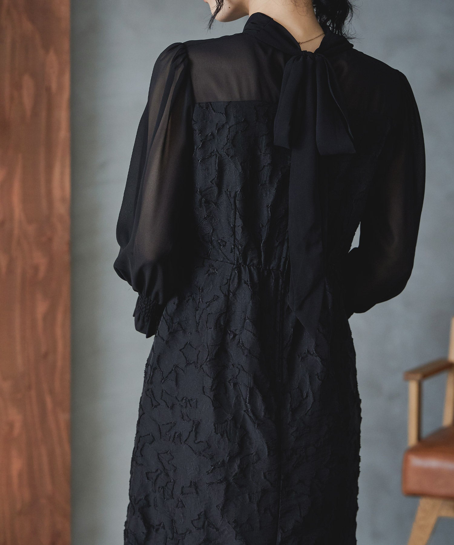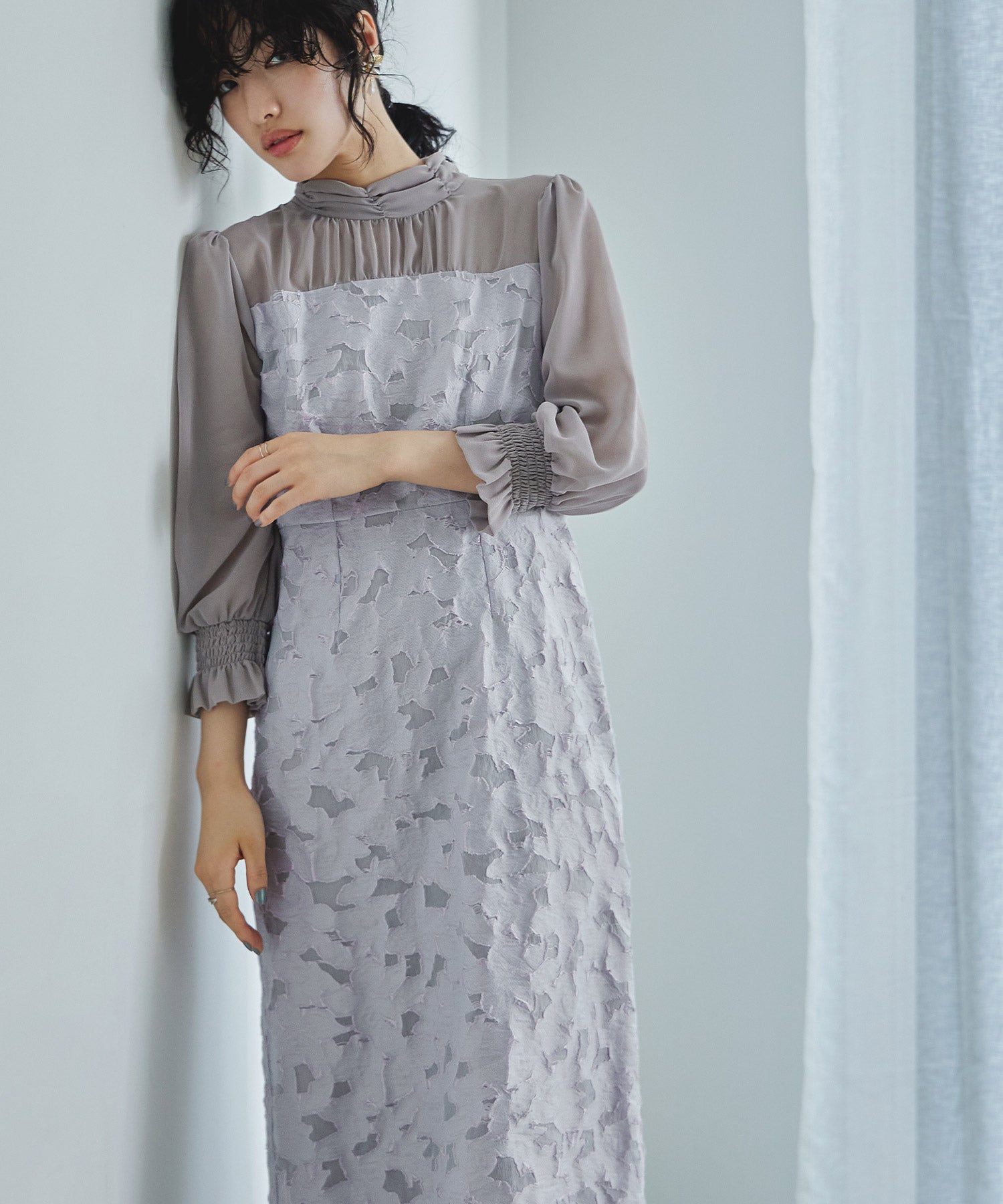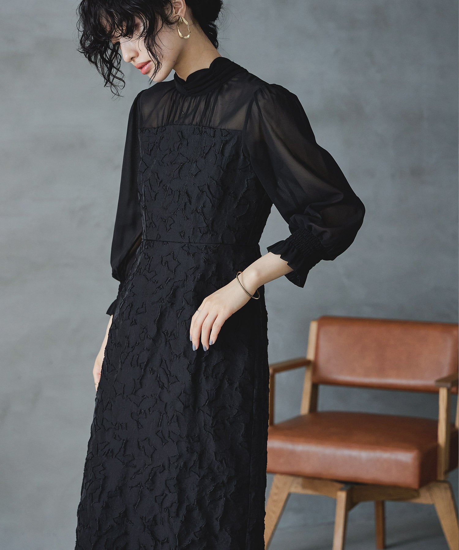 デコルテと袖部分はシアー素材を使用し抜け感をプラス。