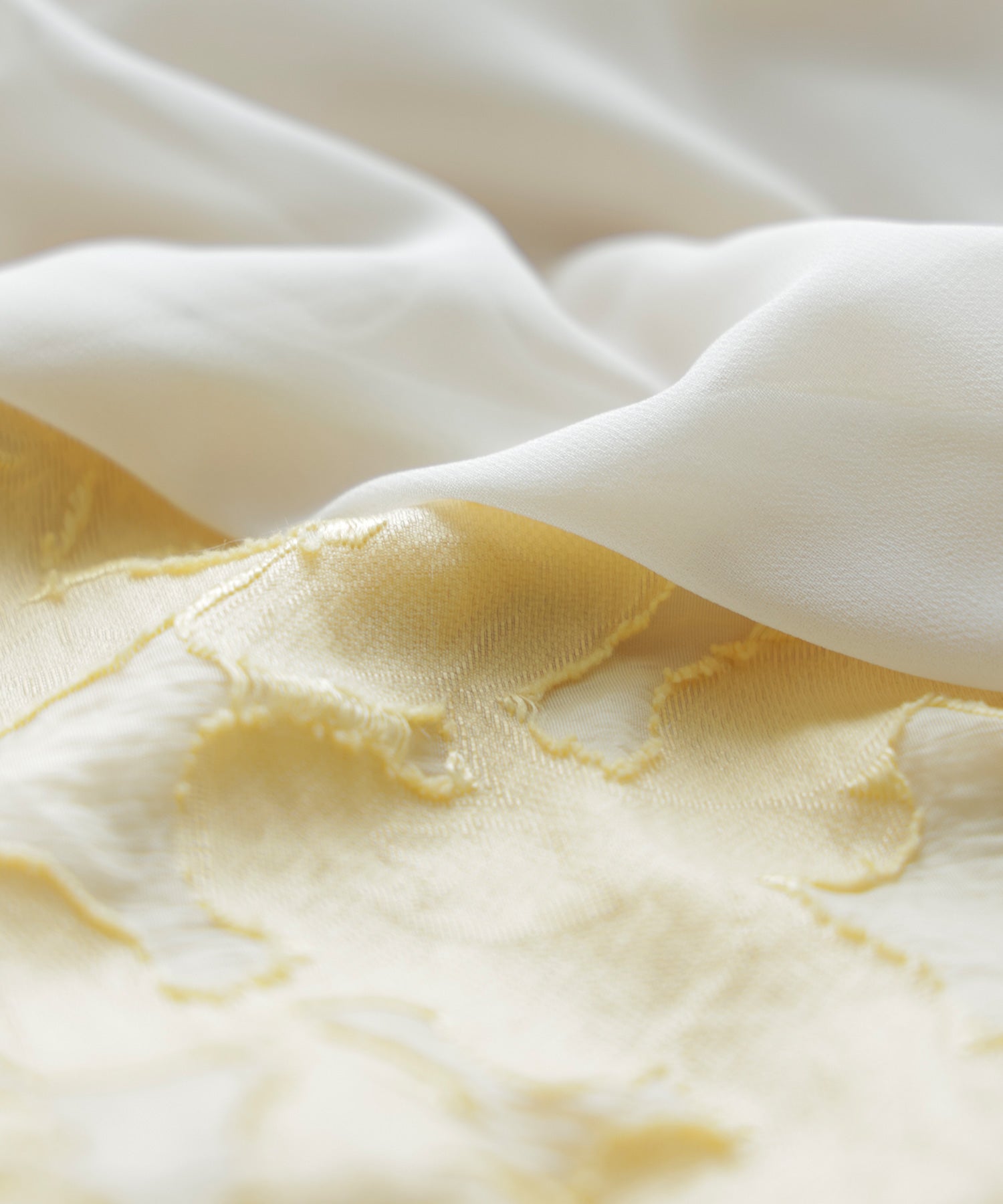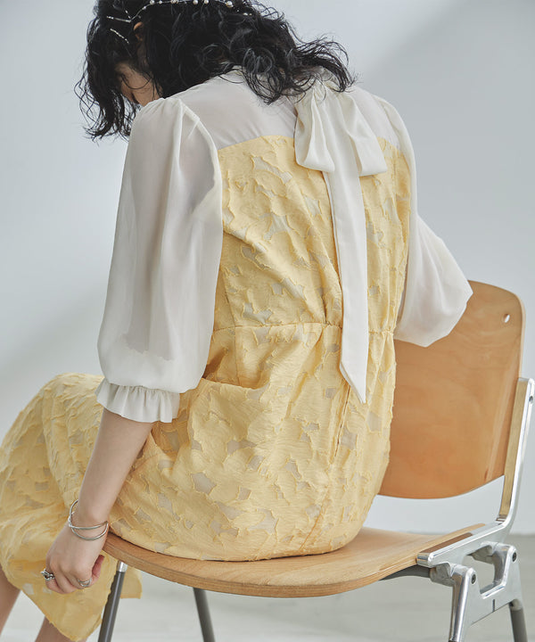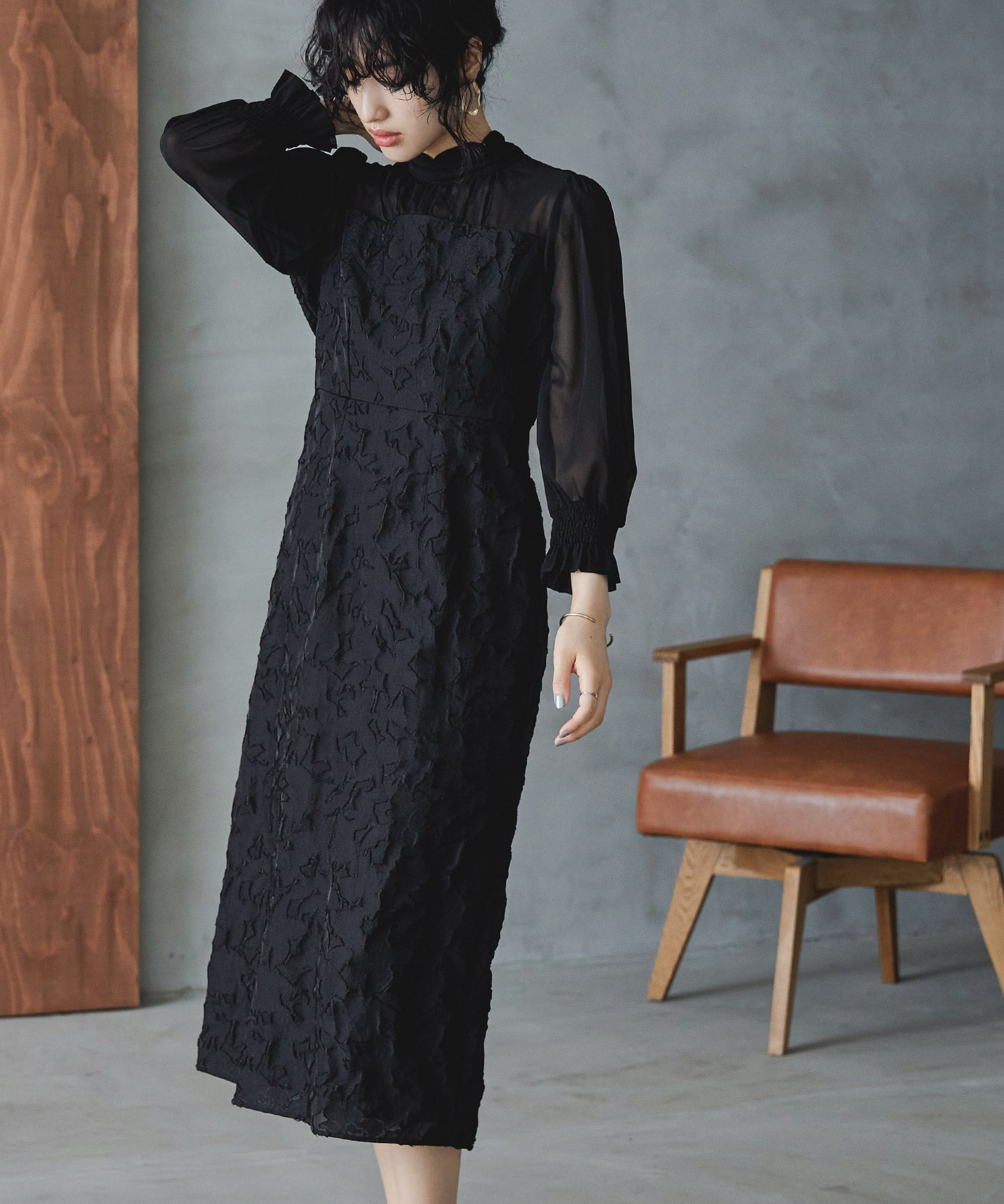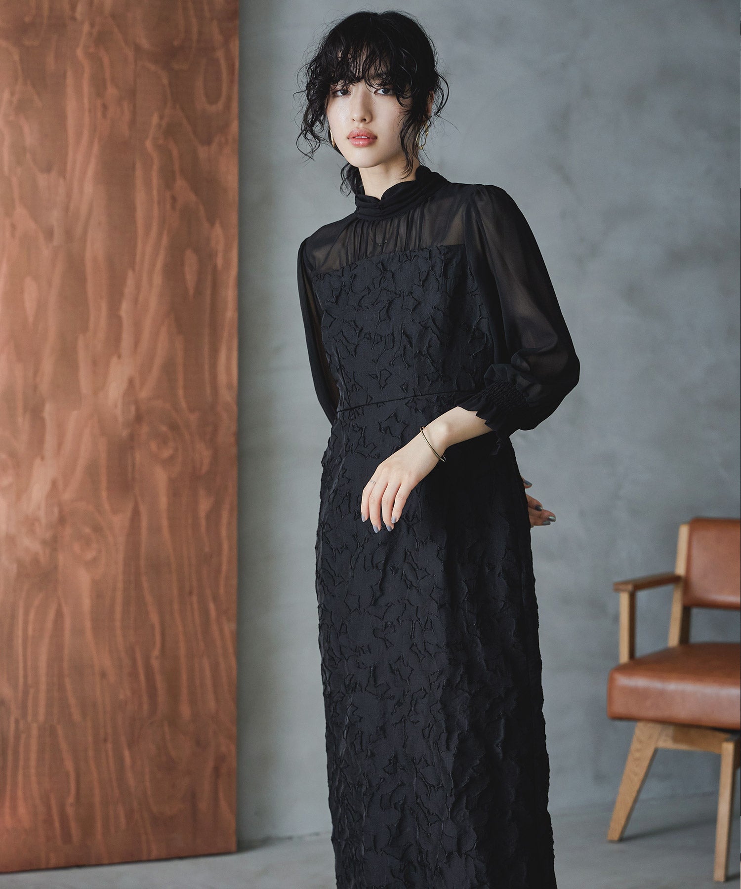 デコルテと袖部分はシアー素材を使用し抜け感をプラス。