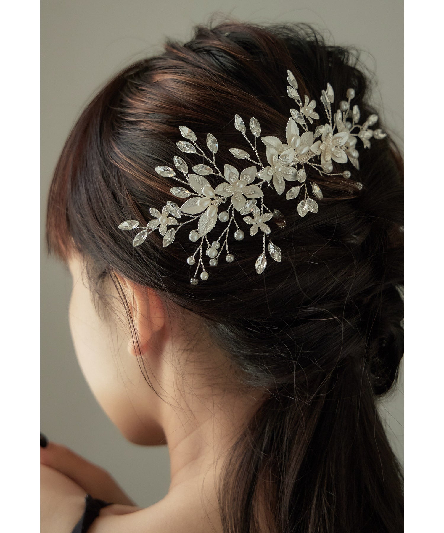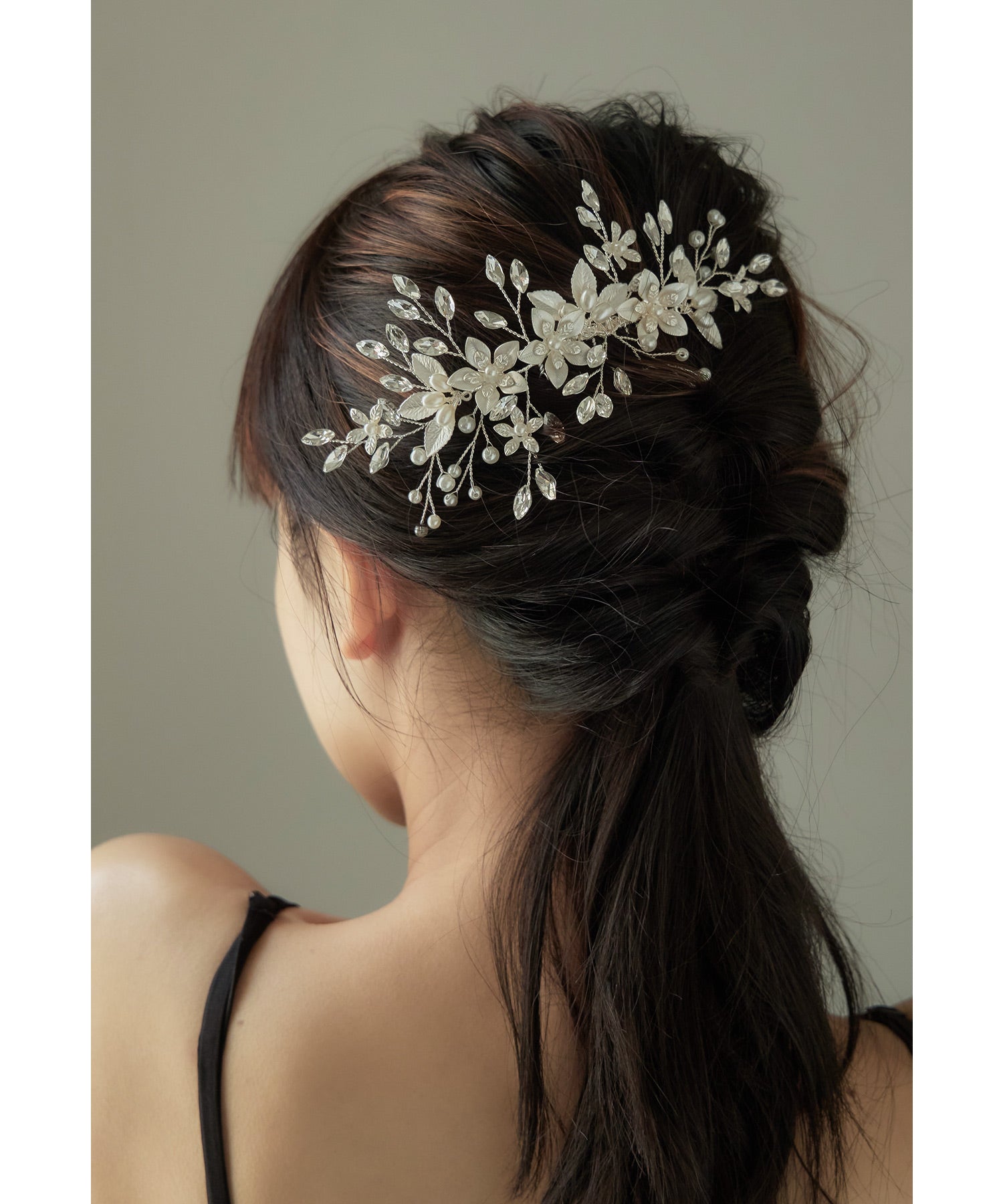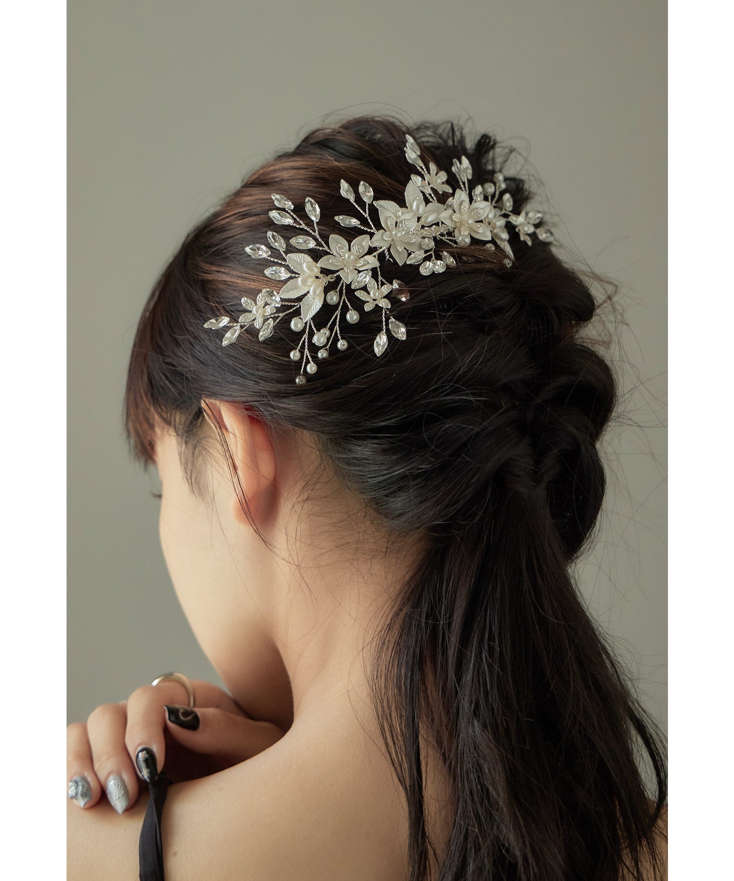 フラワーモチーフを贅沢にあしらったヘアコームアクセサリー。