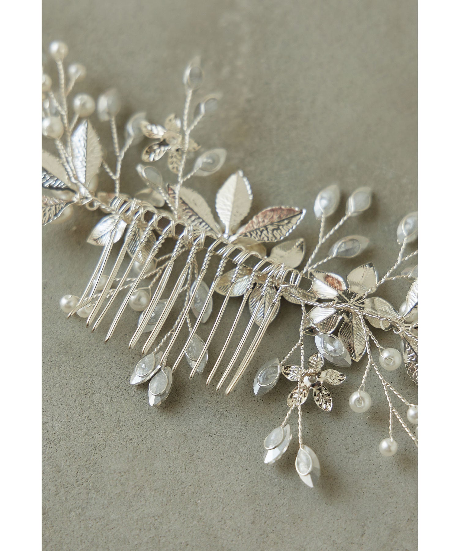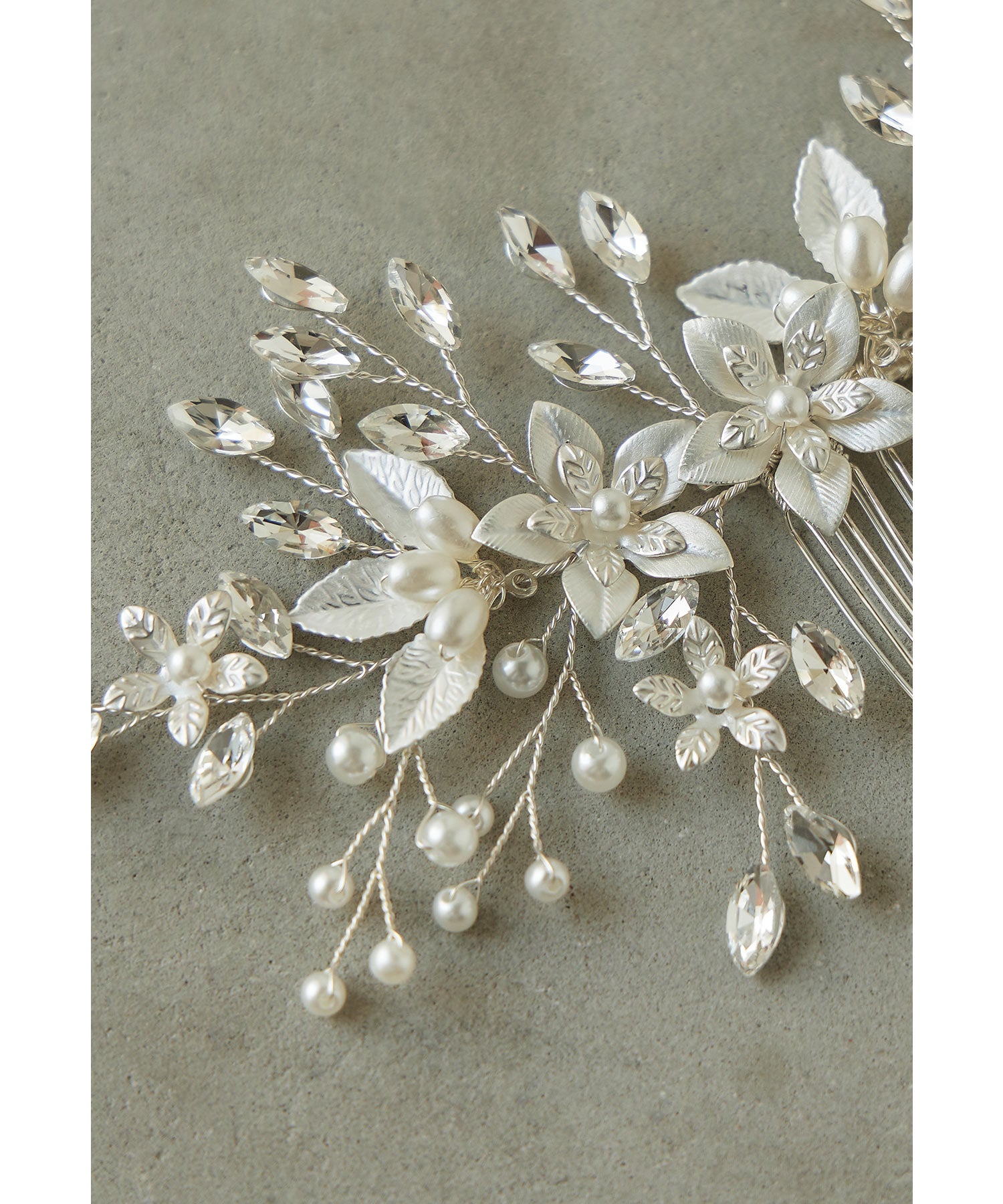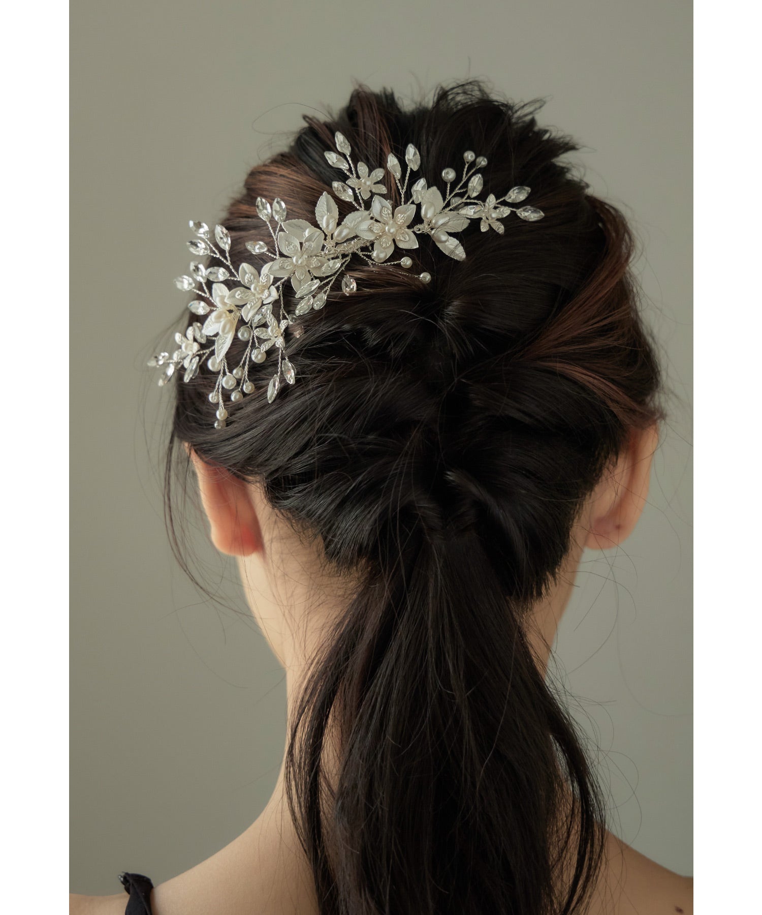 フラワーモチーフを贅沢にあしらったヘアコームアクセサリー。