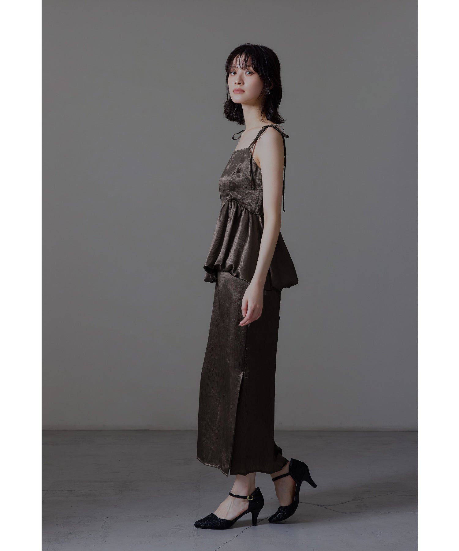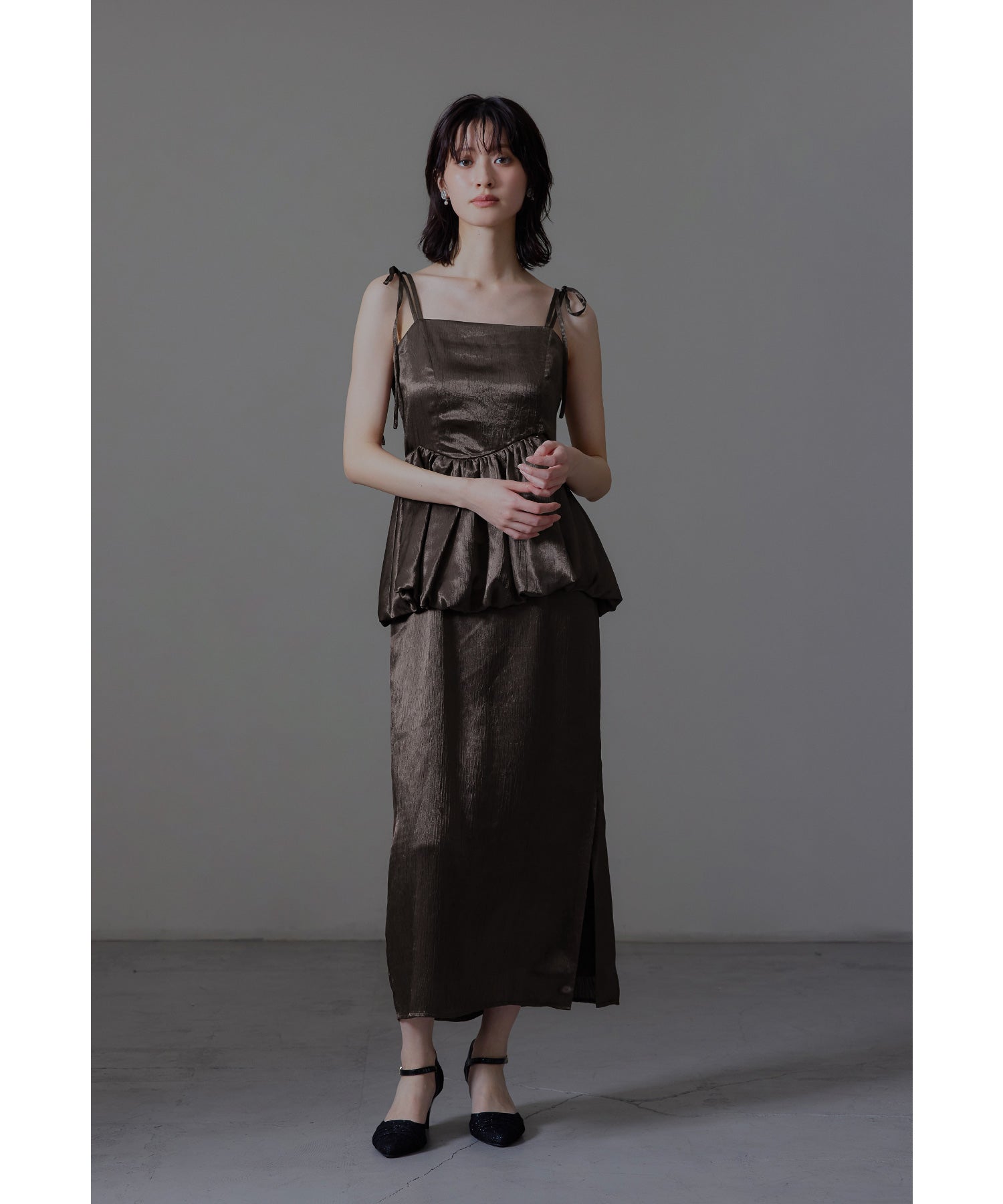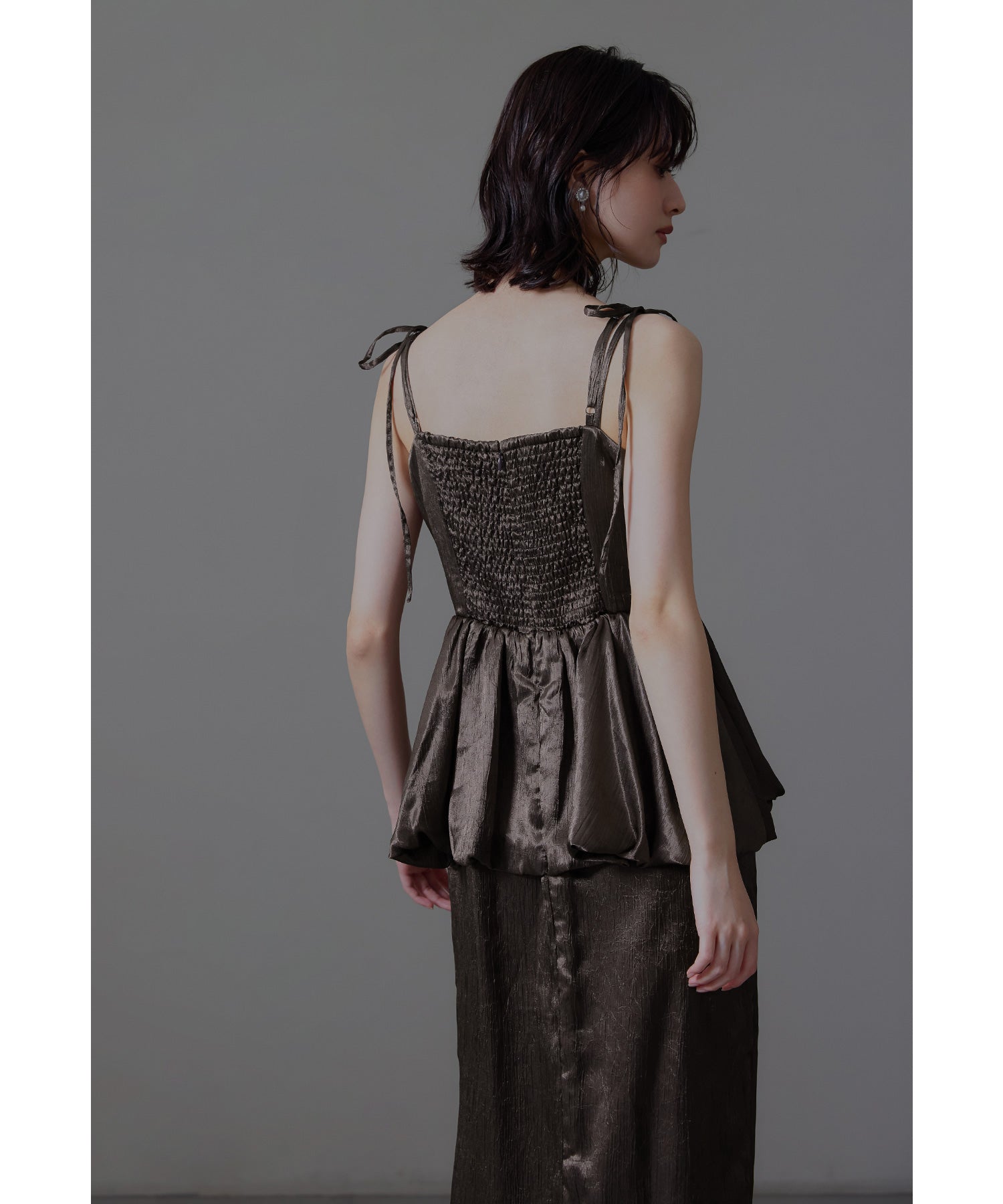 Zname ワッシャーサテンペプラムキャミドレス パーティードレス オケージョンドレス 結婚式 二次会 同窓会 成人式 お呼ばれワンピース