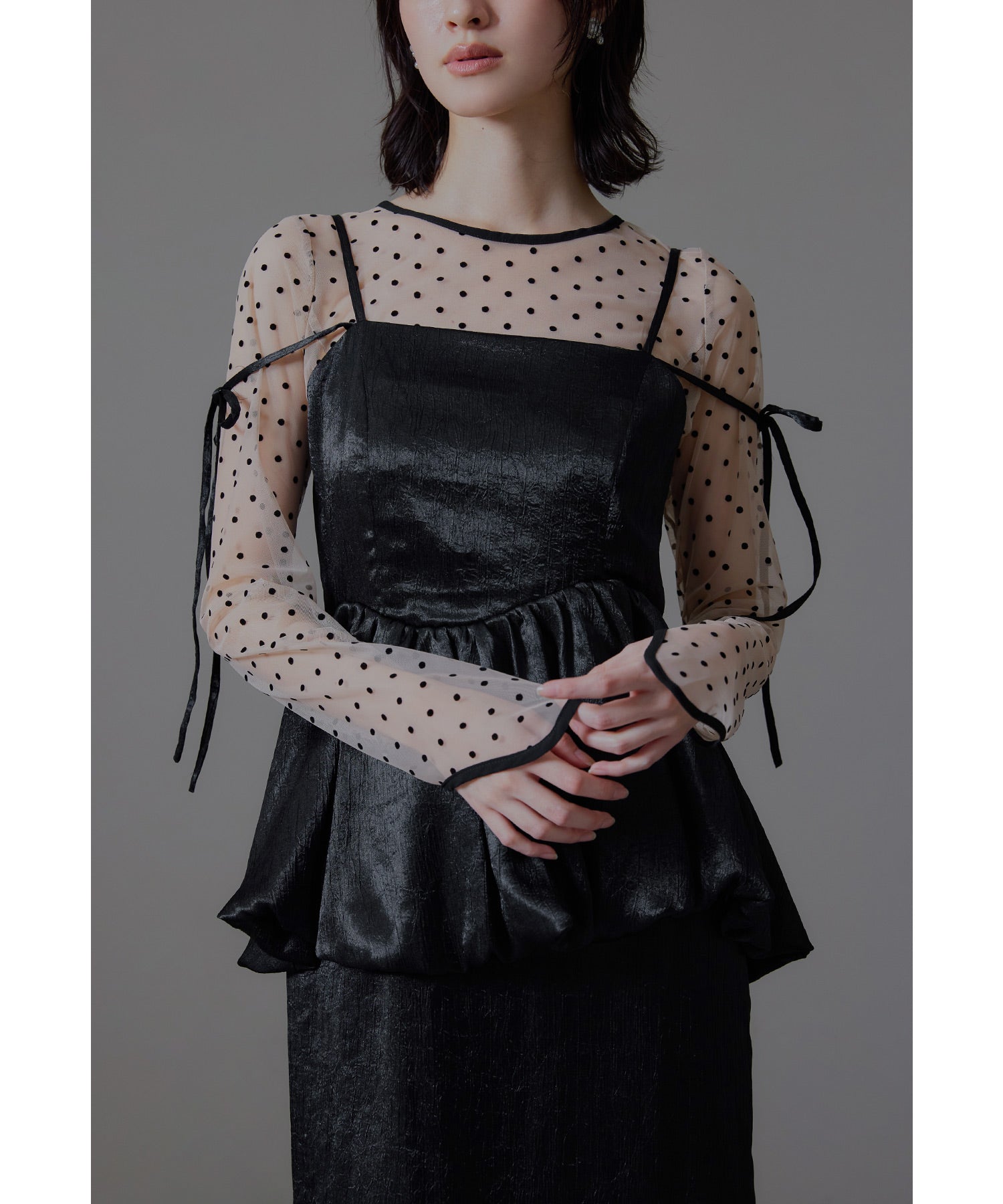 立体的なバルーンペプラムデザインにウェーブラインの切り替えで